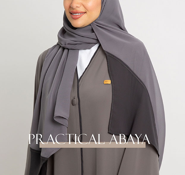 Wide-Fit Long Open Abaya in Mixed Woven Fabric