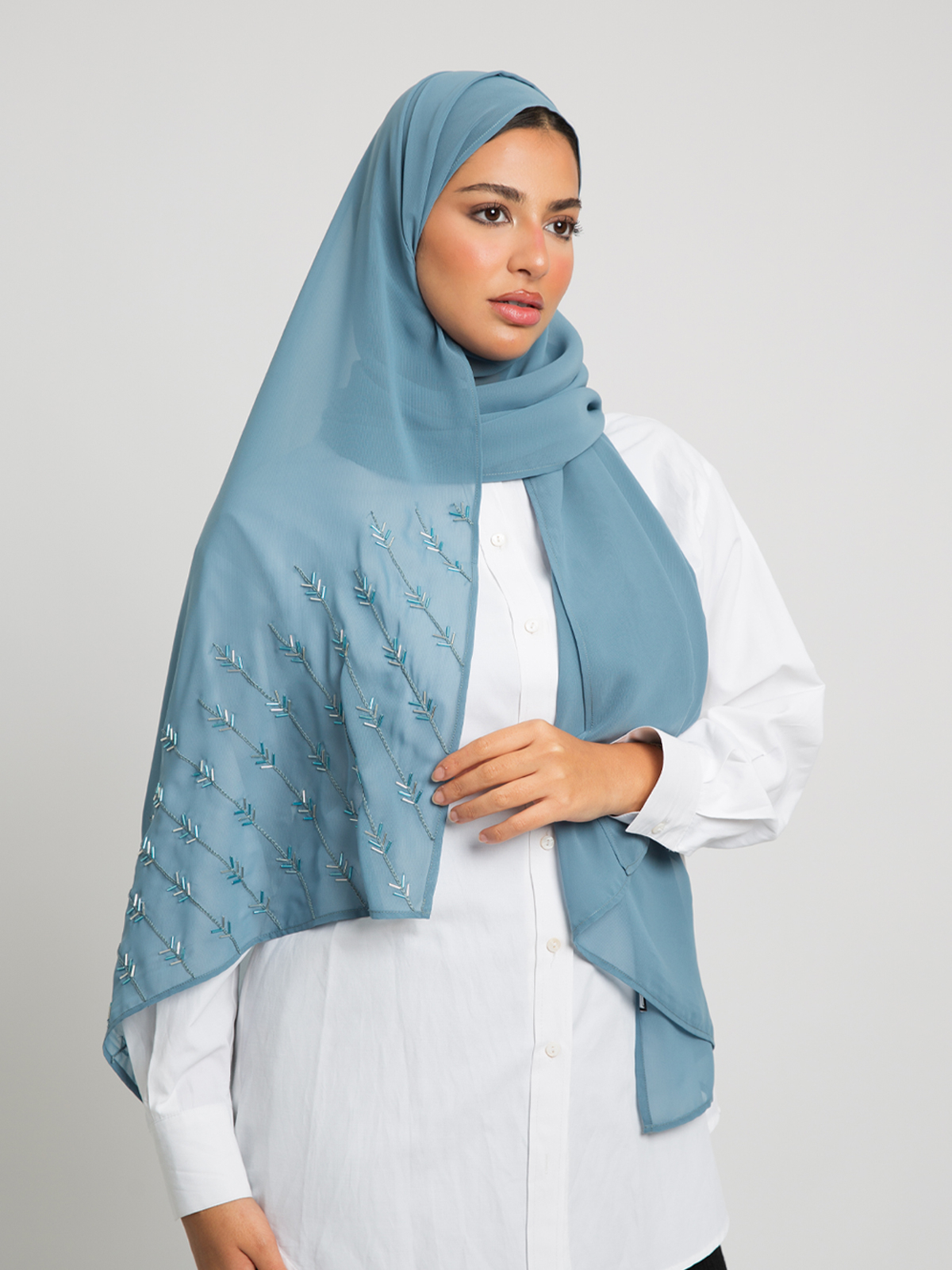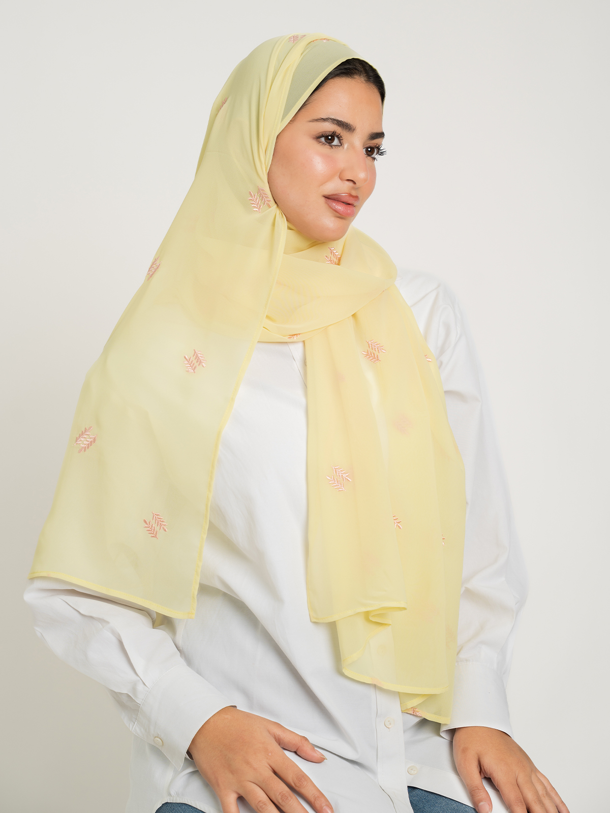 The package includes 3 laser embroidered tarha made from premium chiffon laser fabric specially selected for tarha, offering a soft, flowy feel and effortless styling.