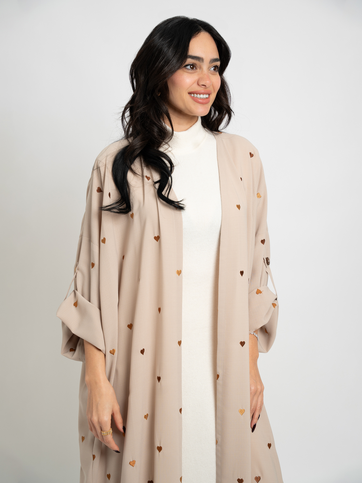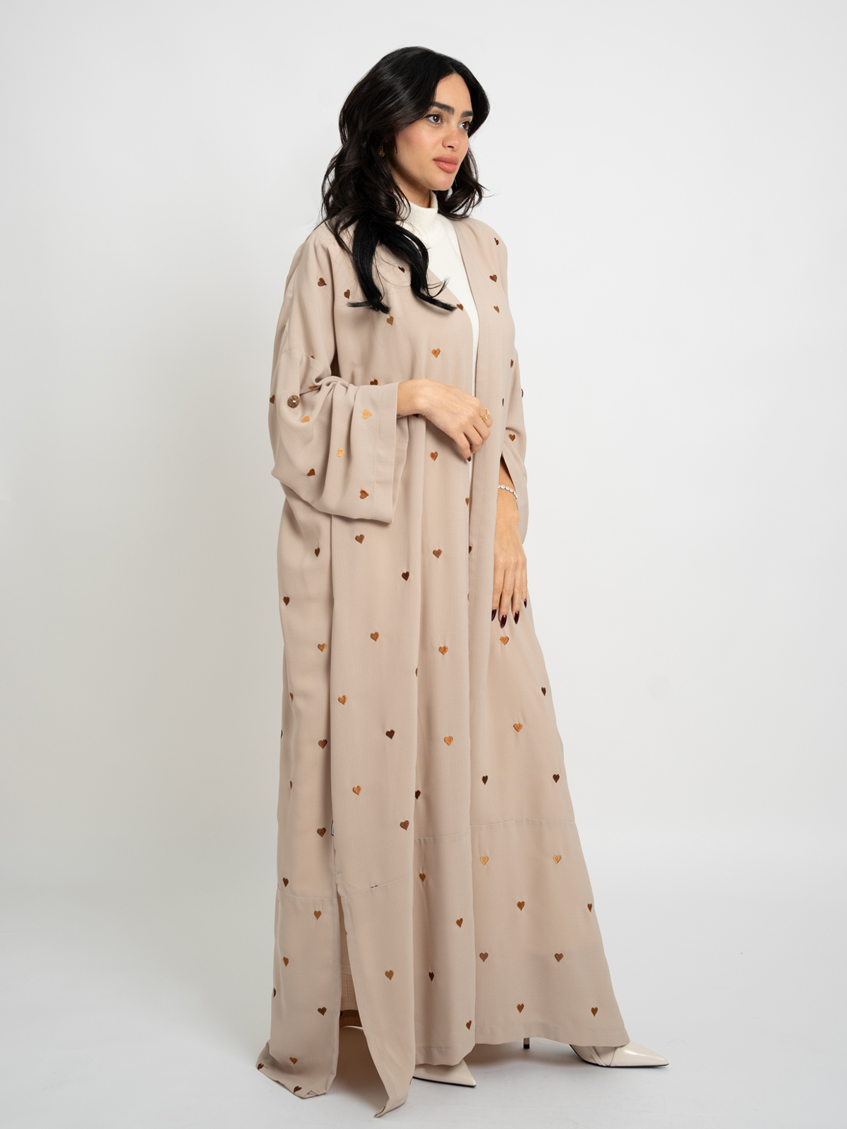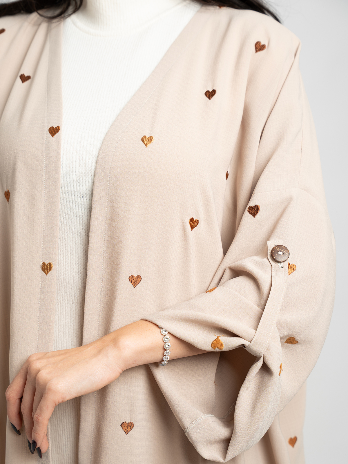 Ankle Length Wide-fit Open Abaya in Embroidered Linen-feel Fabric