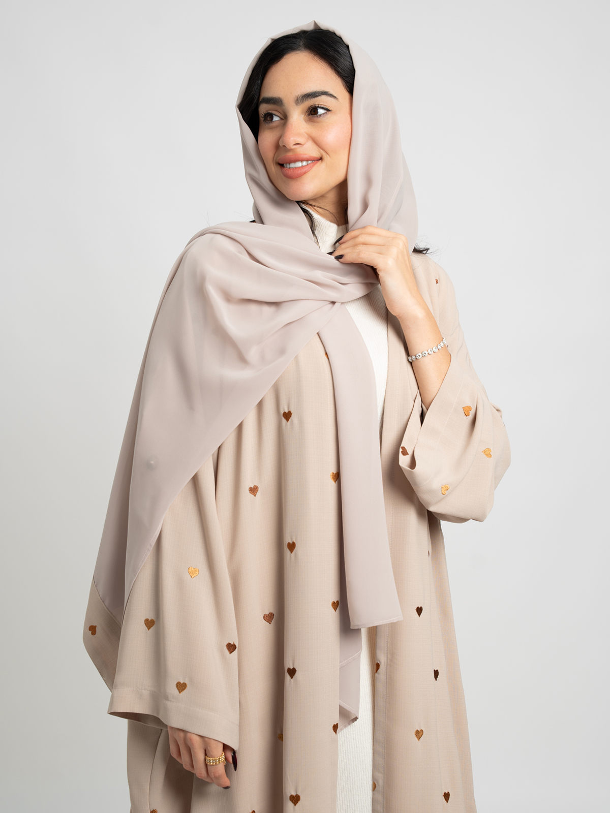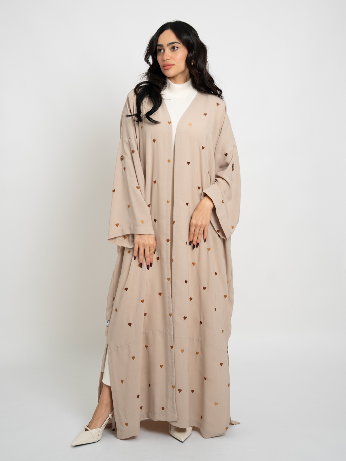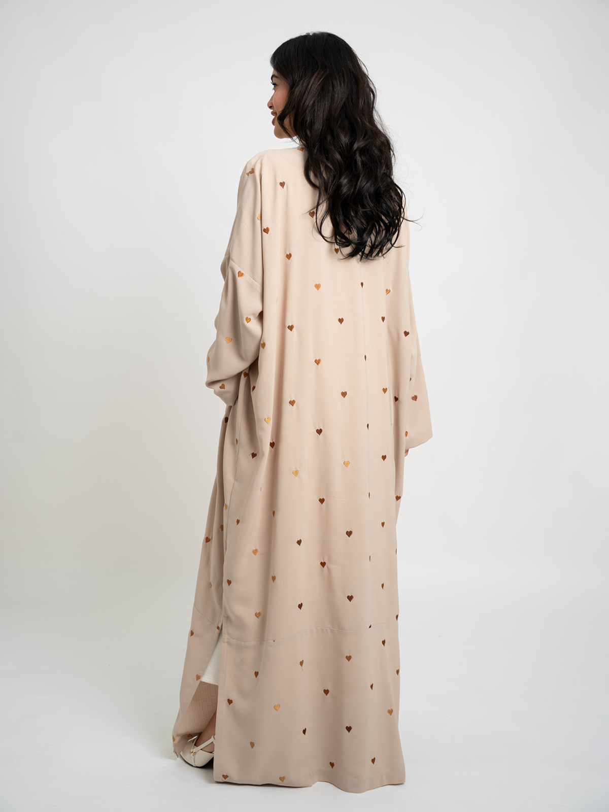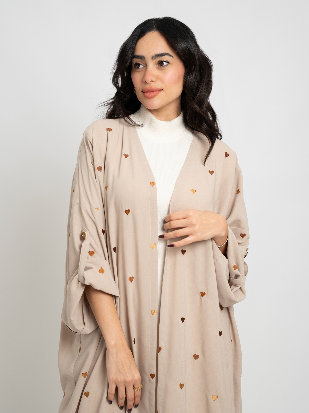 Ankle Length Wide-fit Open Abaya in Embroidered Linen-feel Fabric