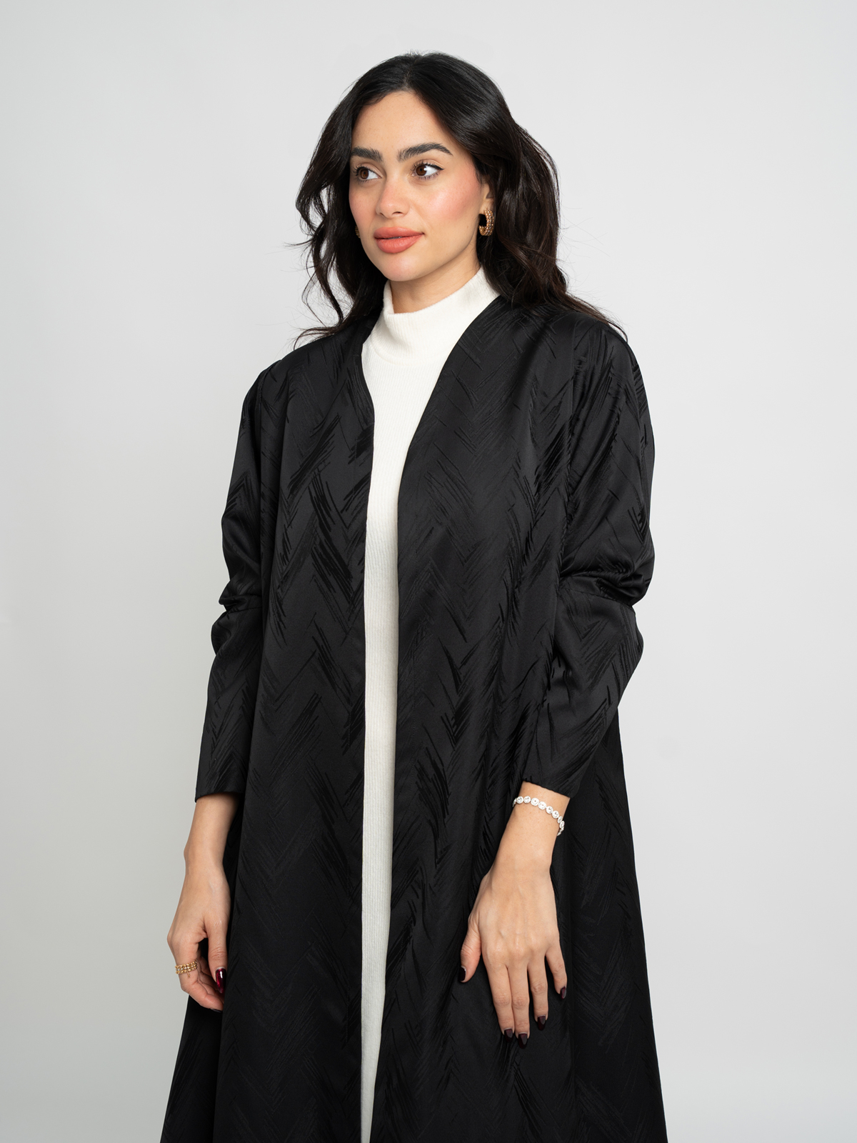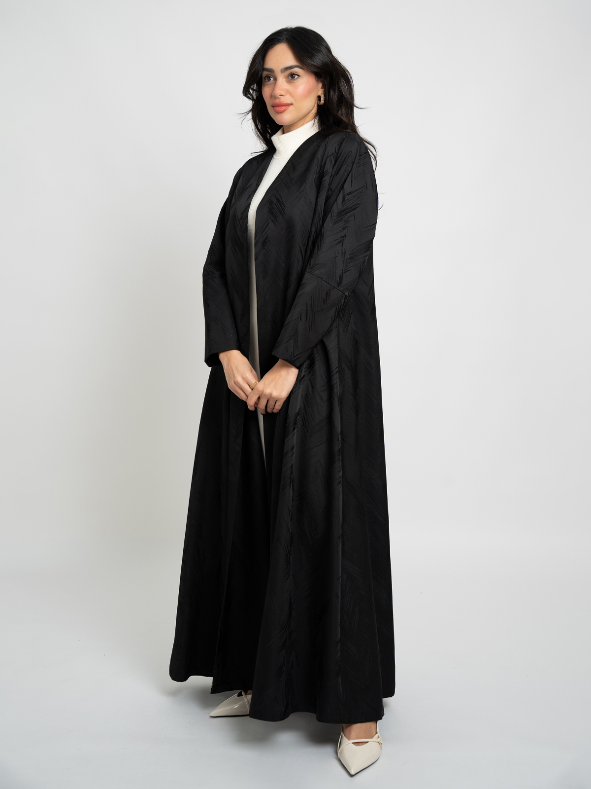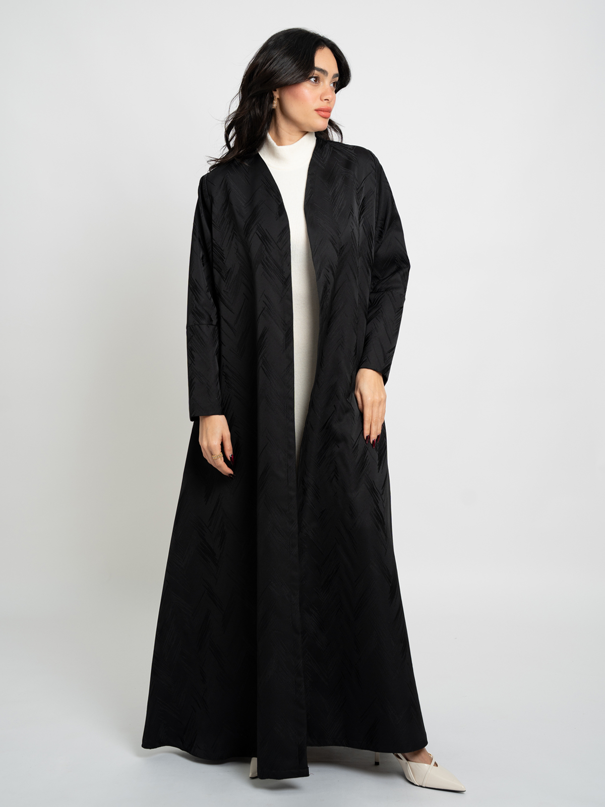 Half Cloche A-Cut Long Open Abaya in Jacquard Fabric