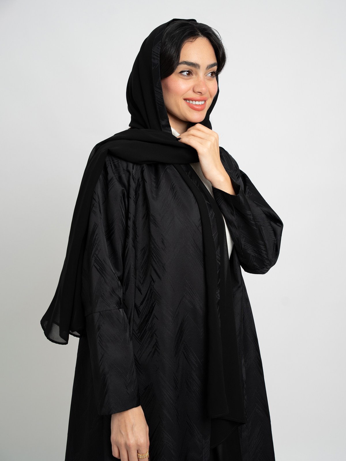Black A-Cut Jacquard Abaya