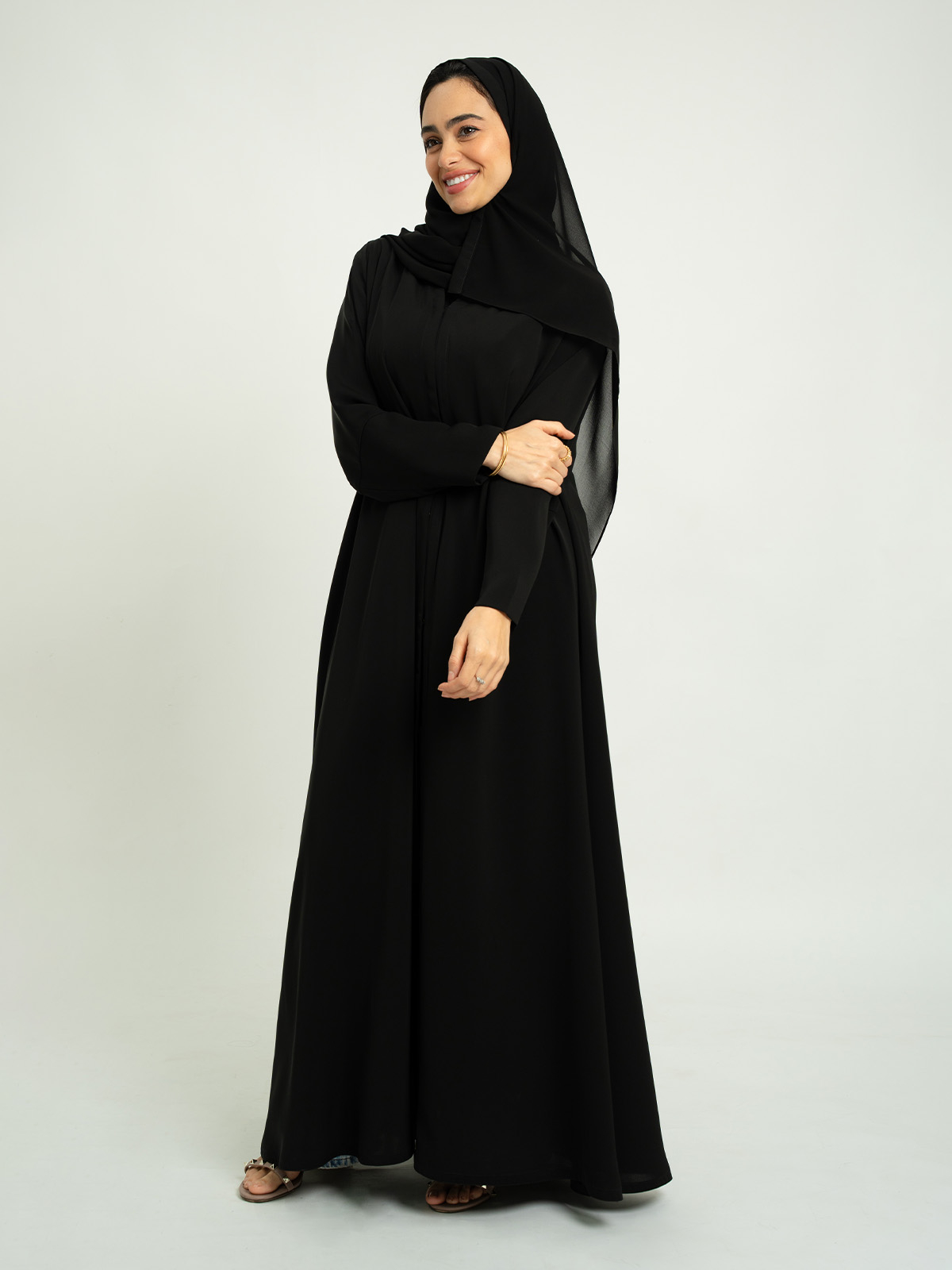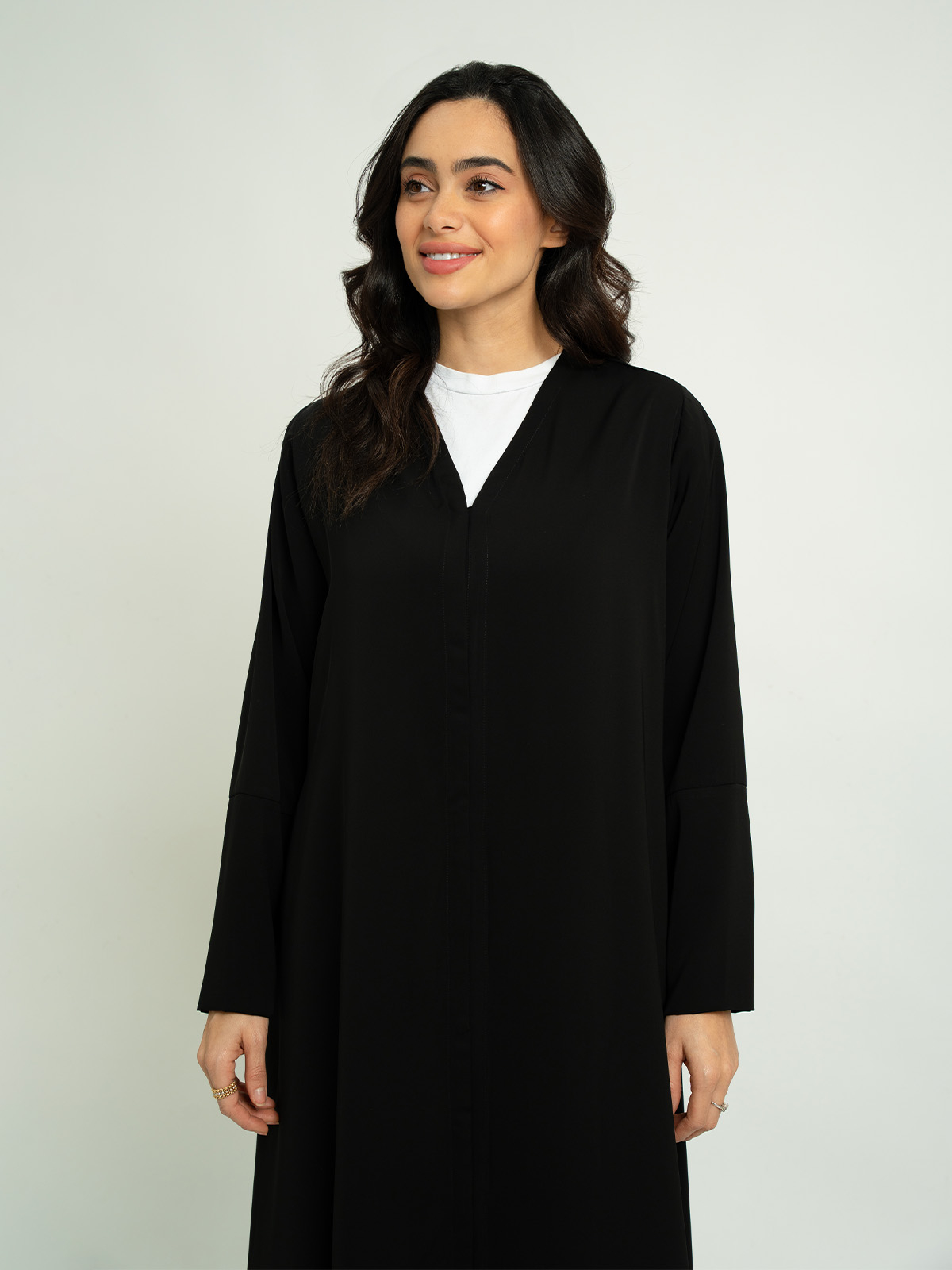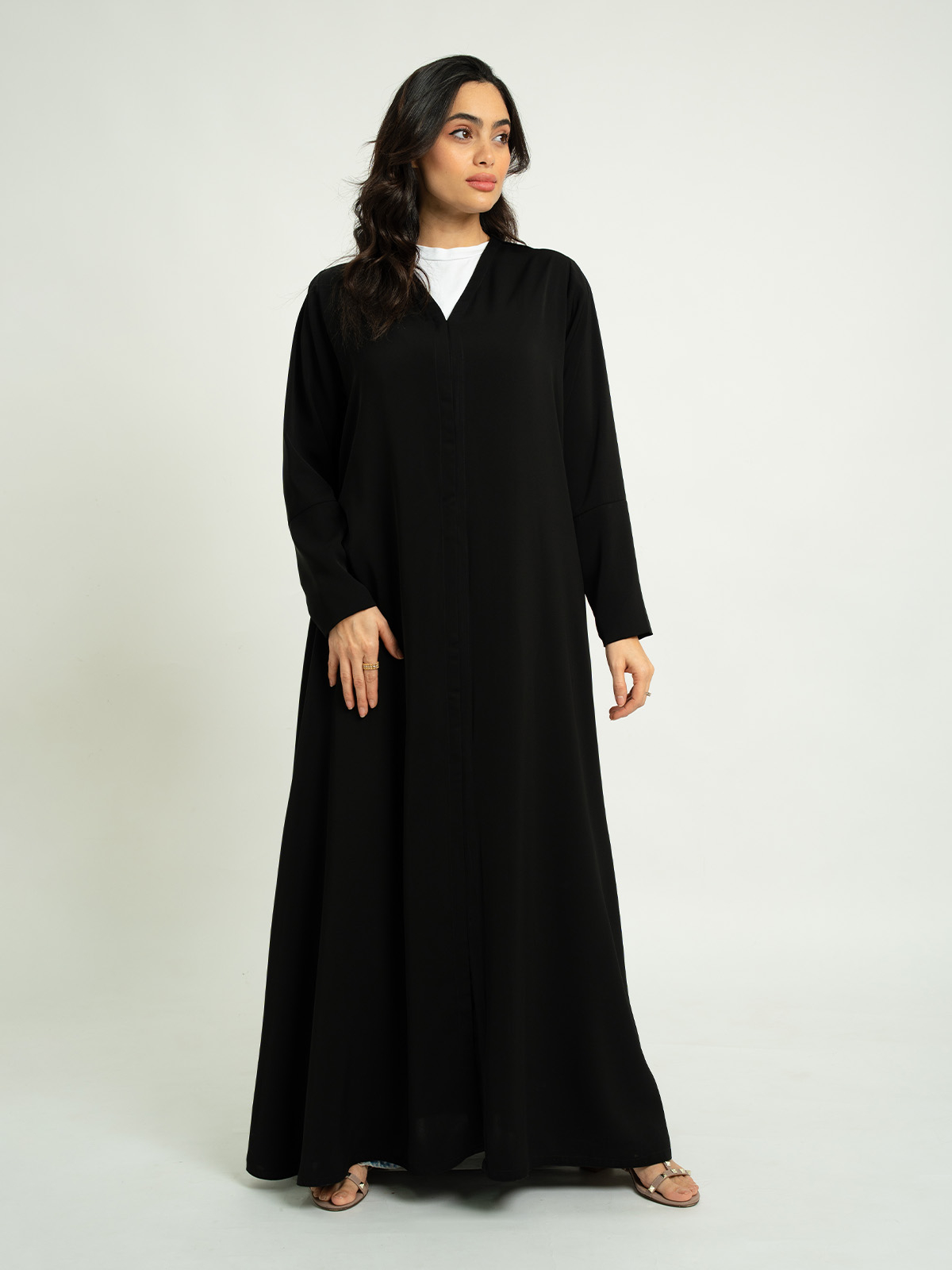 Half Cloche A-Cut Long Closed Abaya with Tight Sleeves in Soft Crepe Fabric