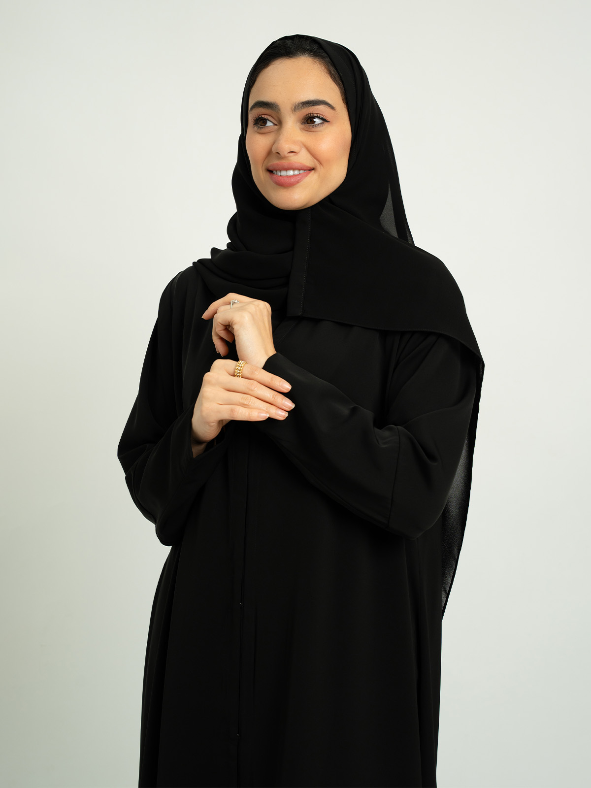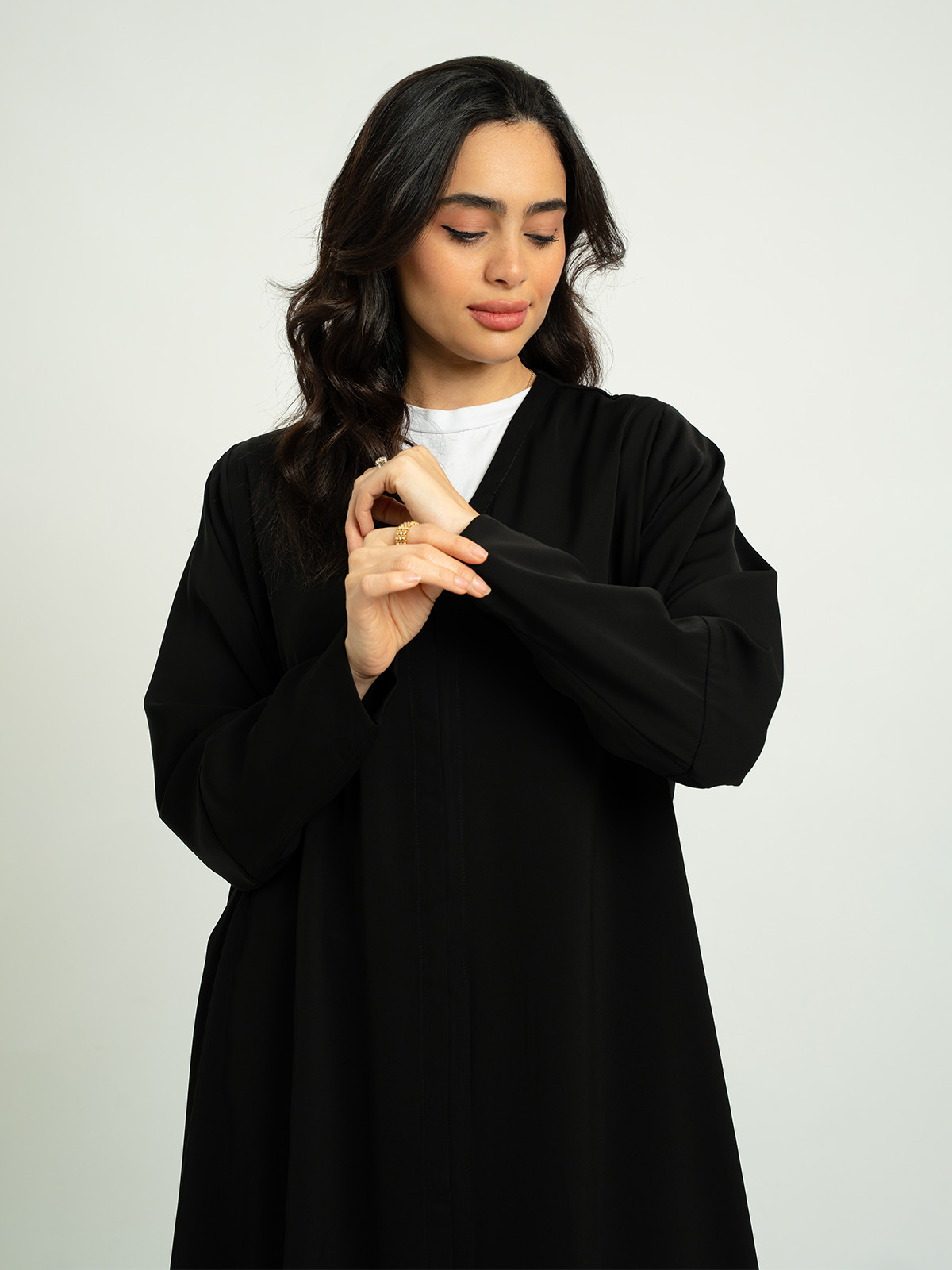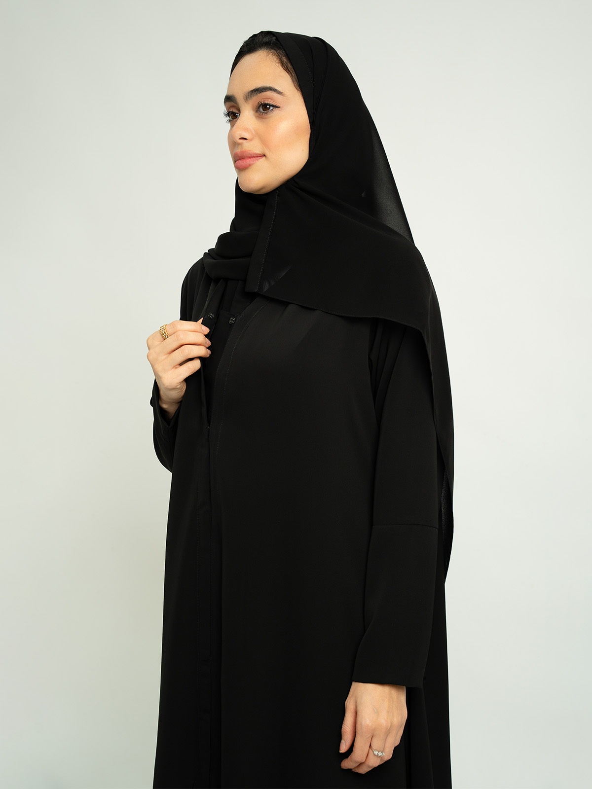 Half Cloche A-Cut Long Closed Abaya with Tight Sleeves in Soft Crepe Fabric