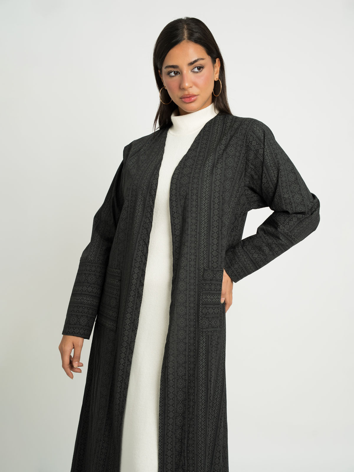 This abaya features several details: