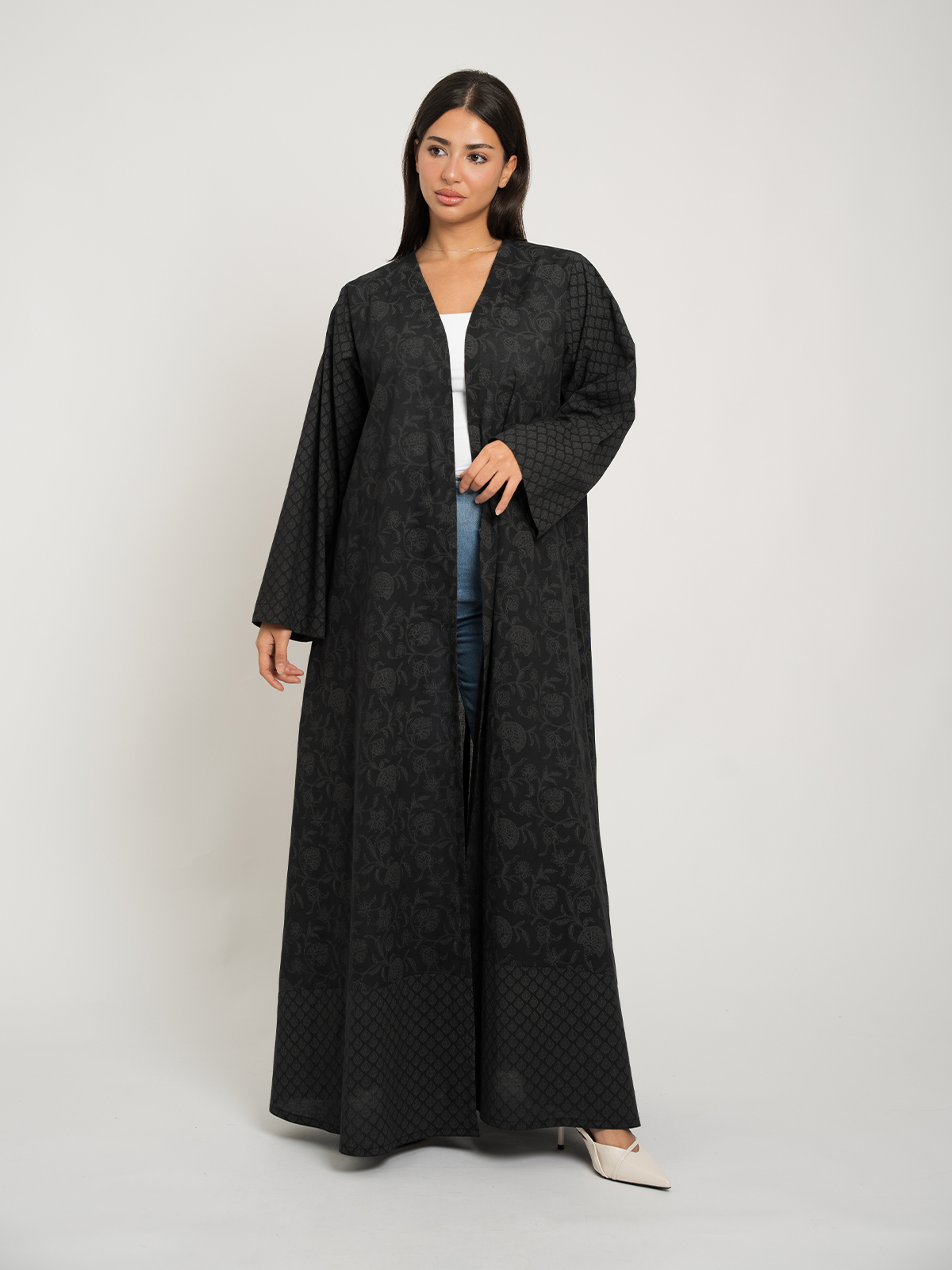 Cotton Abaya Collection by KaafmeemA breezy, relaxed-fit A-cut half cloche abaya made of 100% natural cotton, designed with comfort and attention to detail in mind.