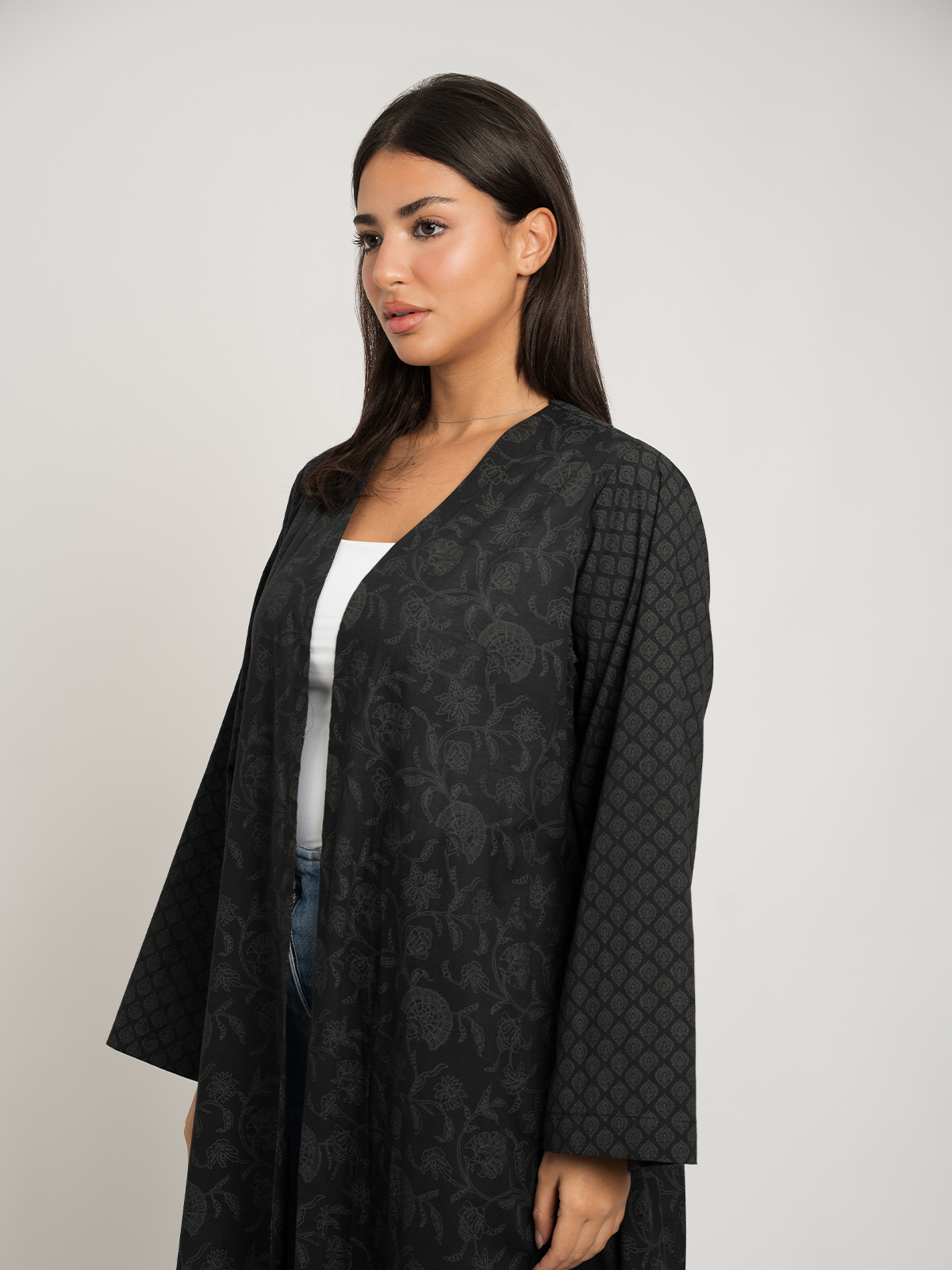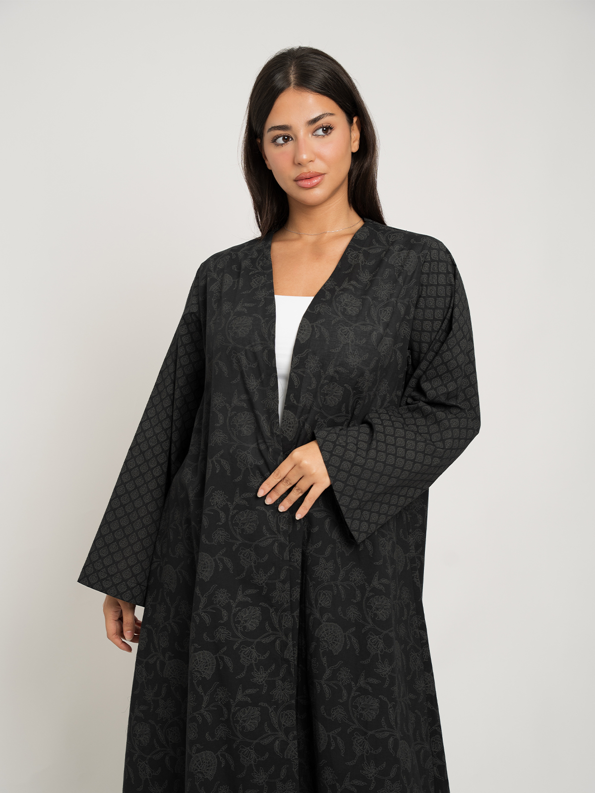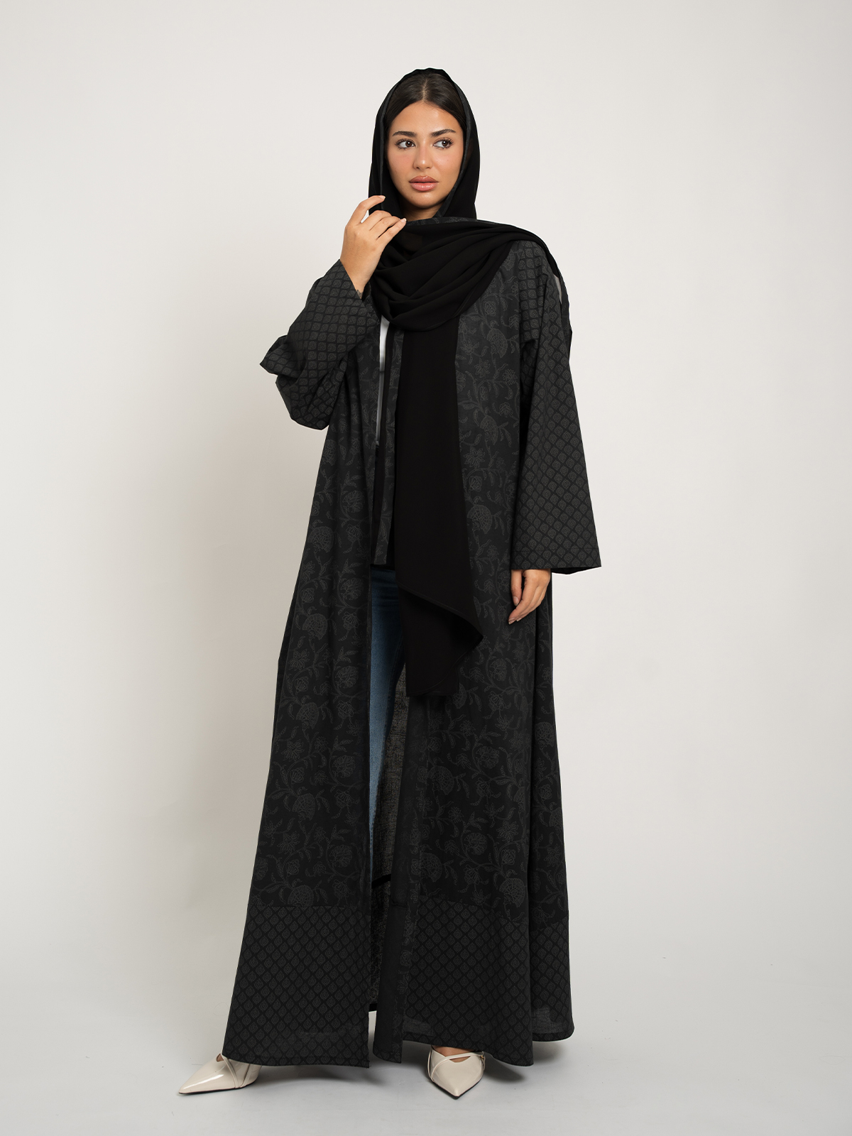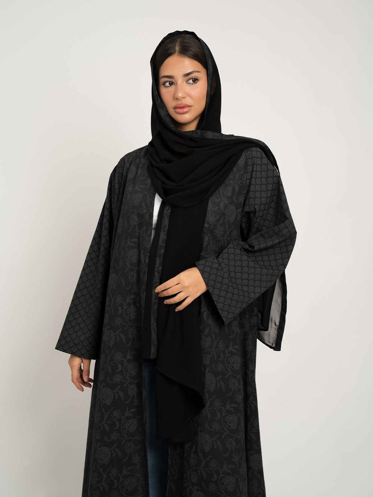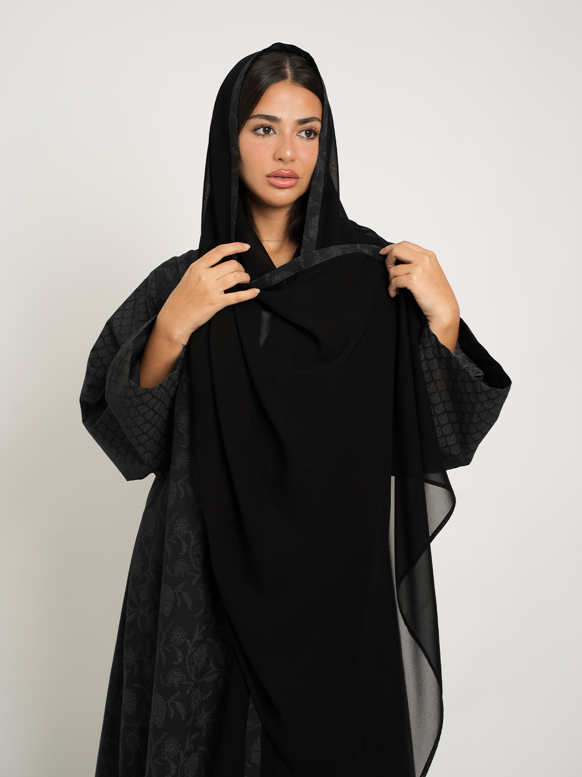 Abaya comes with its matching full printed cotton tarha (Headscarf).
