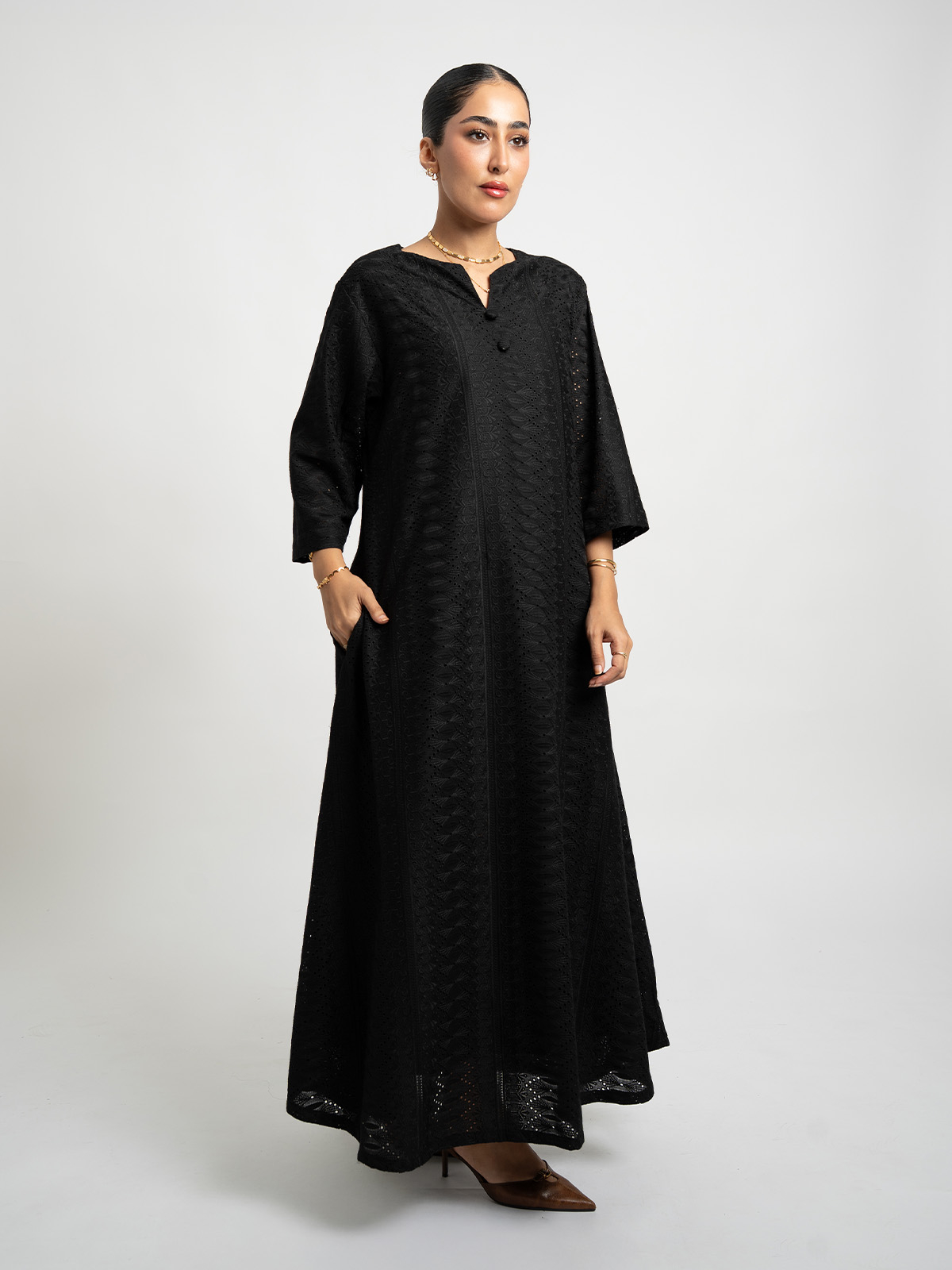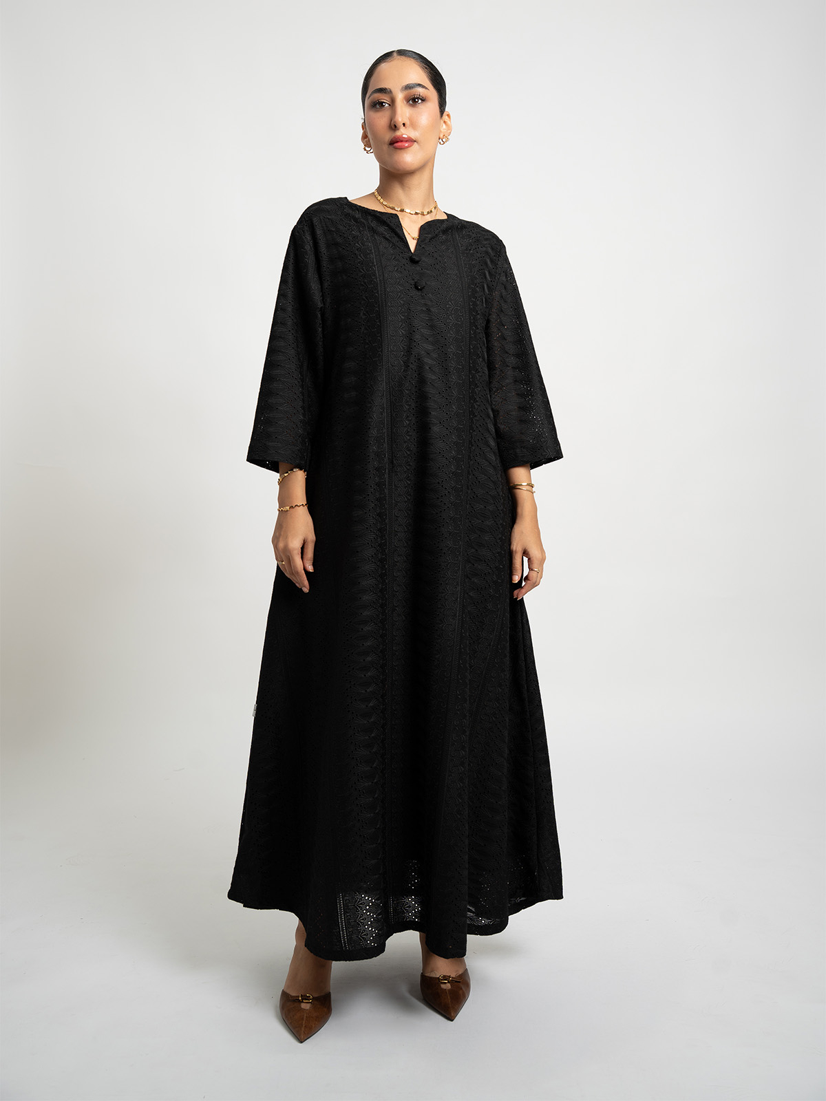 Kindly note: This jalabiya comes 2 inches shorter than the standard length. If you prefer a full-length fit, we recommend choosing