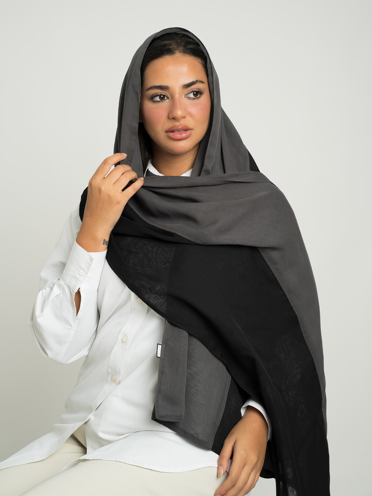 Discover the perfect blend of stability and sophistication with this Japanese voile hijab. Its breathable fabric keeps you comfortable all day, while the half and half touch adds a soft feminine charm to your look!