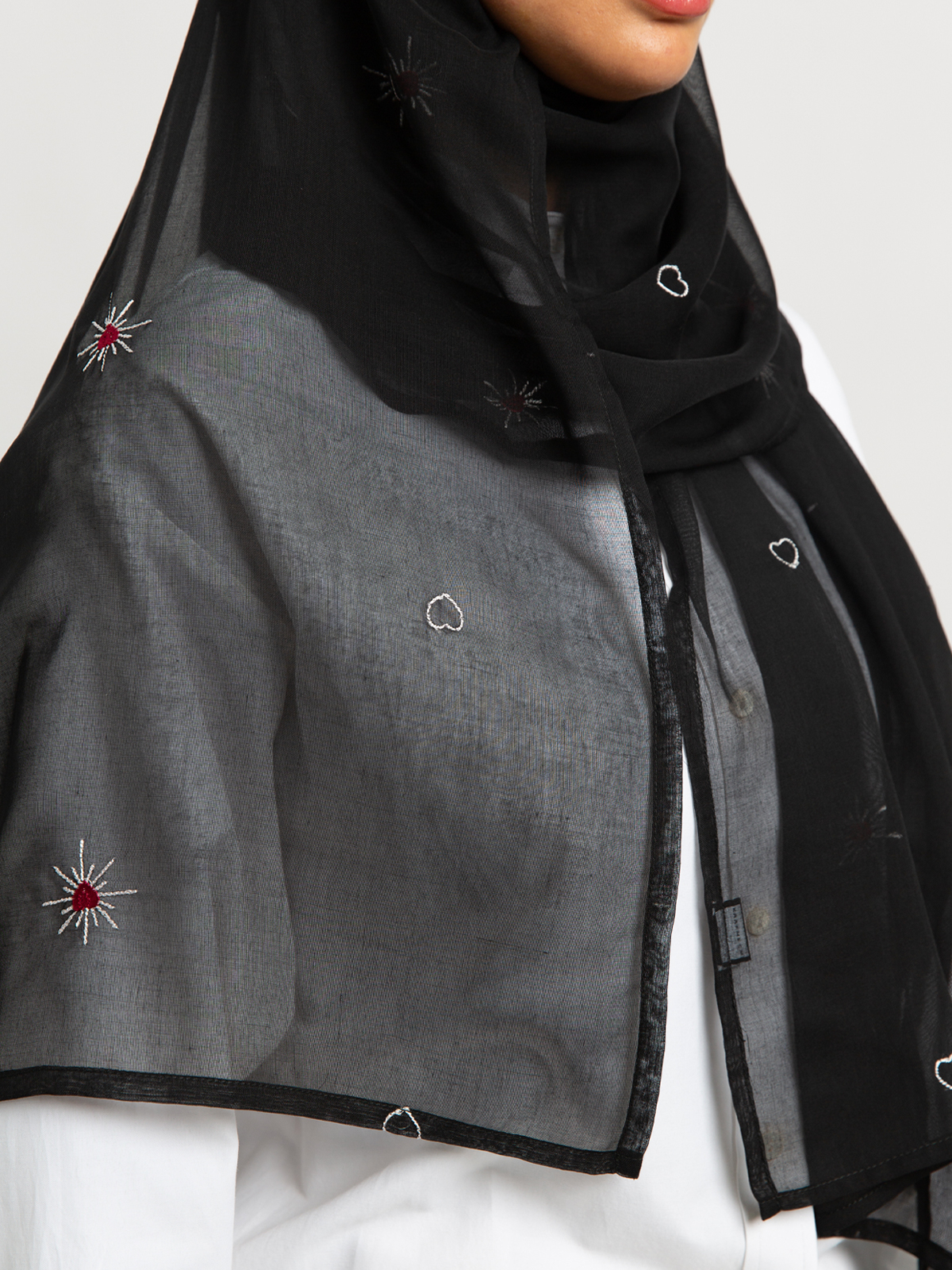 Voile Hijab with Shining Hearts Embroidery by Kaafmeem – Where Comfort Meets Elegance!
