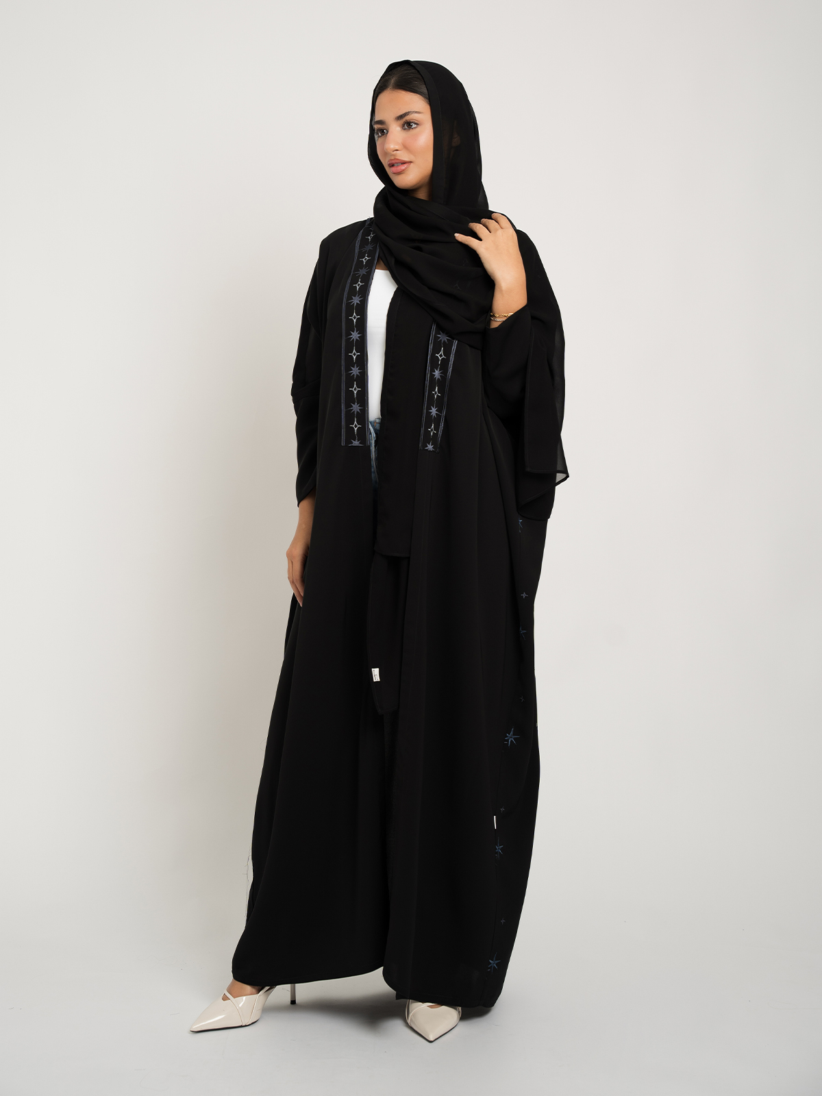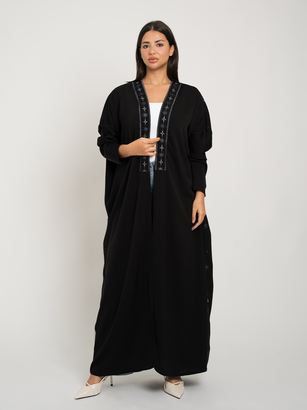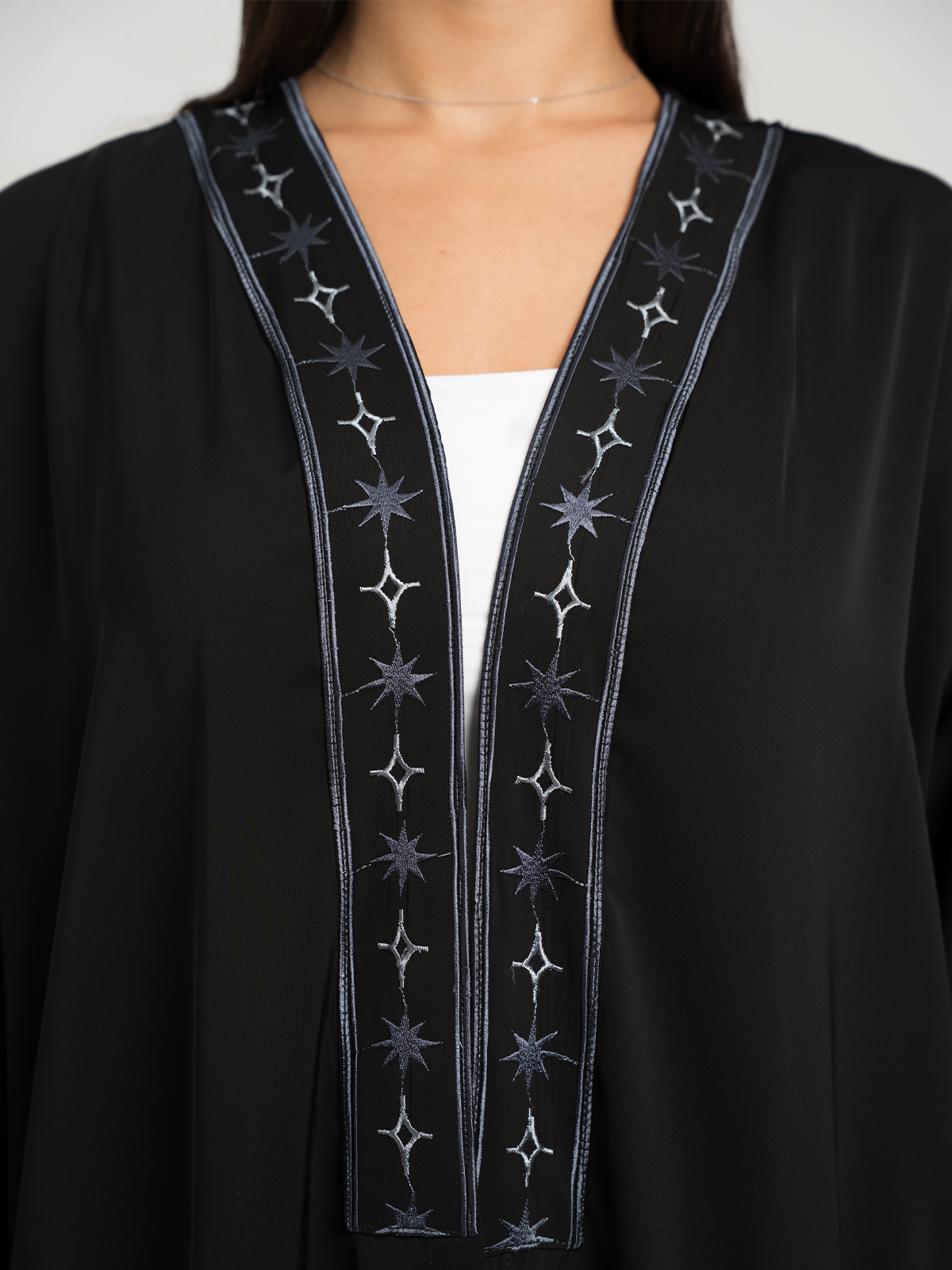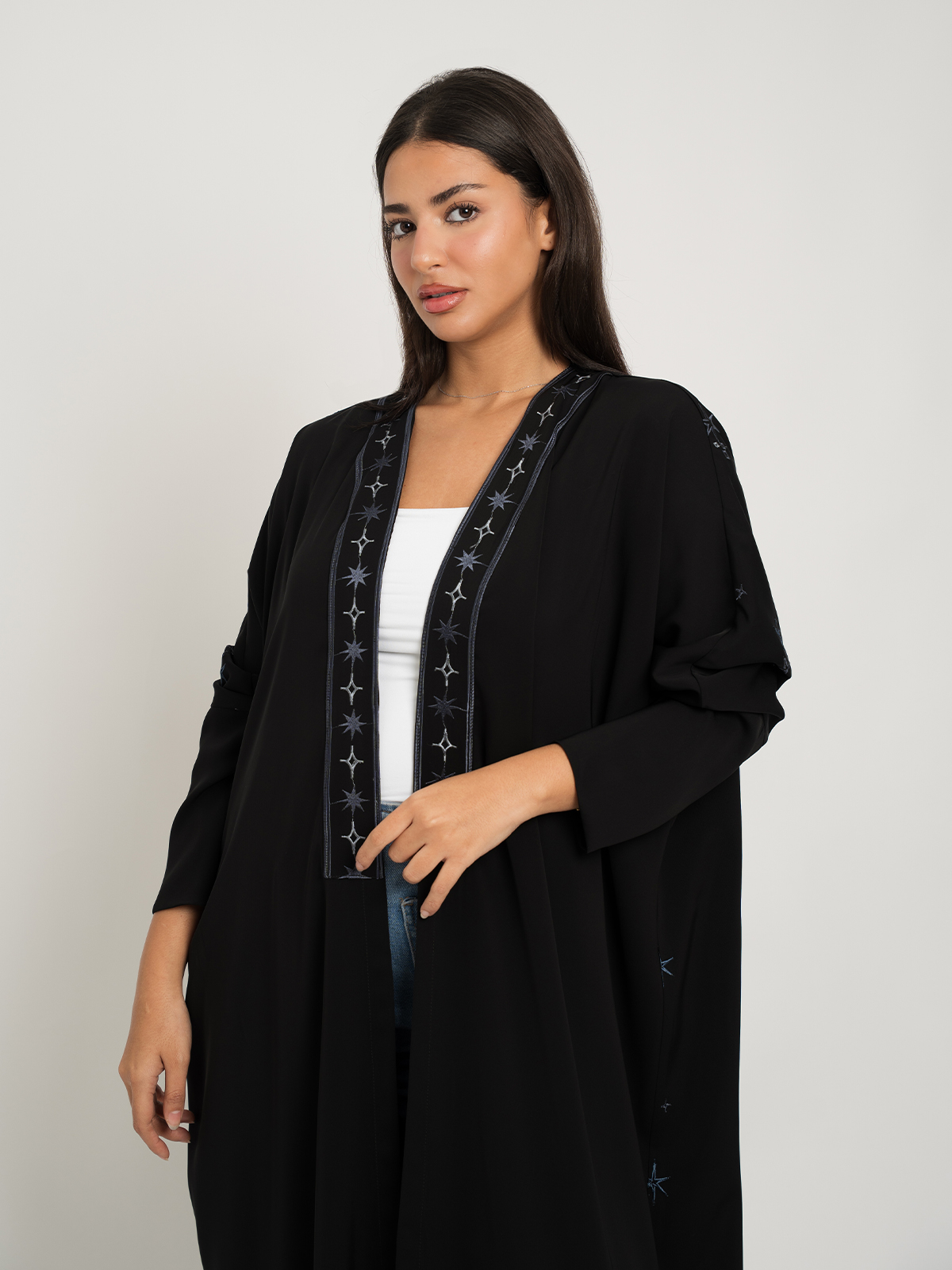 Half Bisht Long Open Abaya in Embroidered Crepe Fabric