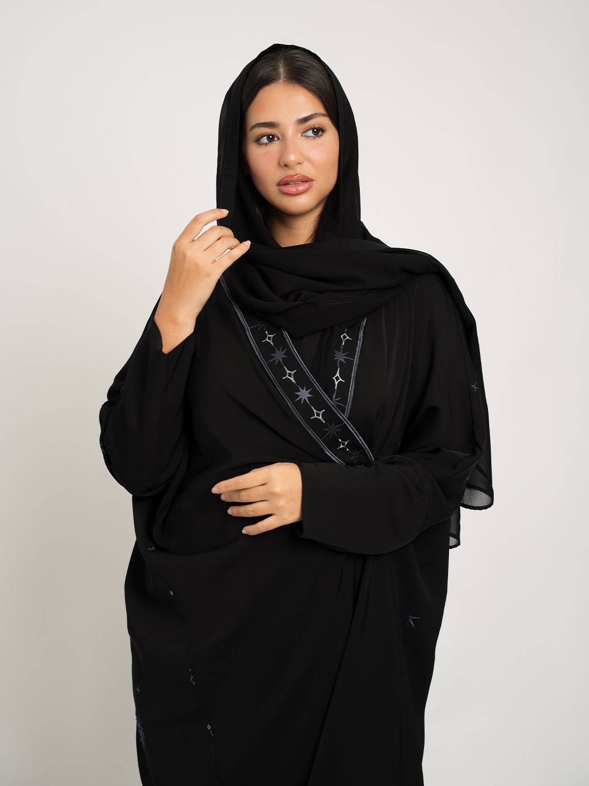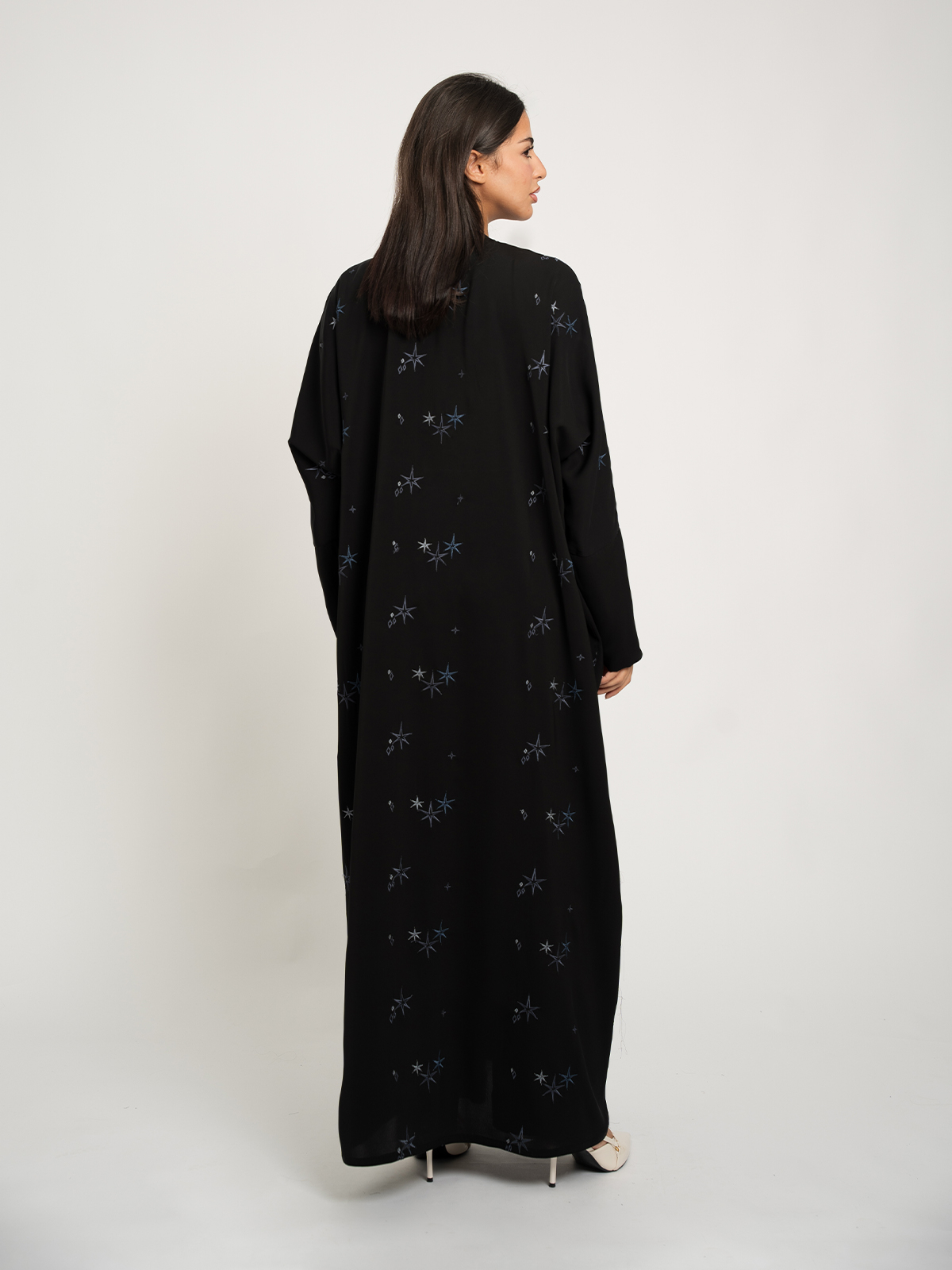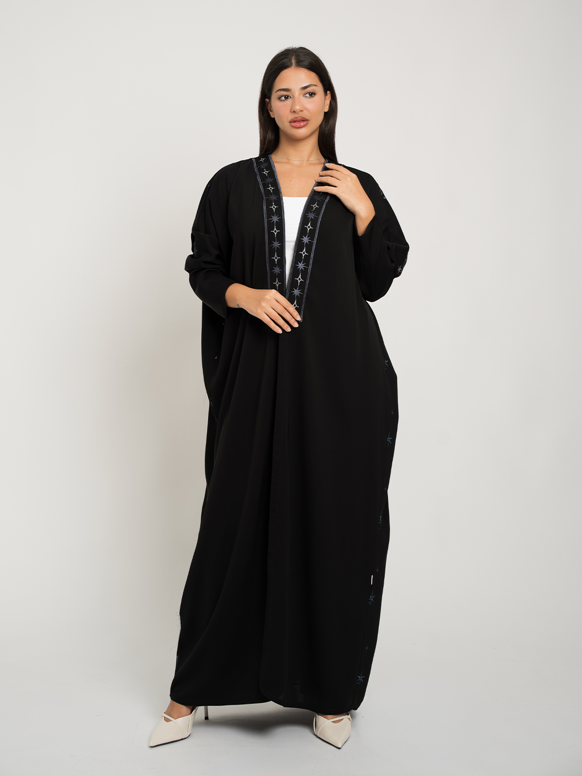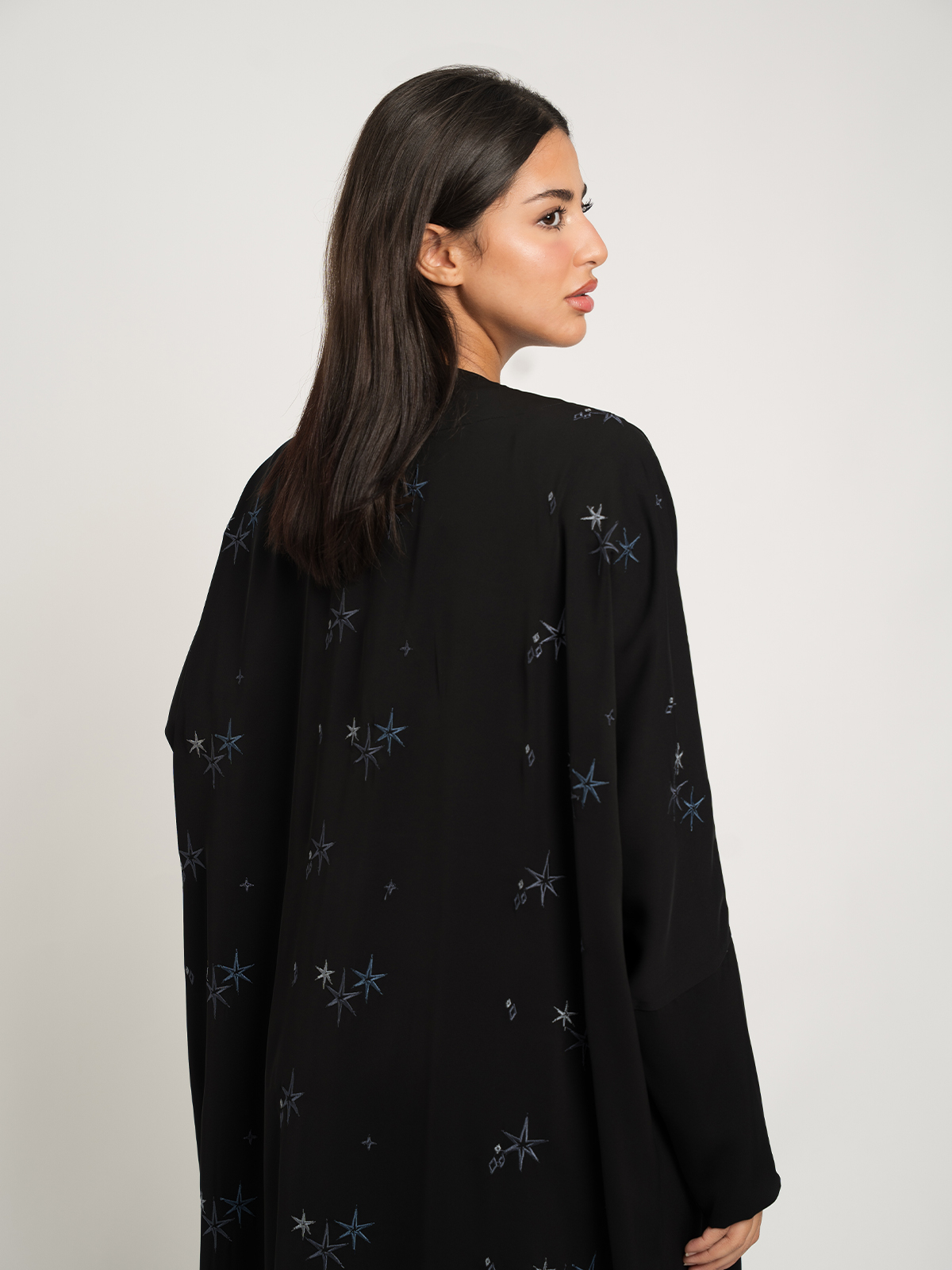 Half Bisht Long Open Abaya in Embroidered Crepe Fabric