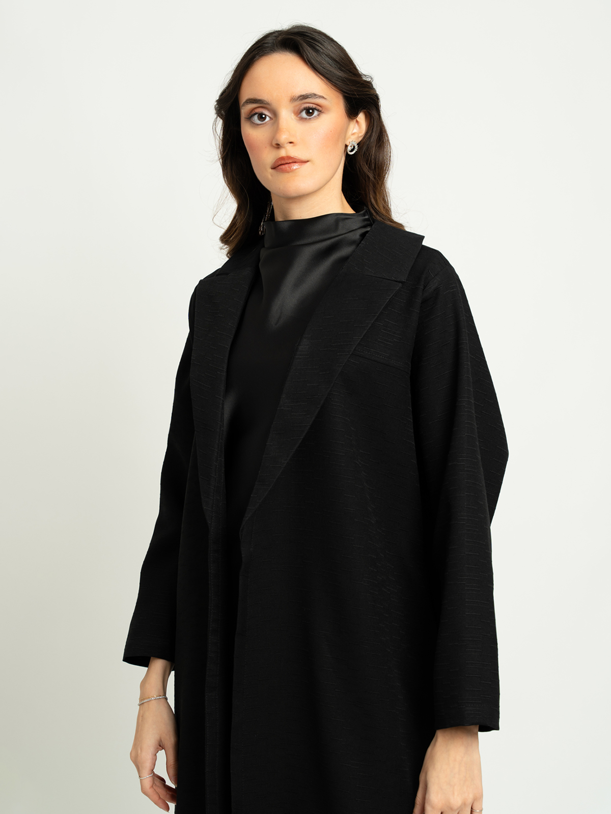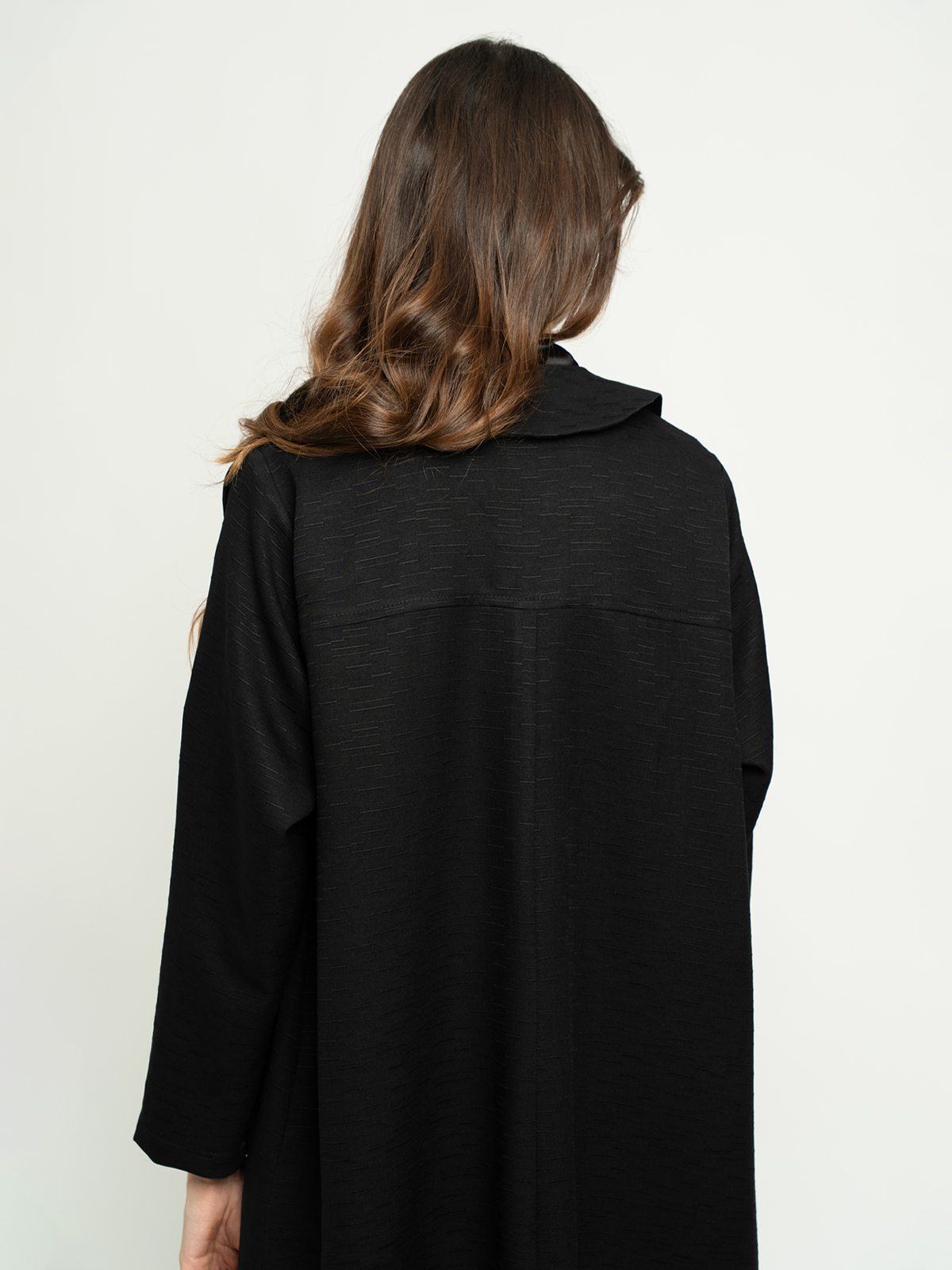 Suit Reguler Cut Long Open Abaya in Striped Jacquard Fabric Without Tarha