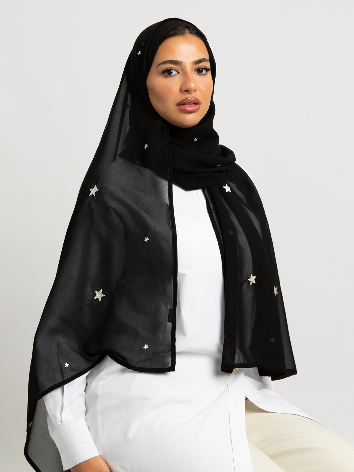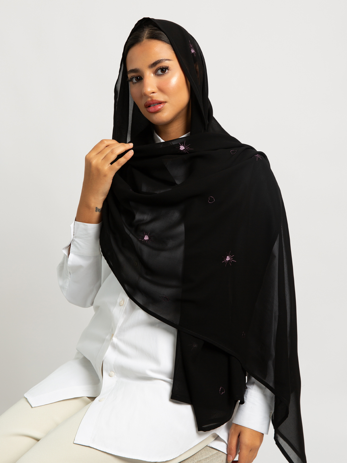 The package includes 3 laser embroidered tarha made from premium chiffon laser fabric specially selected for tarha, offering a soft, flowy feel and effortless styling.