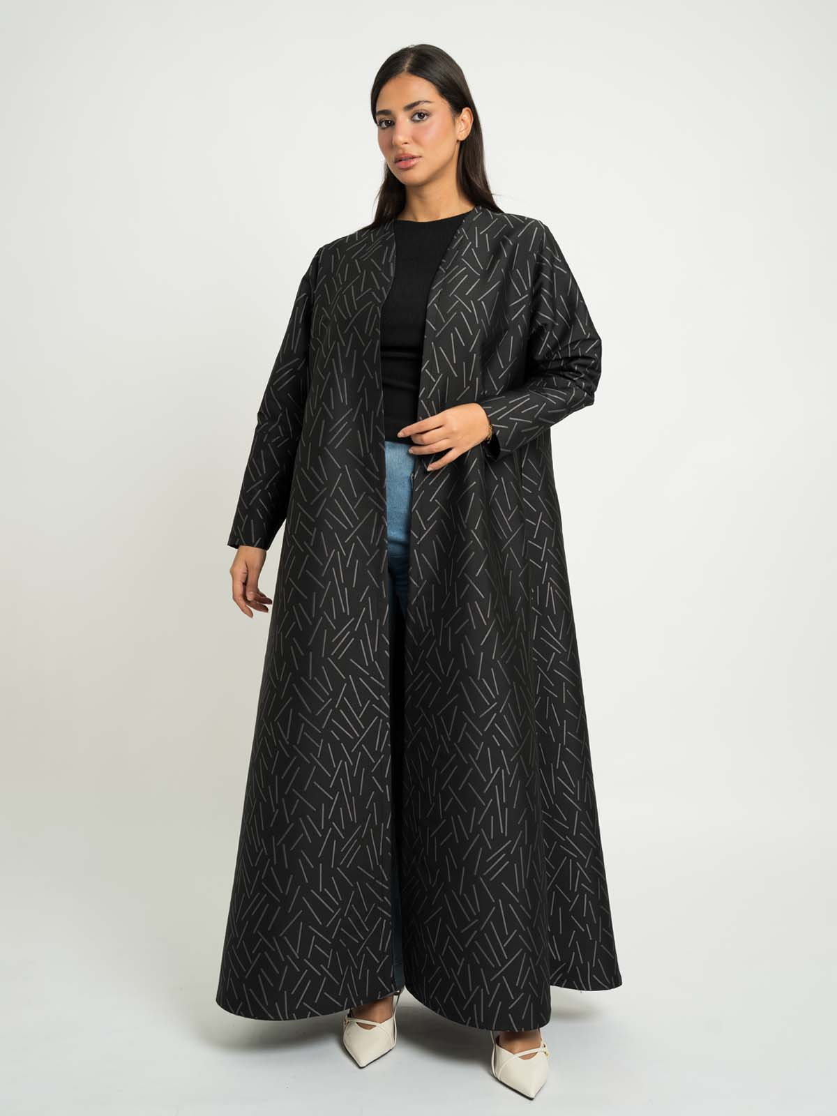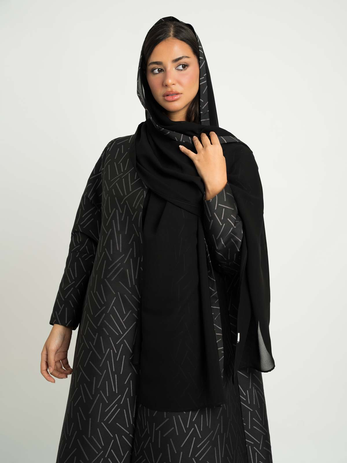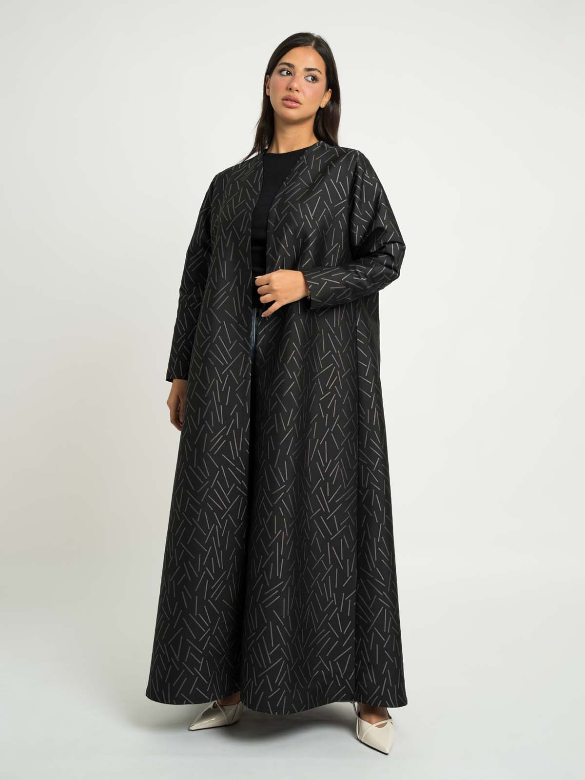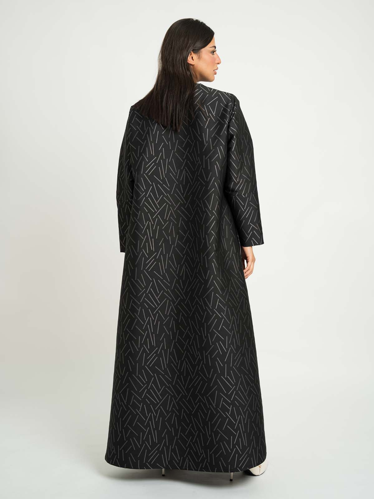 Black with Gray A-Cut Jacquard Abaya