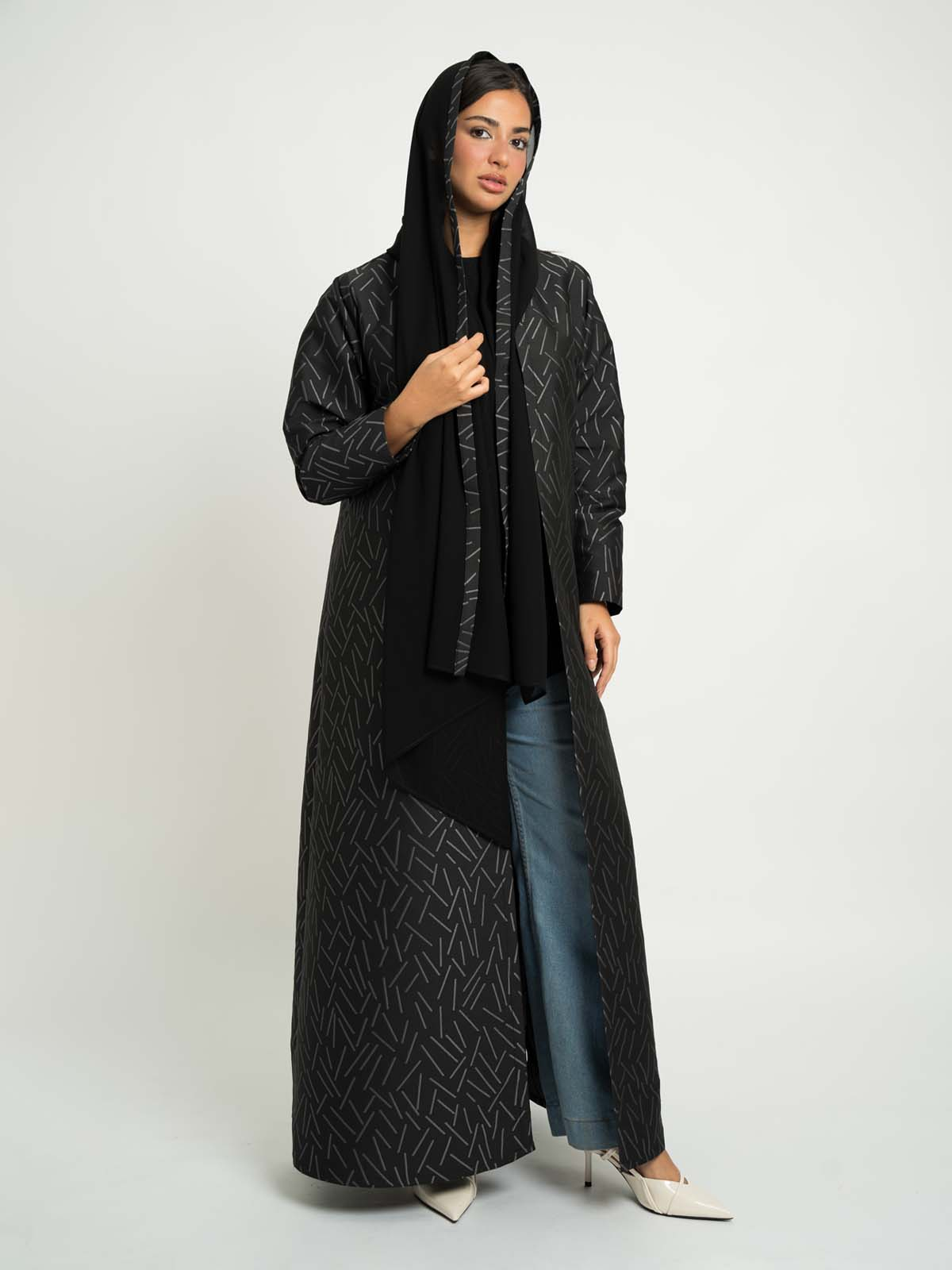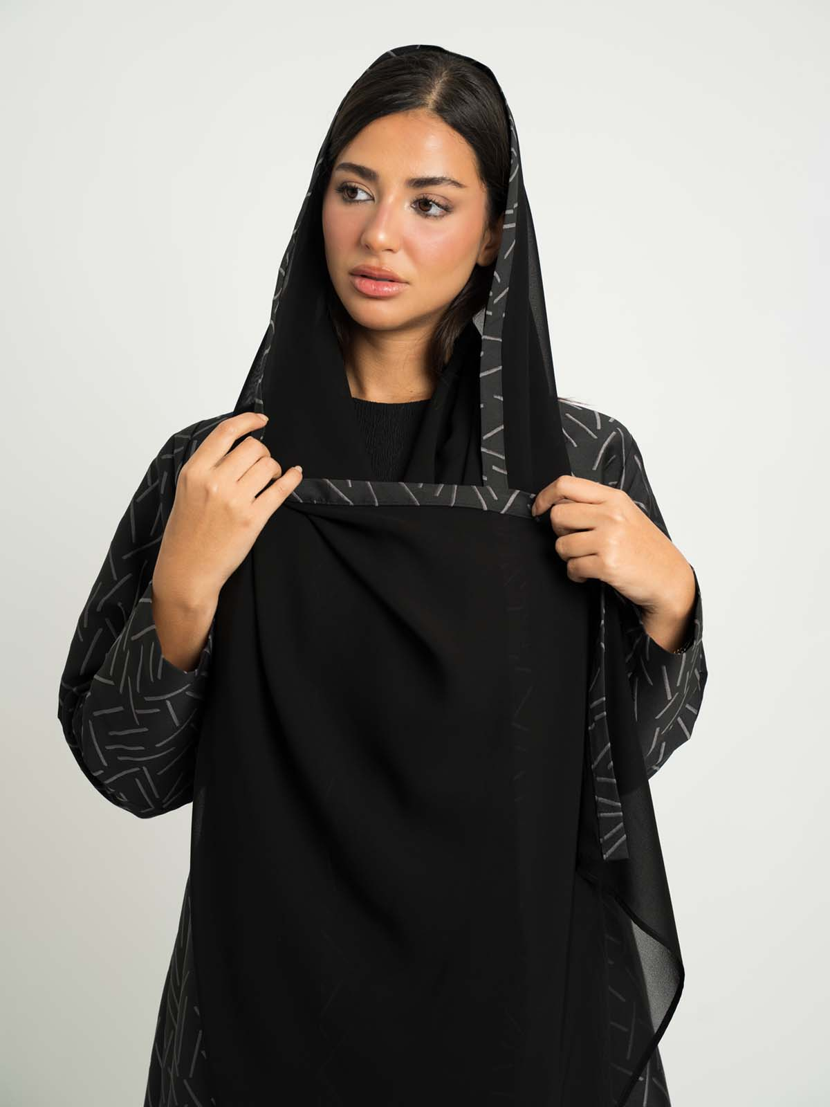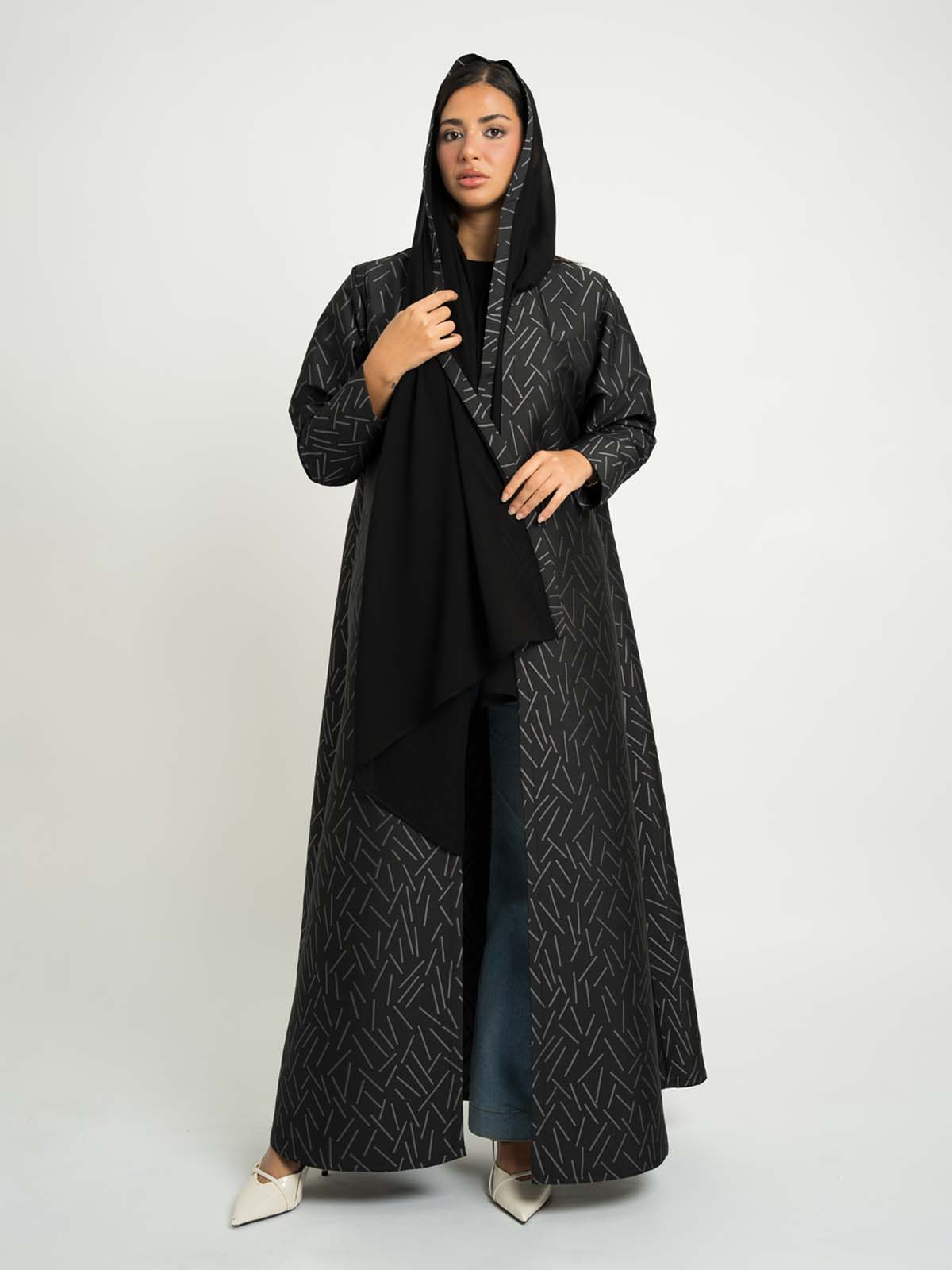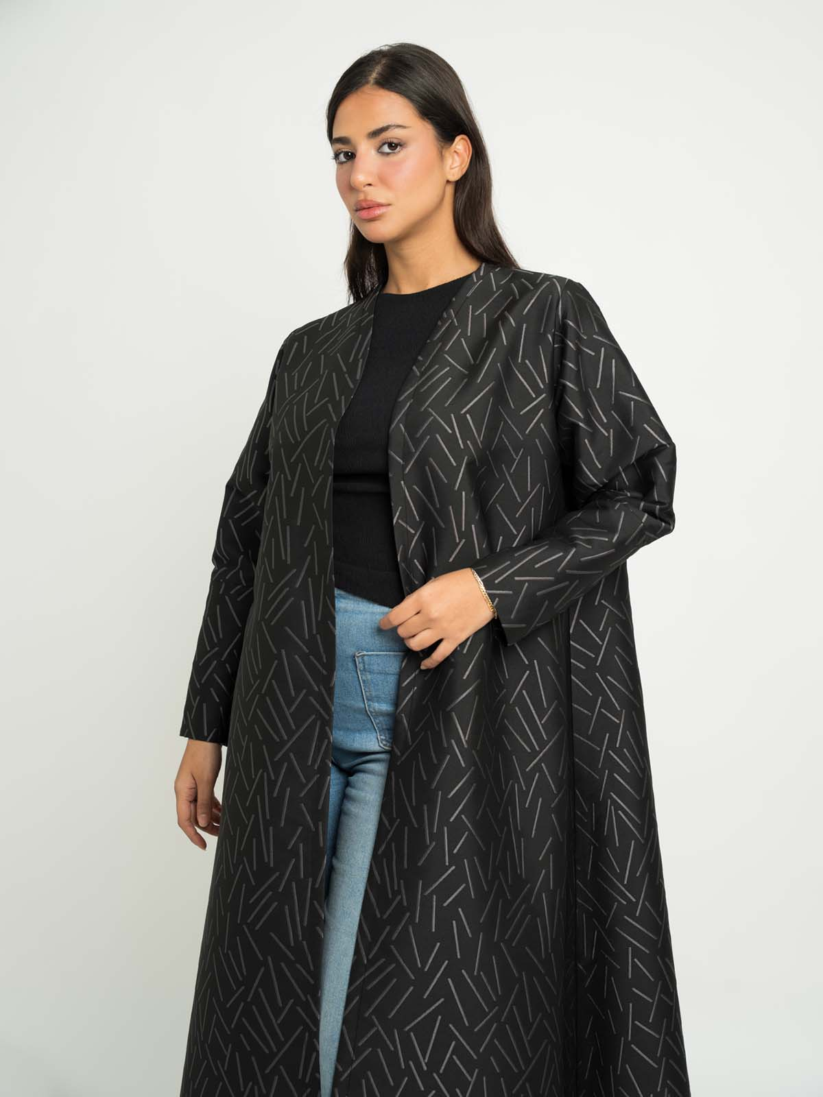 Black with Gray A-Cut Jacquard Abaya