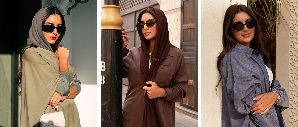 على العكس، جمالها يظهر عند اللعب بالدرجات القريبة من اللون نفسه. عباية بدرجة أغمق، ملابس تحت العباية بدرجة أفتح، وإكسسوارات بدرجة متوسطة تخلق انسجامًا بصريًا مريحًا.