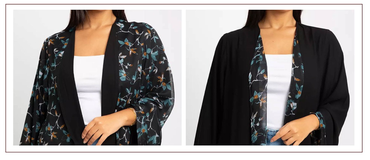 ببساطة، اقلبي العباية على الوجه الآخر، وأكملي يومكِ بإطلالة مختلفة تمامًا، بنفس الراحة والهدوء.