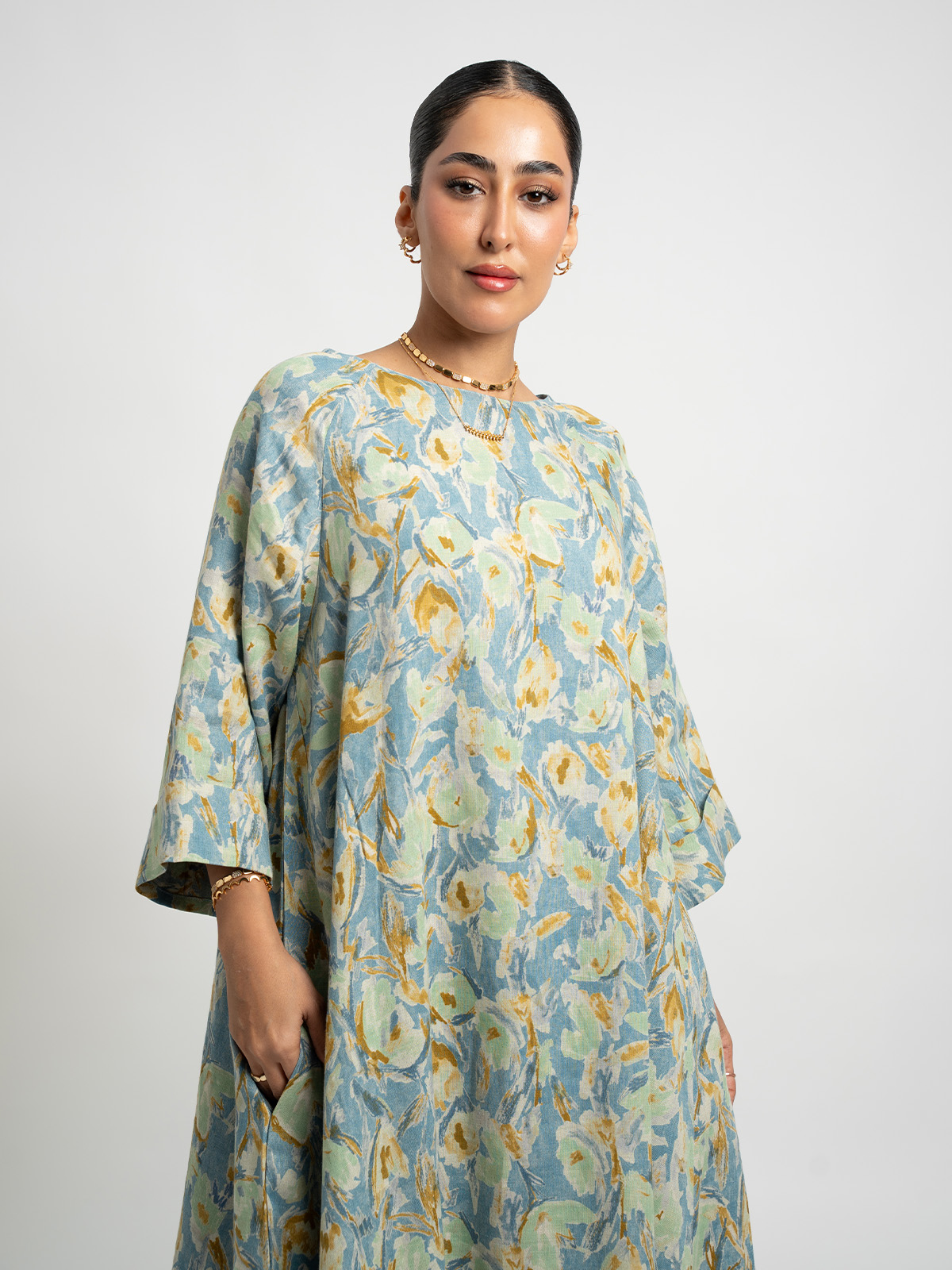 A new A-cut half cloche jalabiya made from premium 100% linen fabric. Thoughtful design details make it perfect for Ramadan gatherings, family iftars, and cozy everyday moments.
