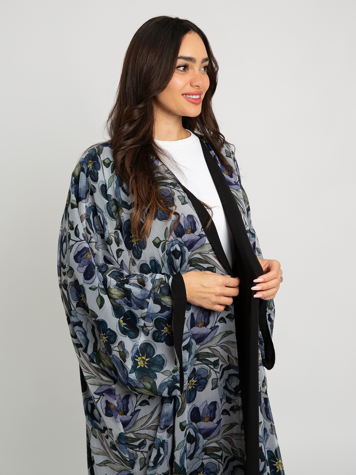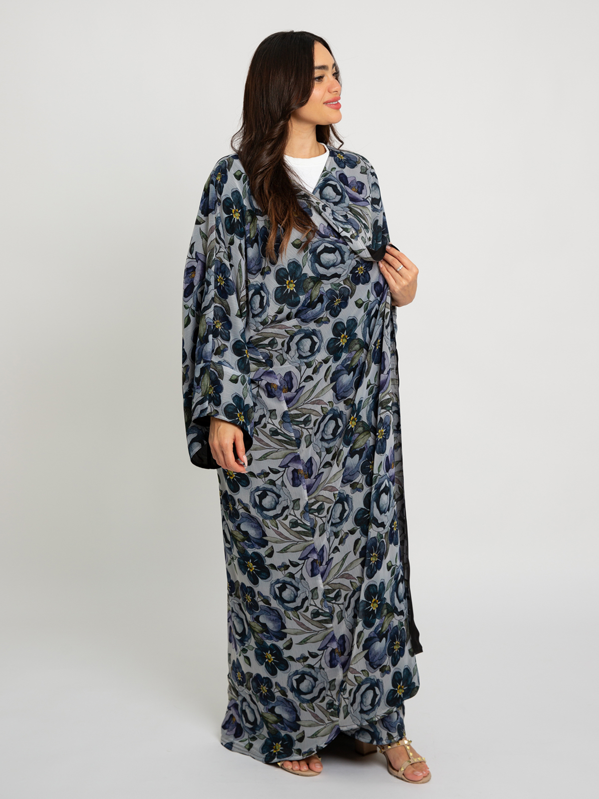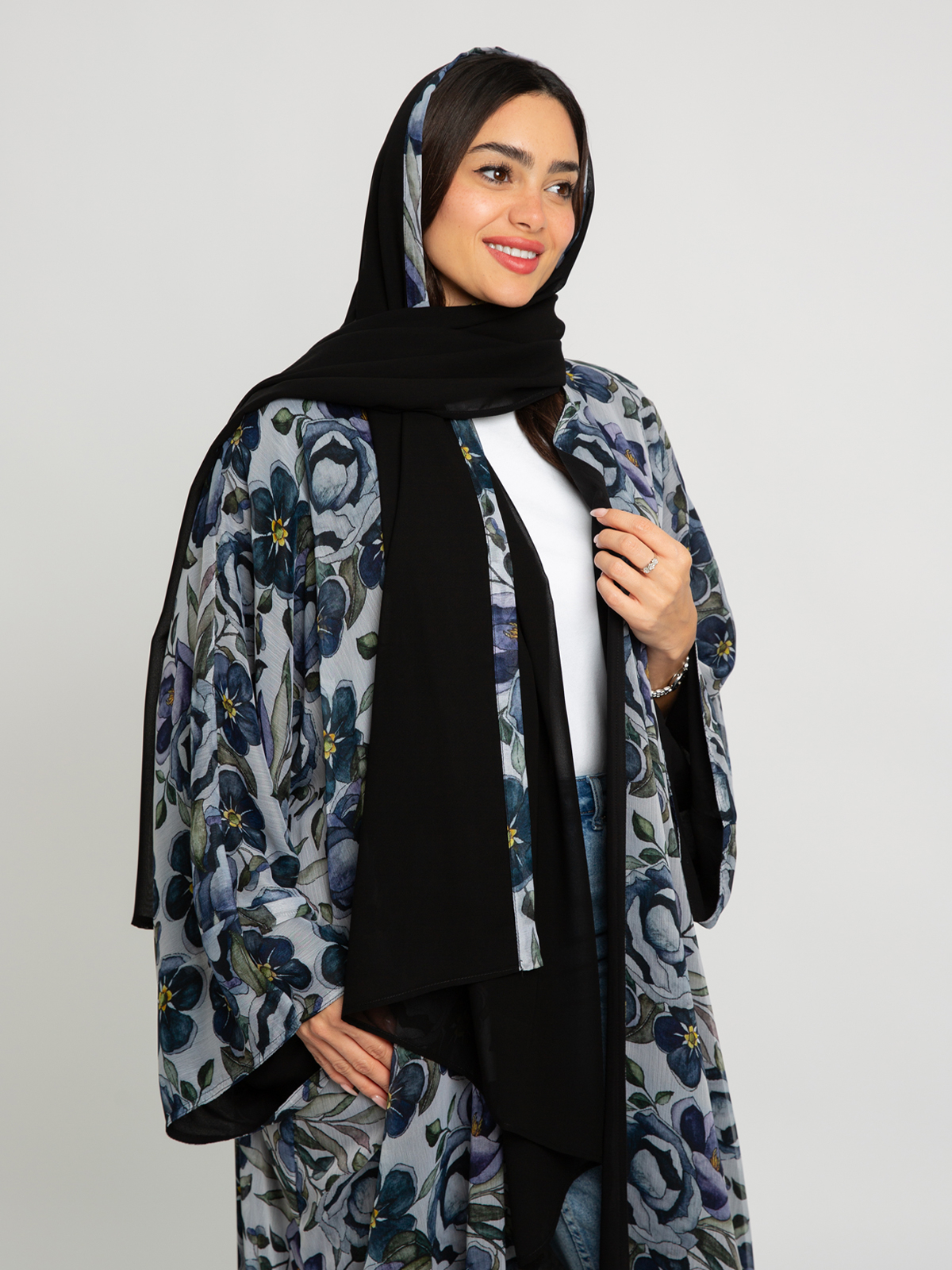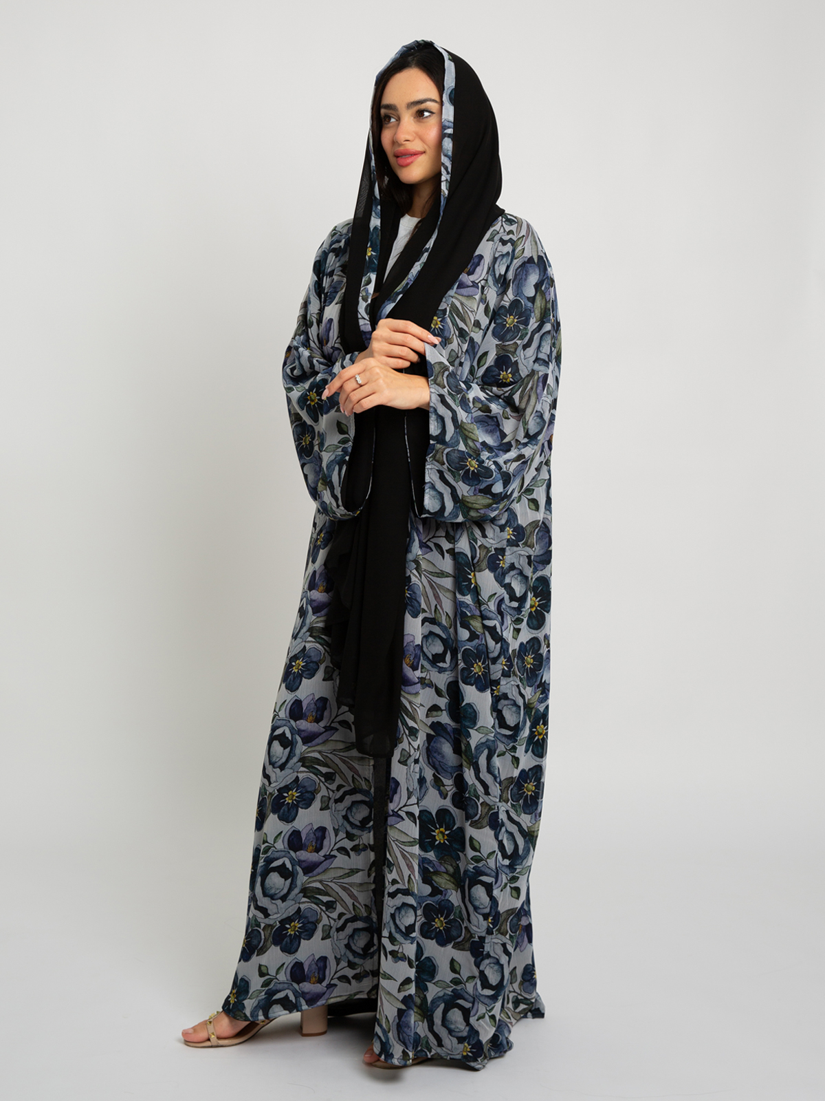 Double Face Wide-fit Long Open Abaya in Printed Chiffon Fabric