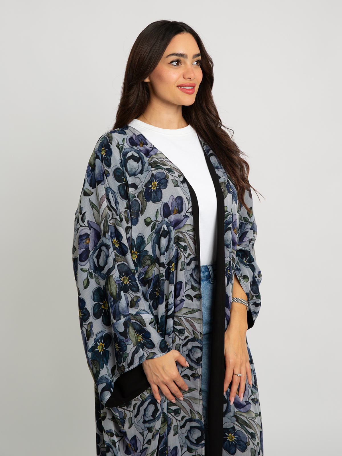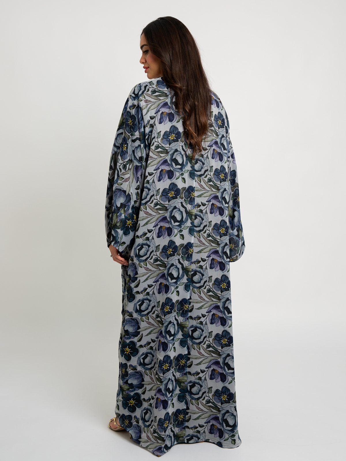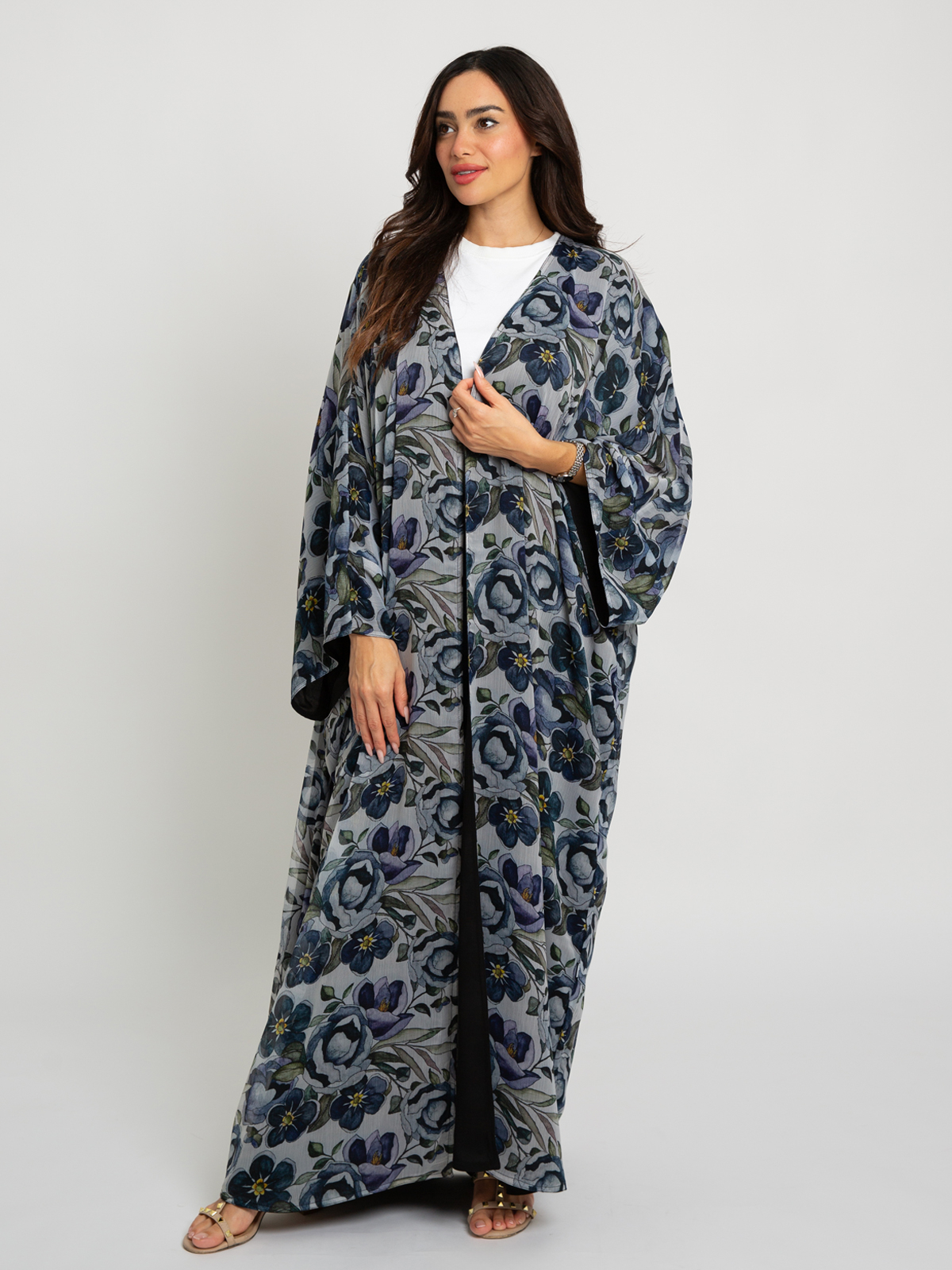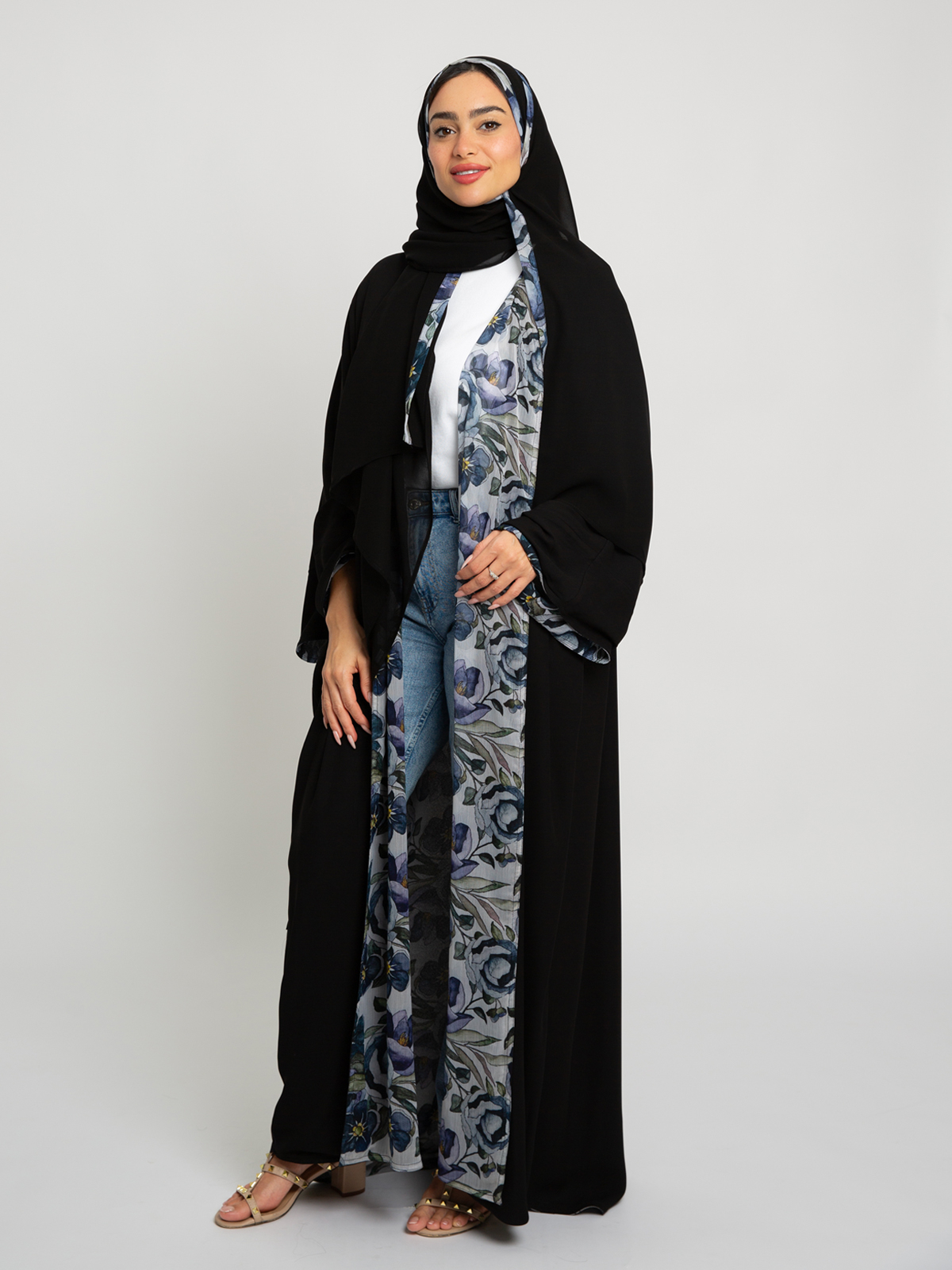Double Face Wide-fit Long Open Abaya in Printed Chiffon Fabric