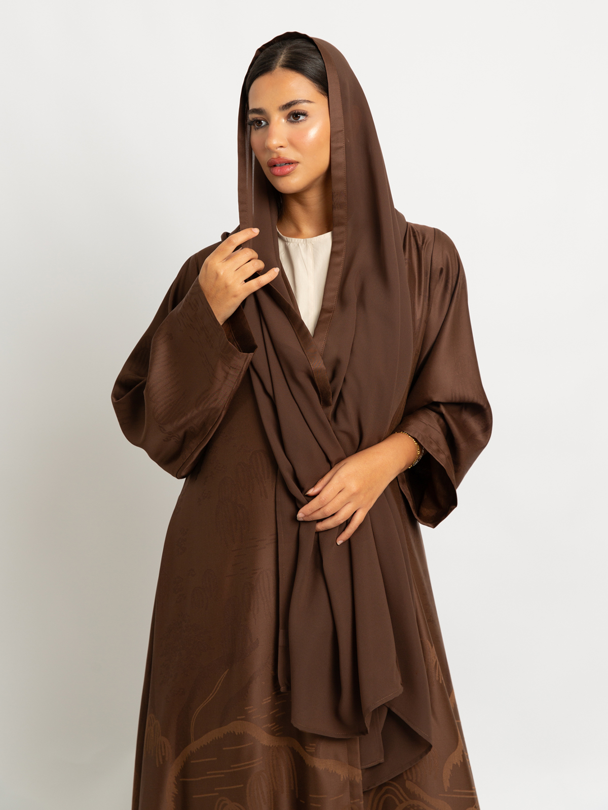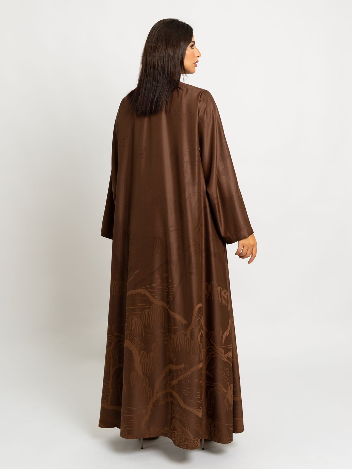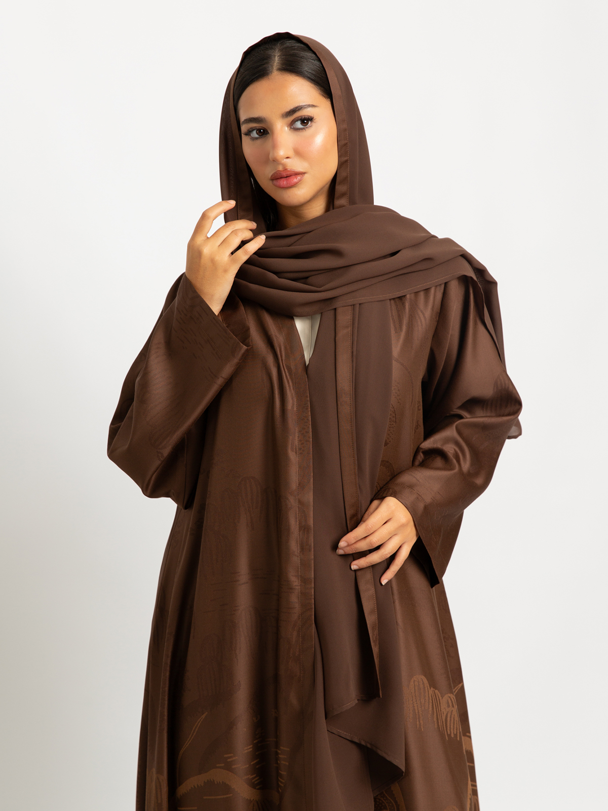 Half Cloche A-Cut Long Open Abaya in Mixed Woven Fabric
