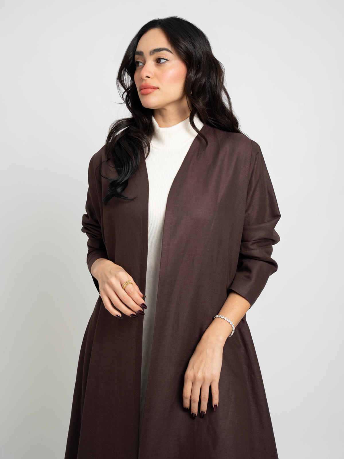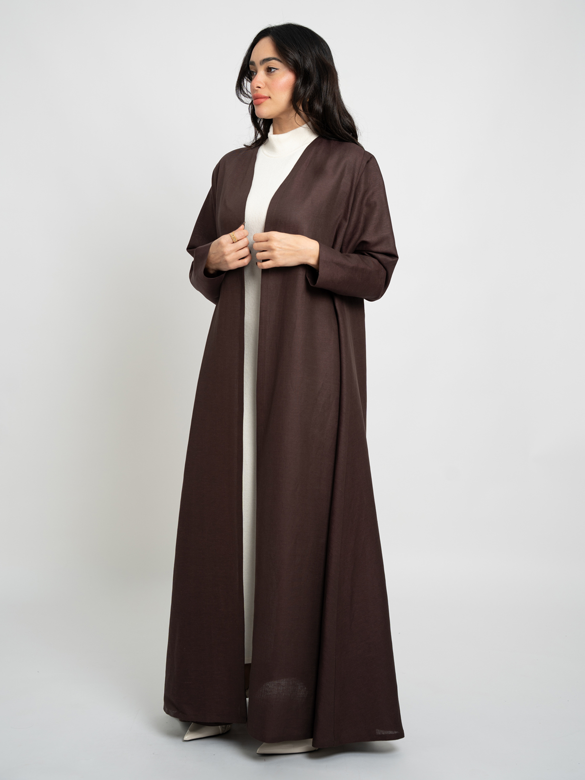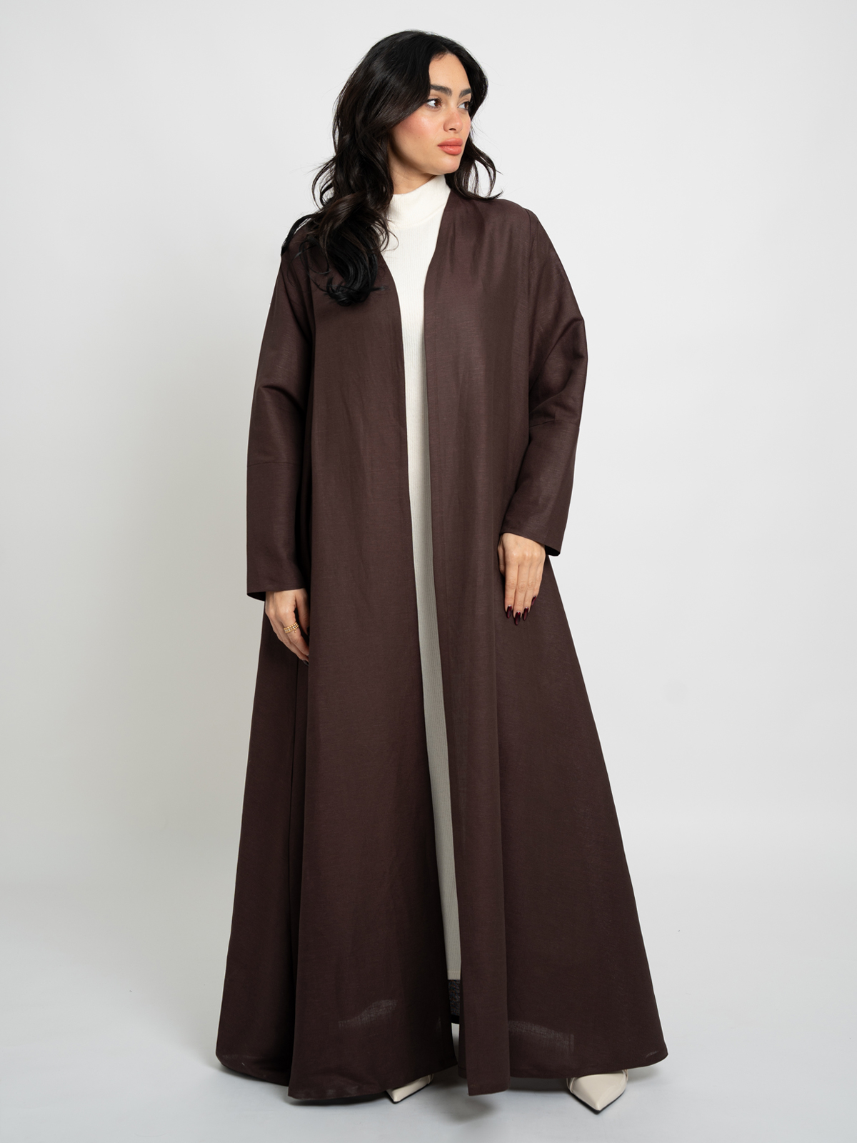 Half Cloche A-Cut Long Open Abaya in Linen Fabric