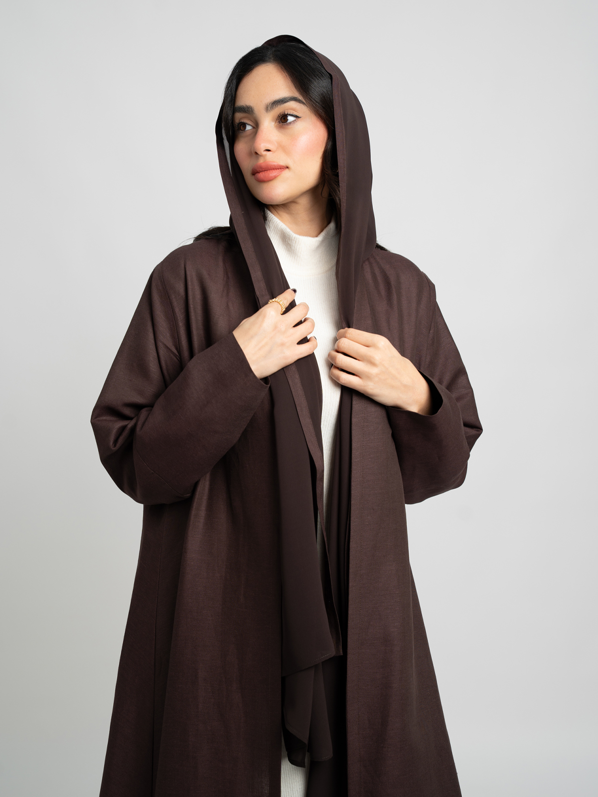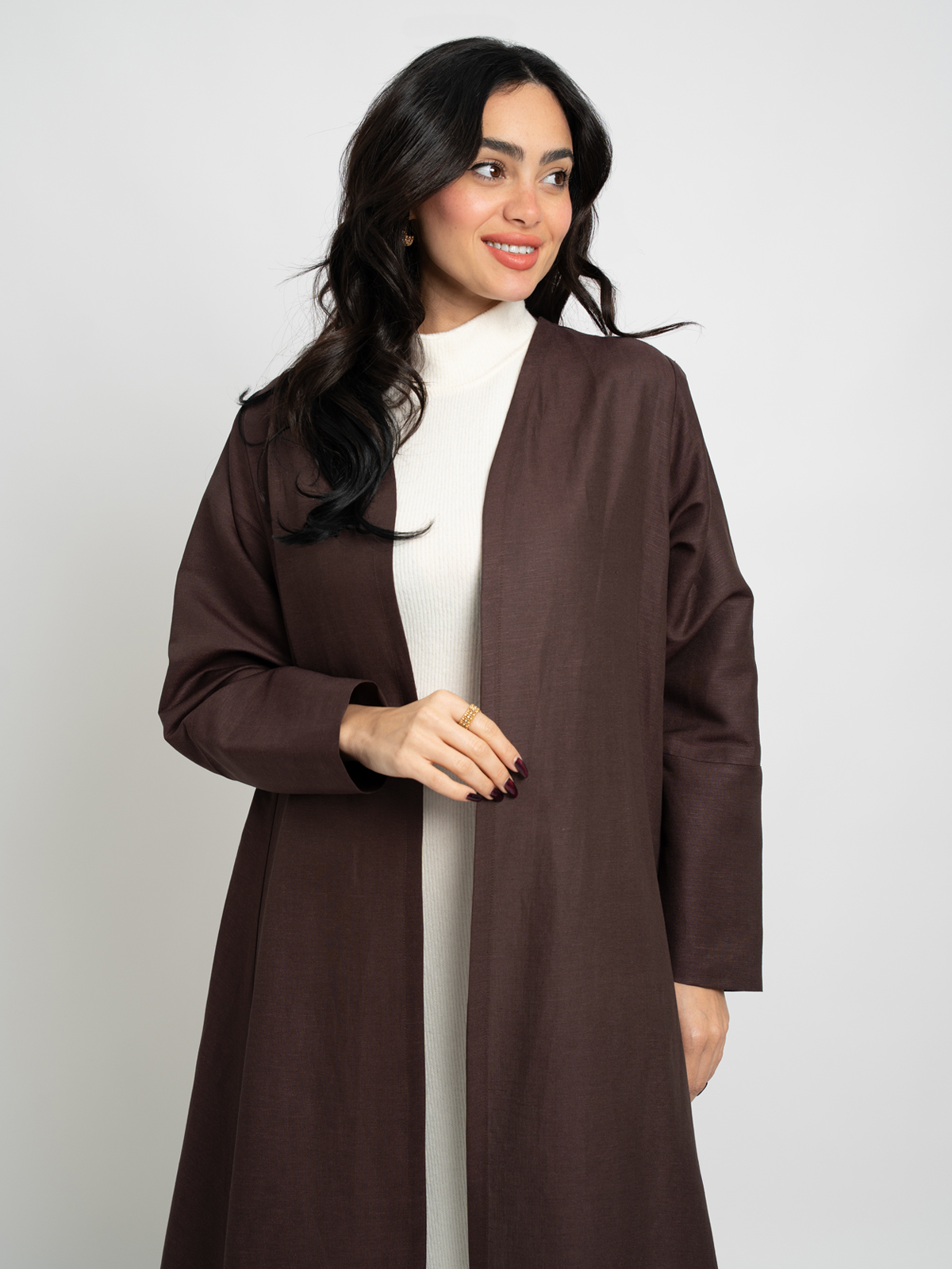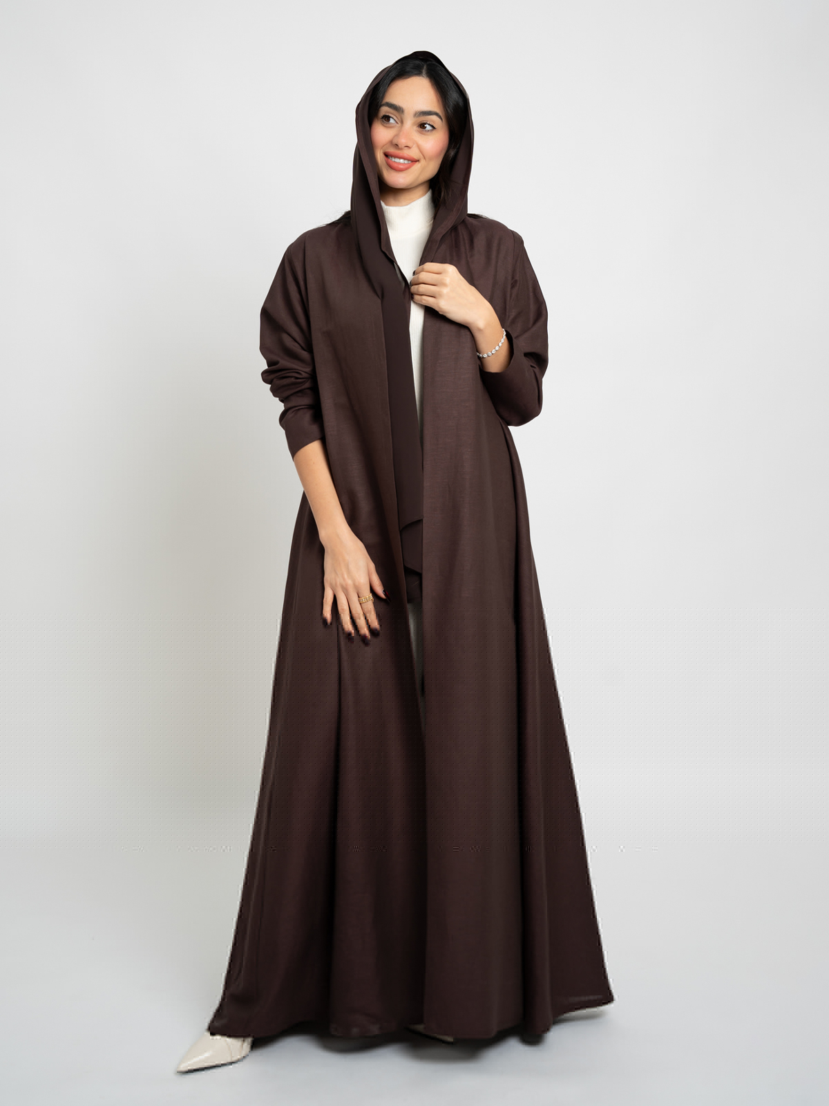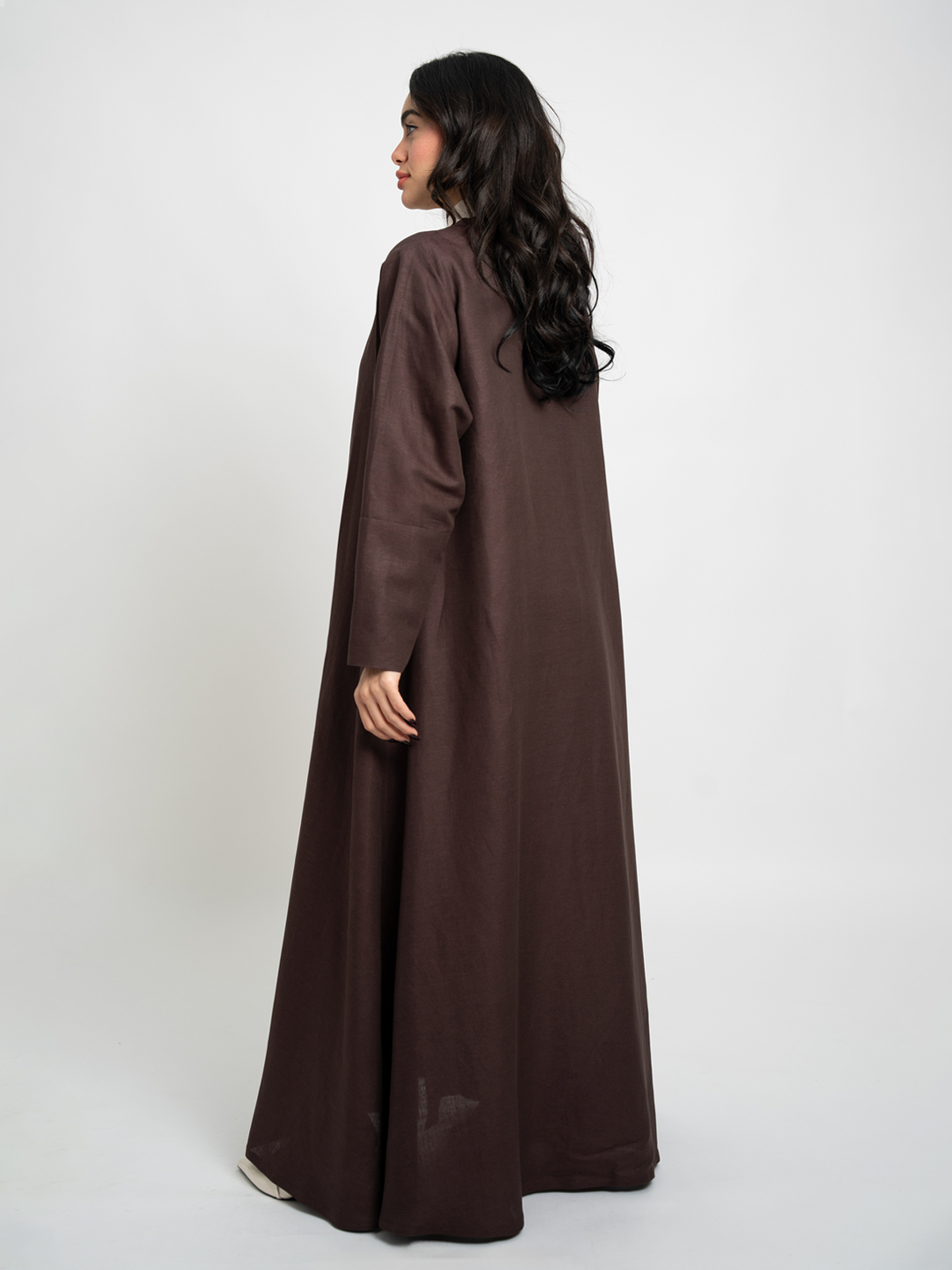 Half Cloche A-Cut Long Open Abaya in Linen Fabric