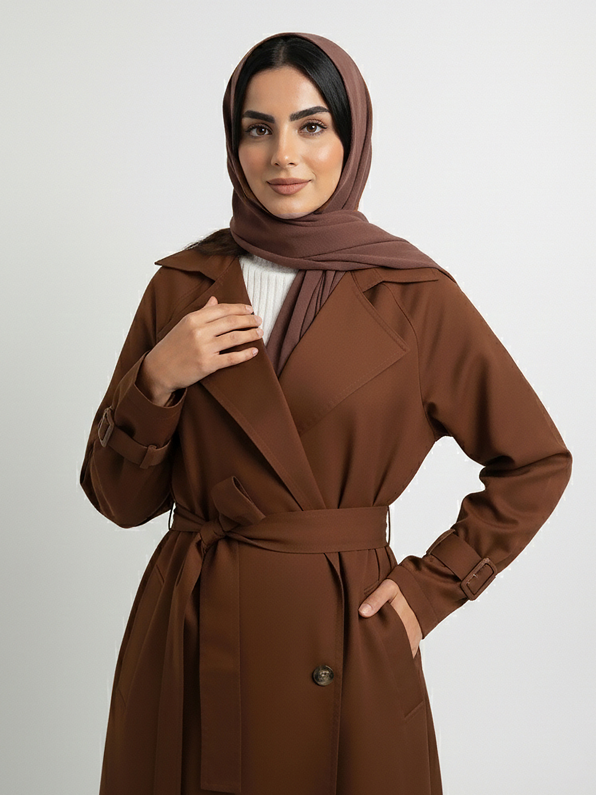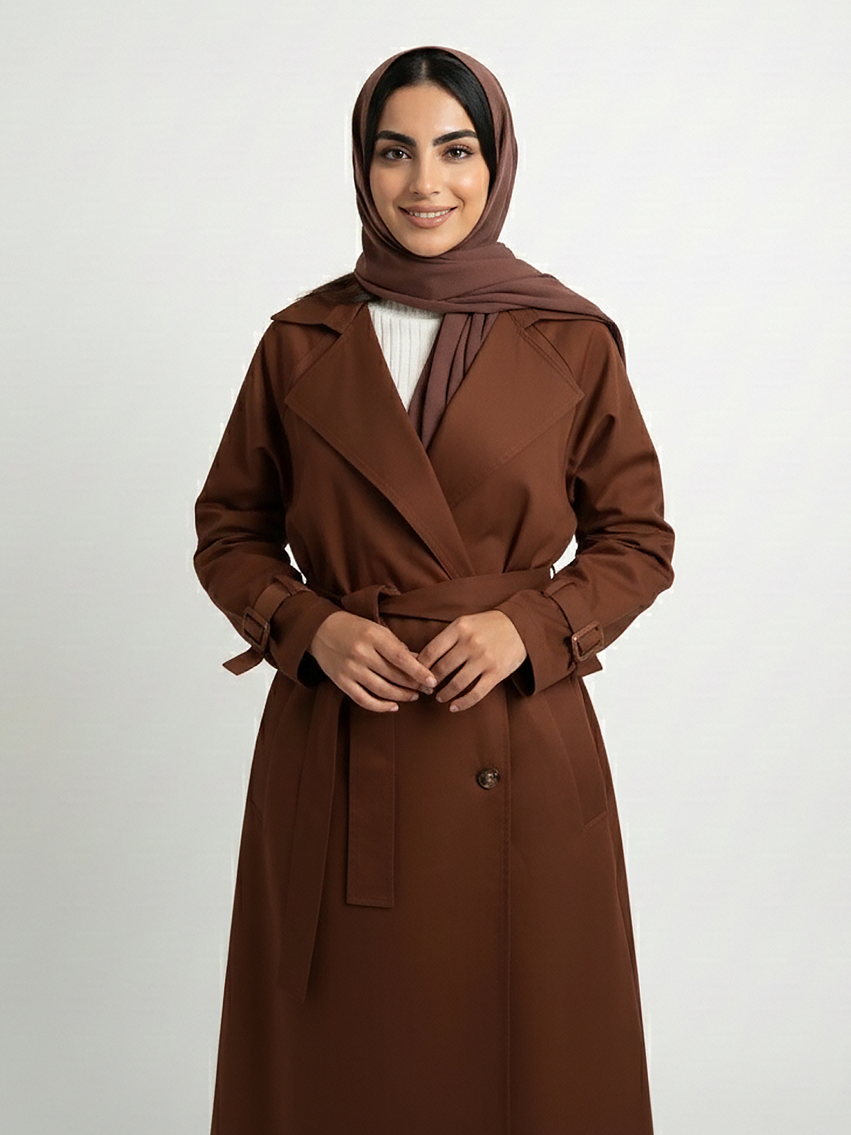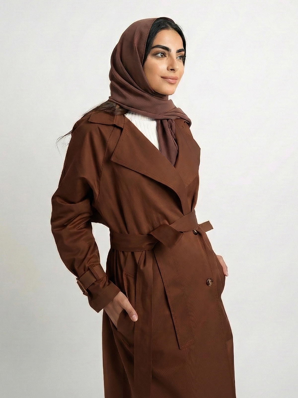 100% Tencel Trench-AbayaOur fancy Trench-Abaya is your new version of a Trench-coat. It's an investment piece designed especially for you, made from high-quality 100% Tencel fabric.