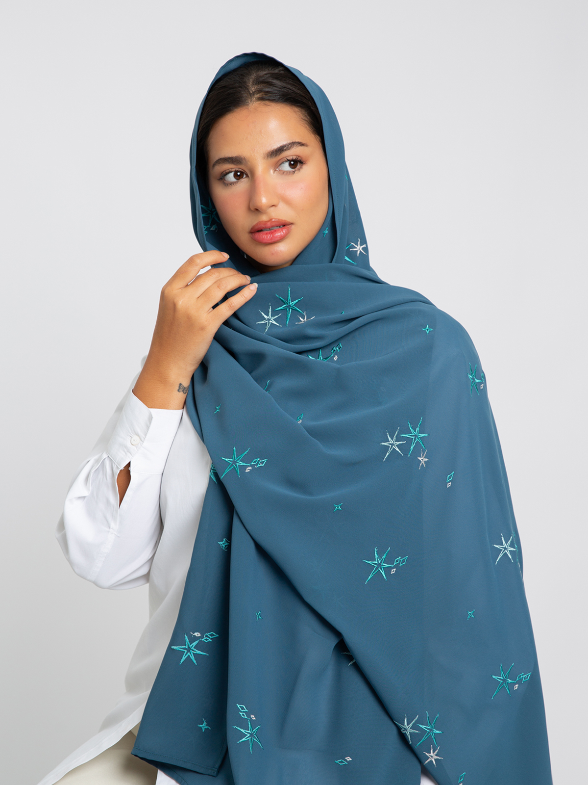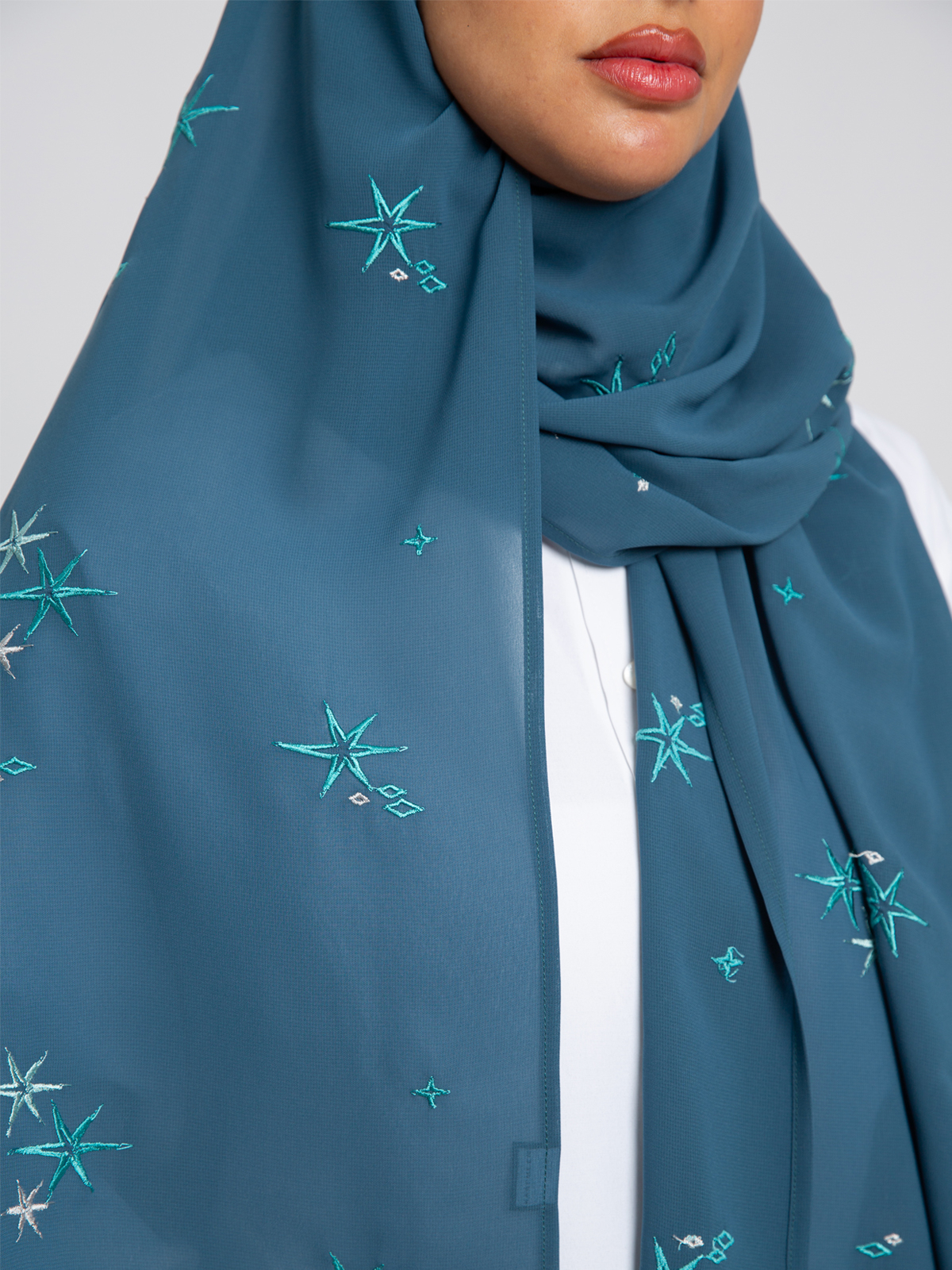 Laser Hijab with Shining Stars Embroidery by Kaafmeem – Shine Bright Every Day!