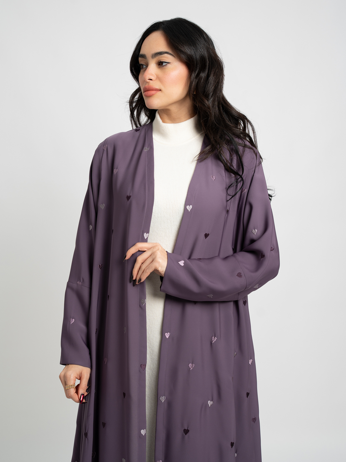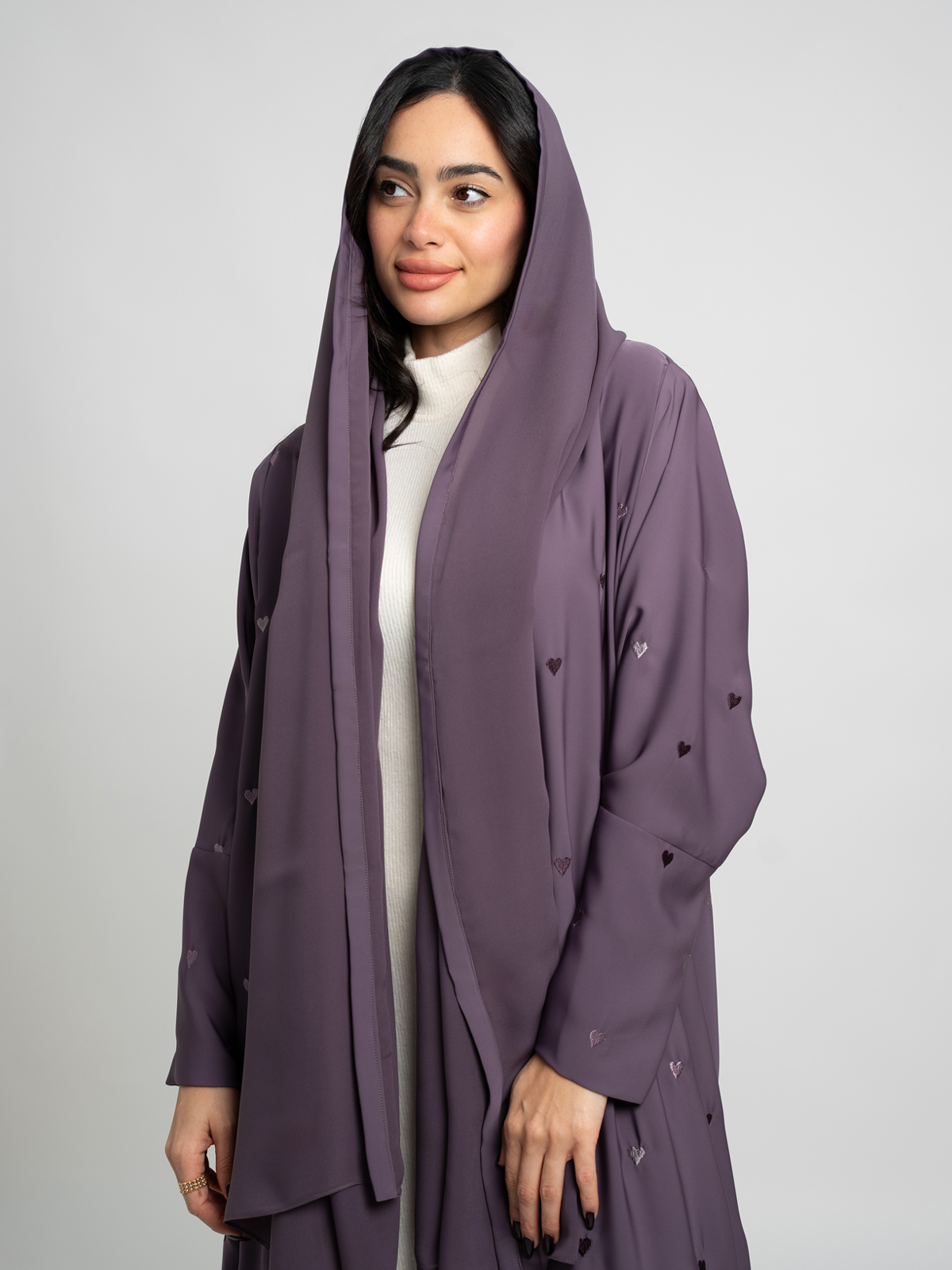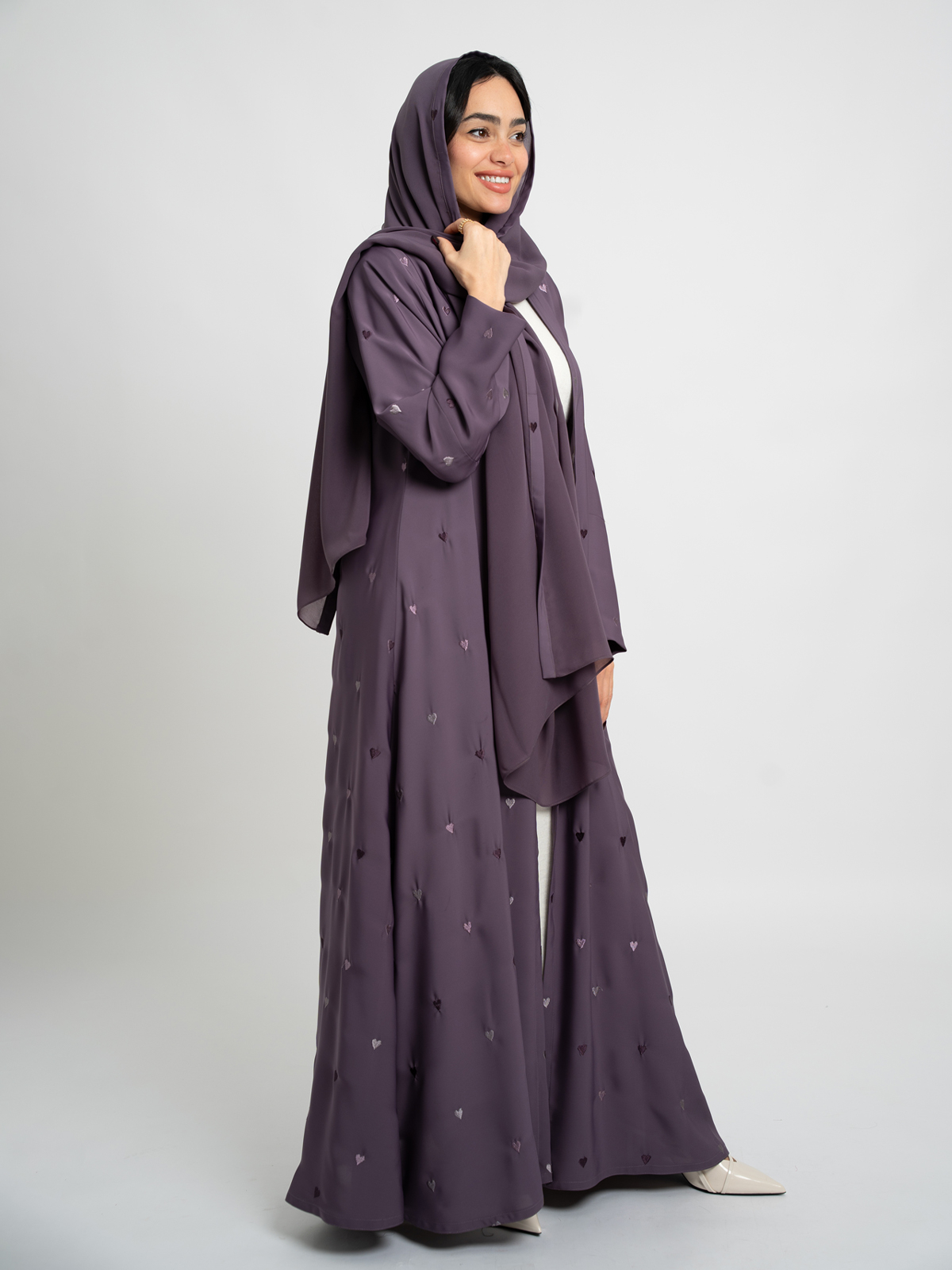 Half Cloche A-Cut Long Open Abaya in Embroidered Crepe Fabric