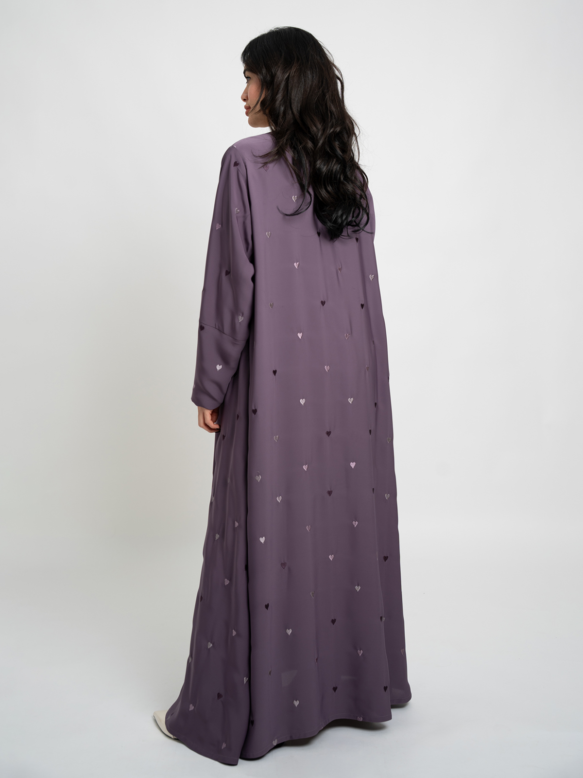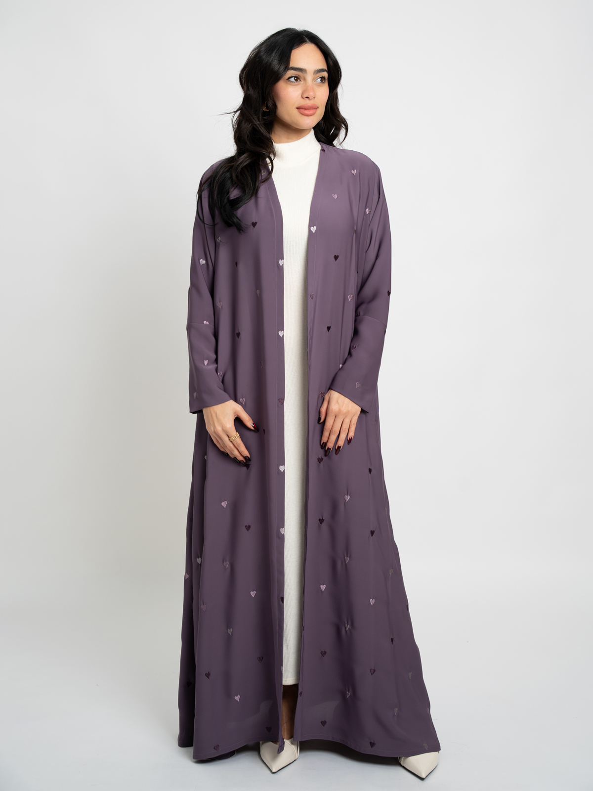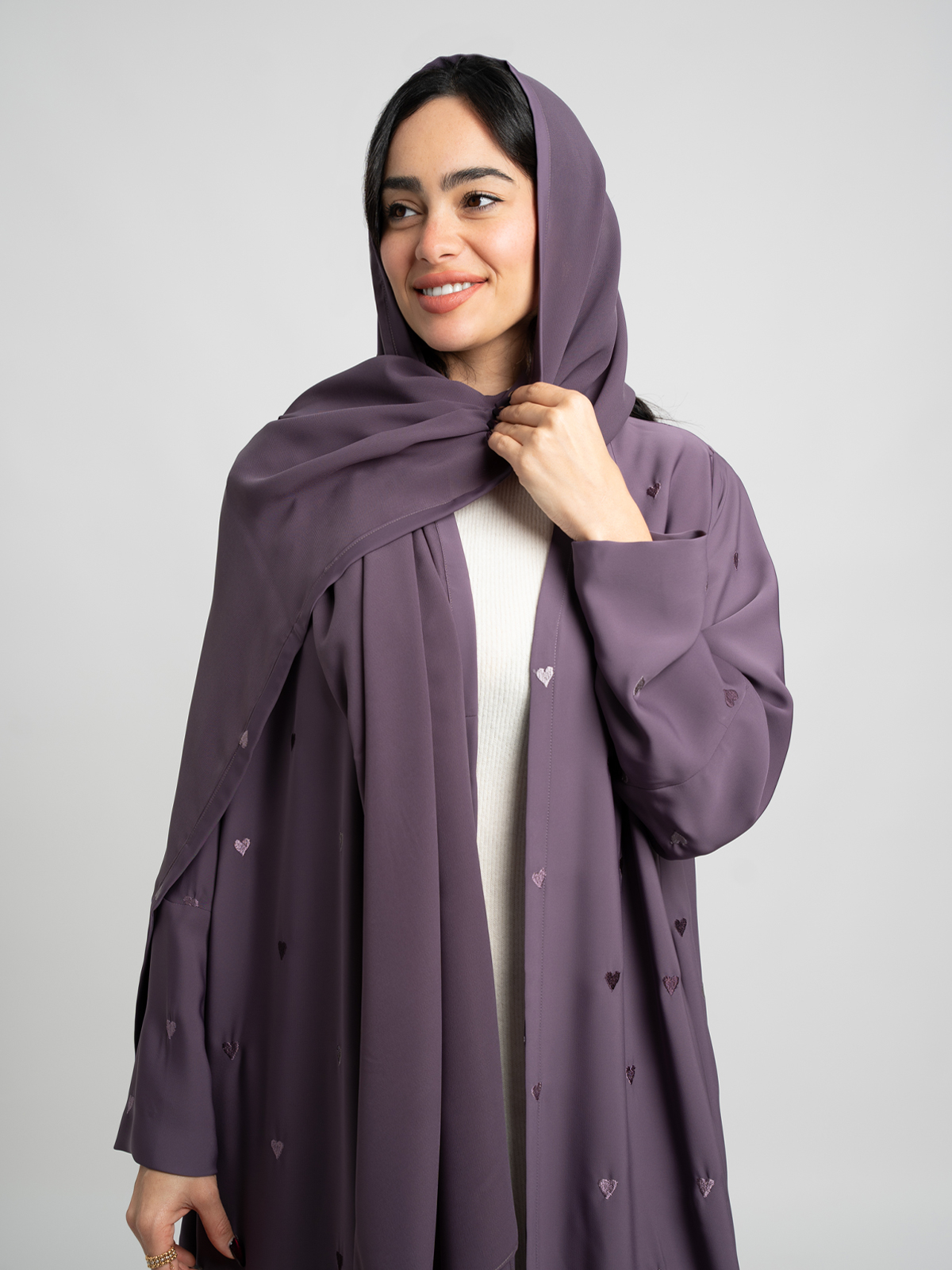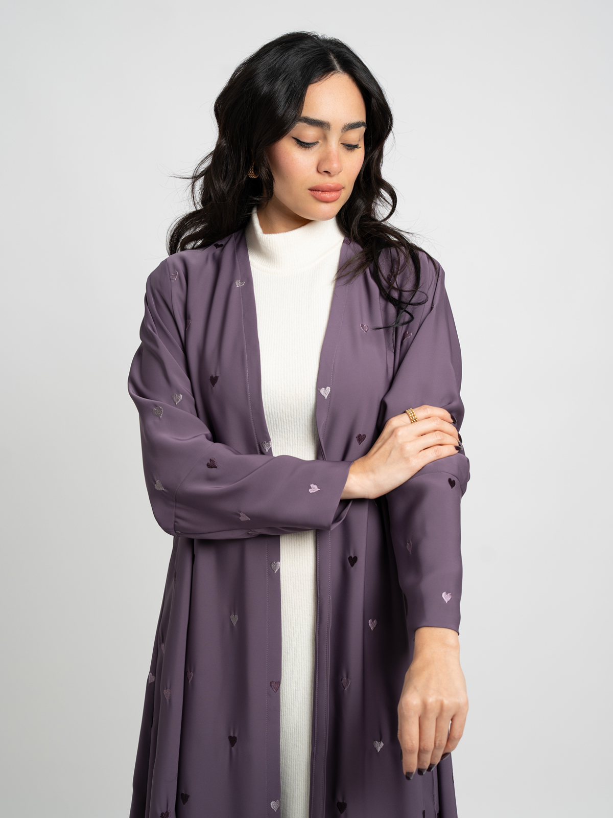 Half Cloche A-Cut Long Open Abaya in Embroidered Crepe Fabric