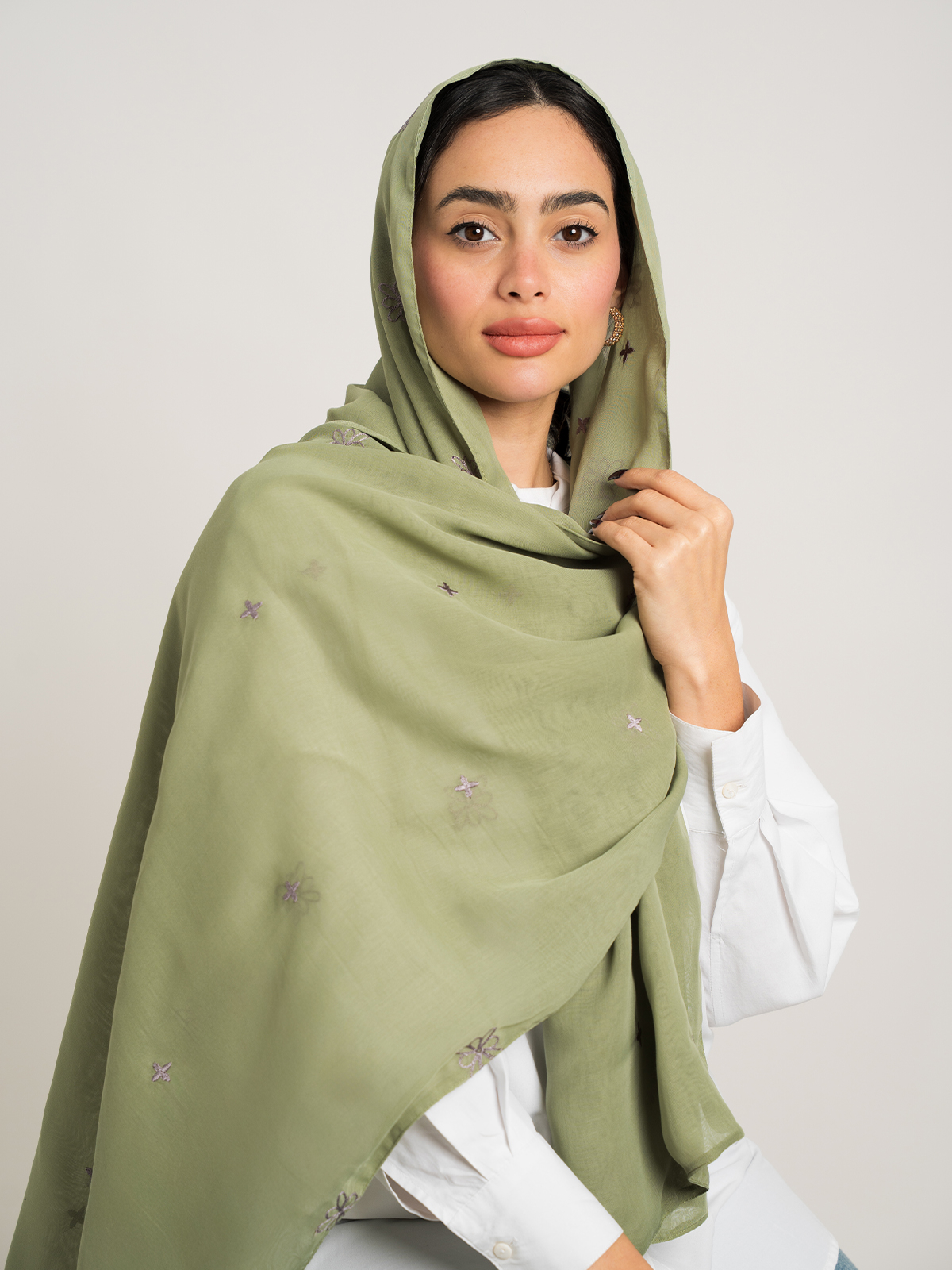 - Pale Olive Young Luna Tarha Double Voile Tarha.