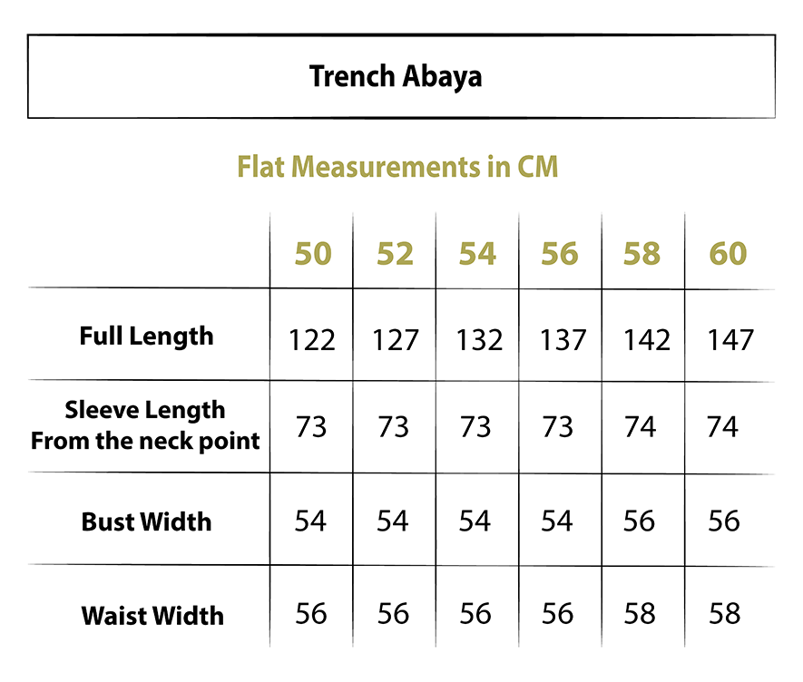 | Abaya Length | Ankle length |