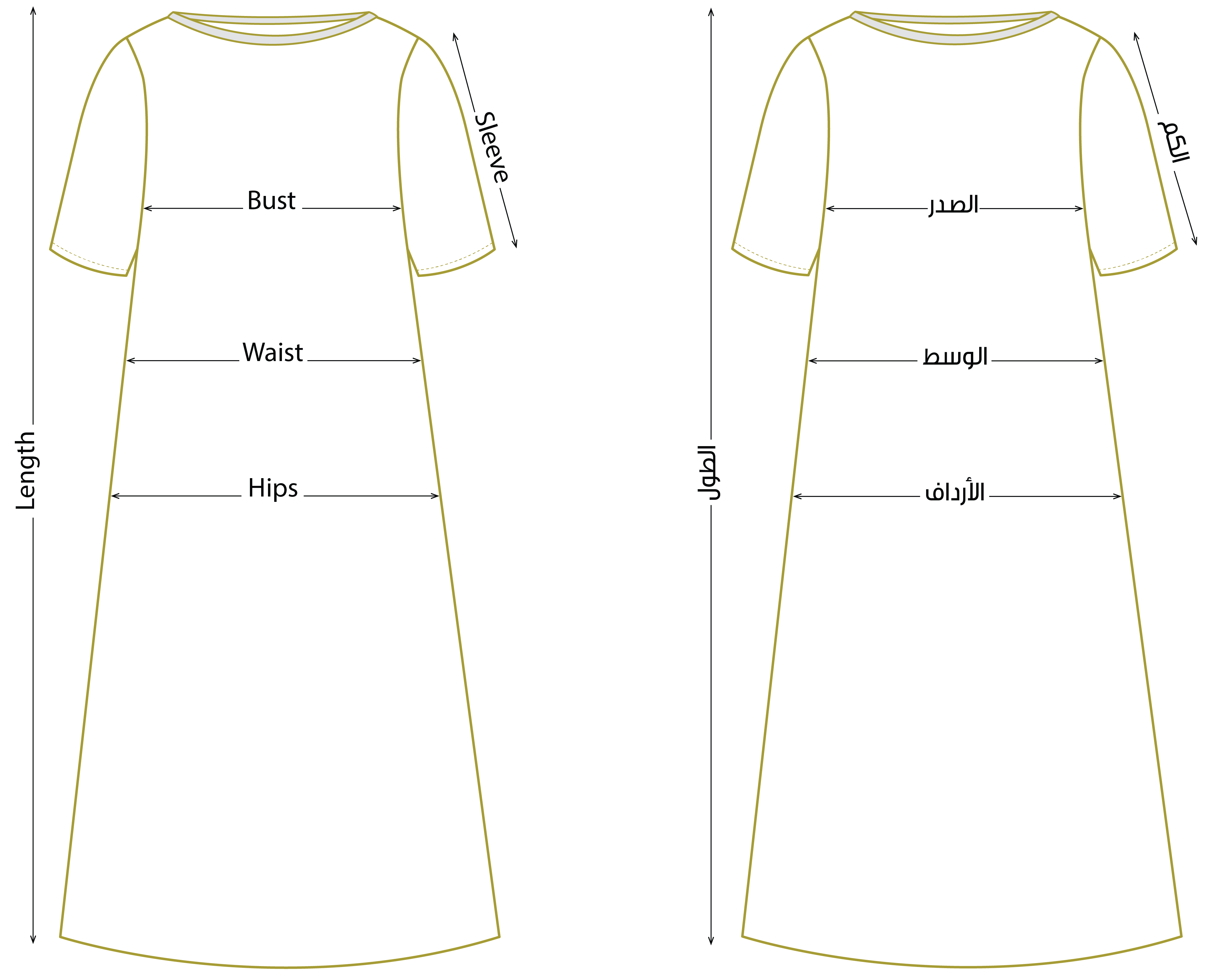 كما أن بعد الأصناف قد تتعرض إلى الإنكماش بسب استخدامنا لمواد طبيعية ١٠٠٪ مثل القطن والفسكوز والكتان الطبيعي والتي تعود لمقاسها الطبيعي بعد عملية الكي