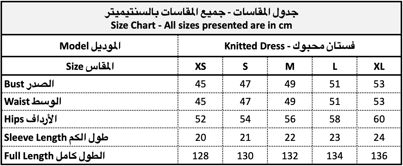 المقاسات قد تختلف من صنف إلى آخر بحدود ١ إلى ٣ سم.
