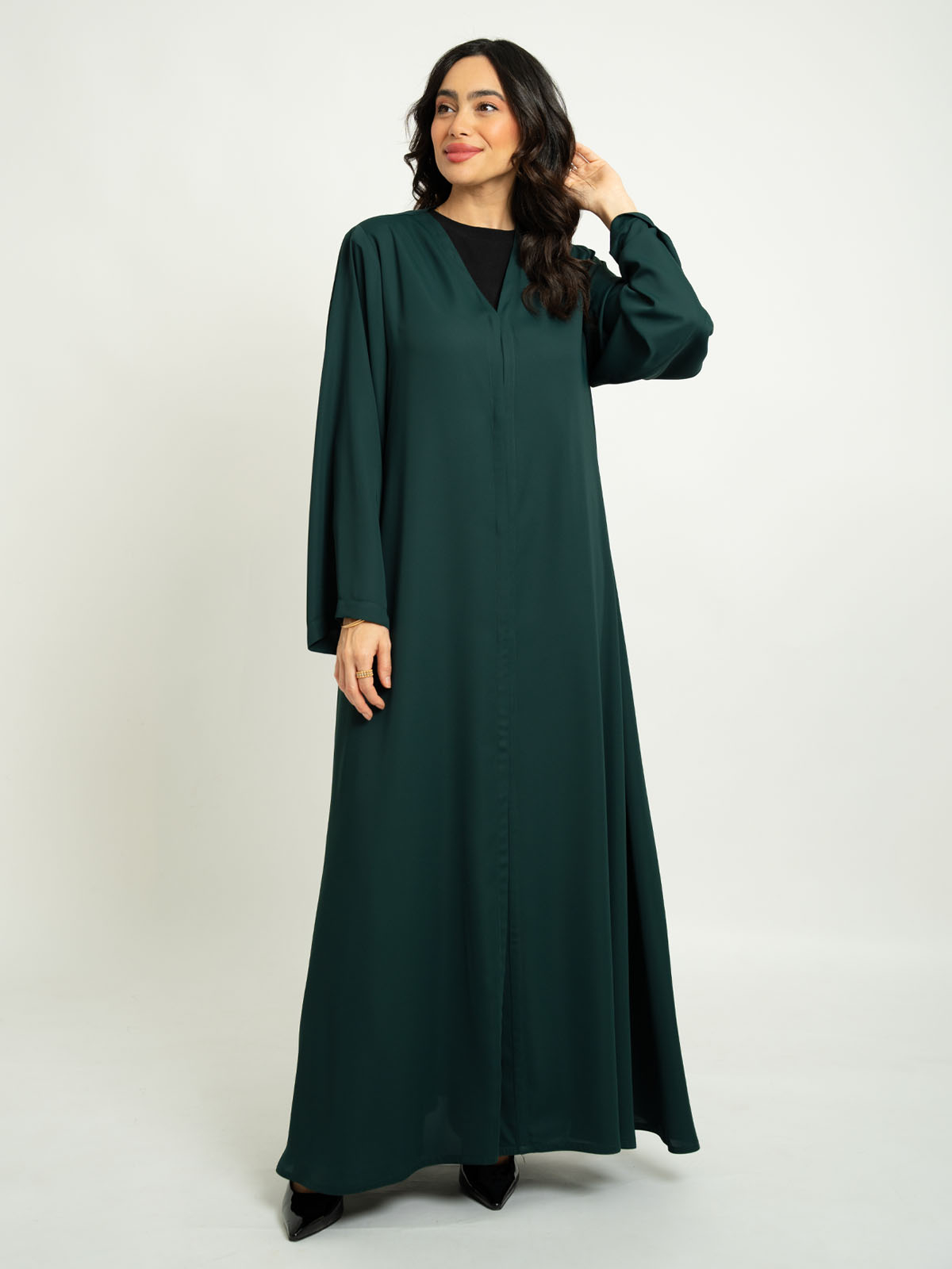 Half Cloche A-Cut Long Closed Abaya in Crepe Fabric