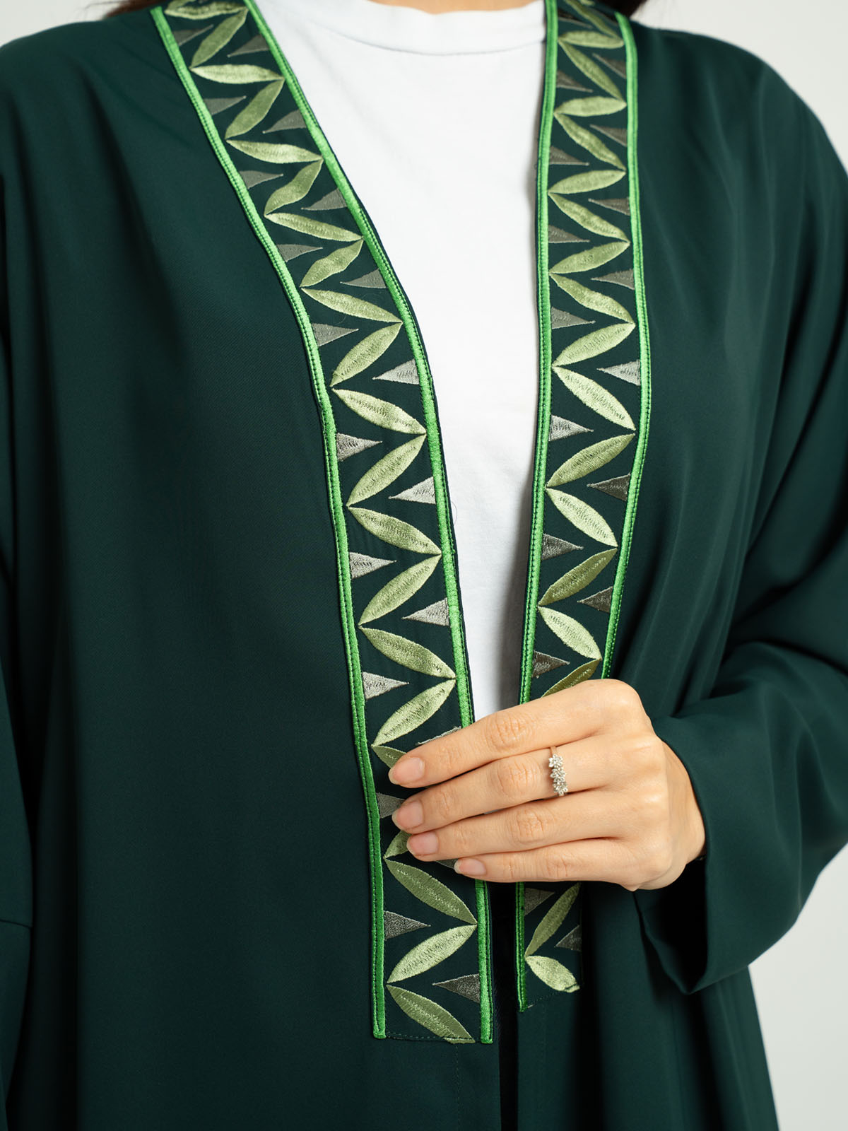 Grass Green Shadow Leaf A-Cut Abaya