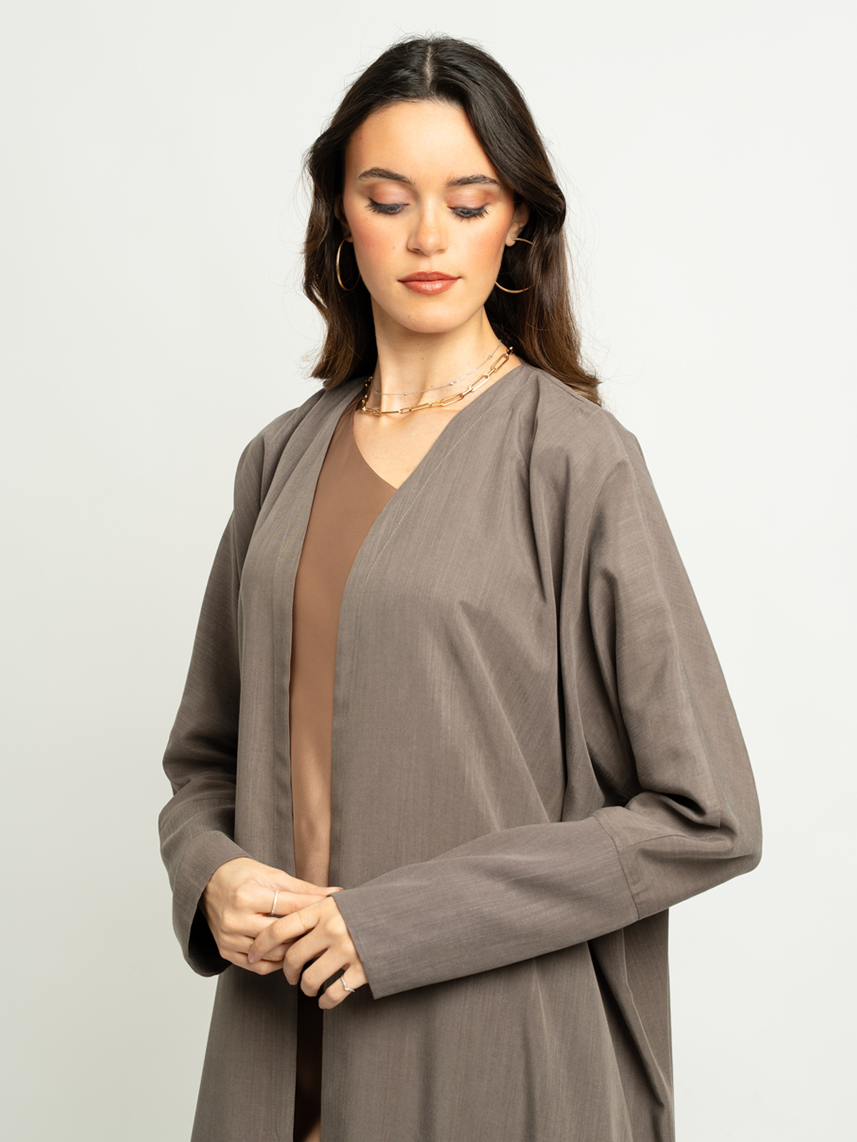Half Bisht Long Open Abaya in Crepe Fabric Without Tarha