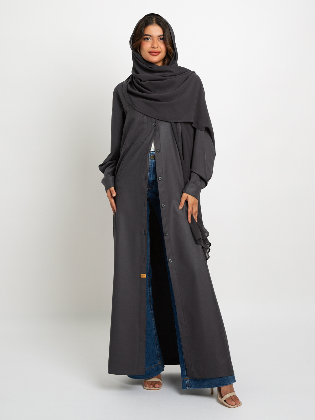 Shirt Regular Cut Closed Abaya in Cotton-feel Fabric