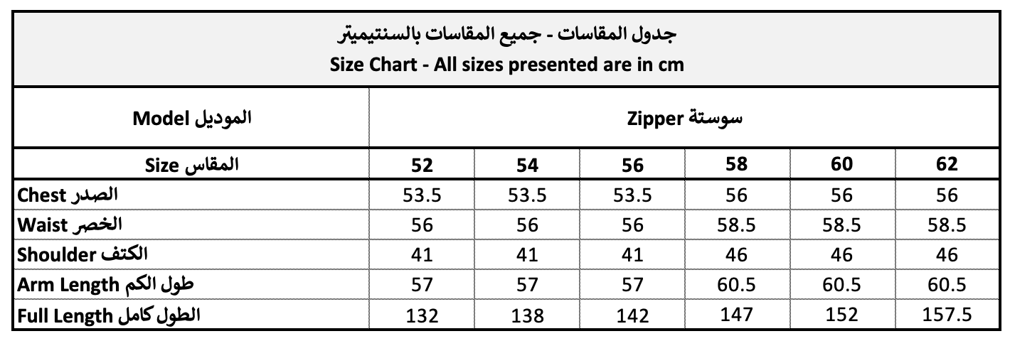 المقاسات قد تختلف من صنف إلى آخر بحدود ١ إلى ٣ سم.