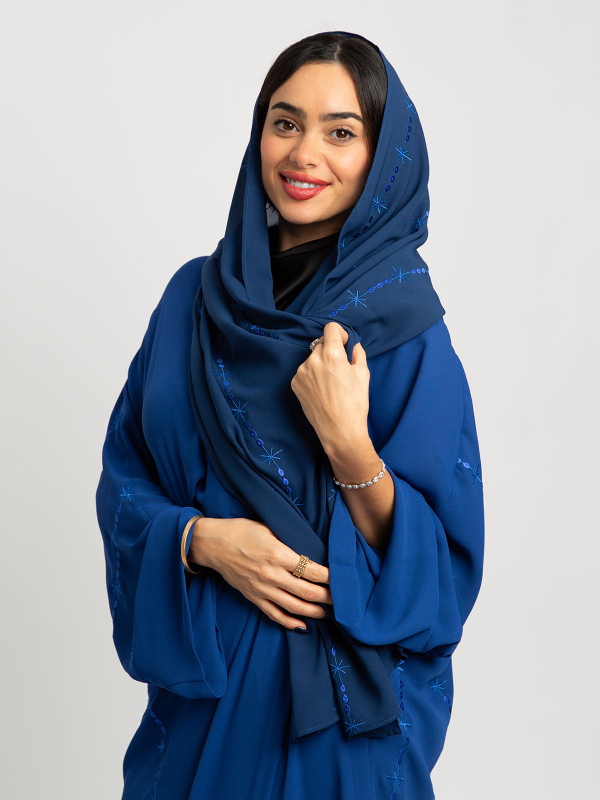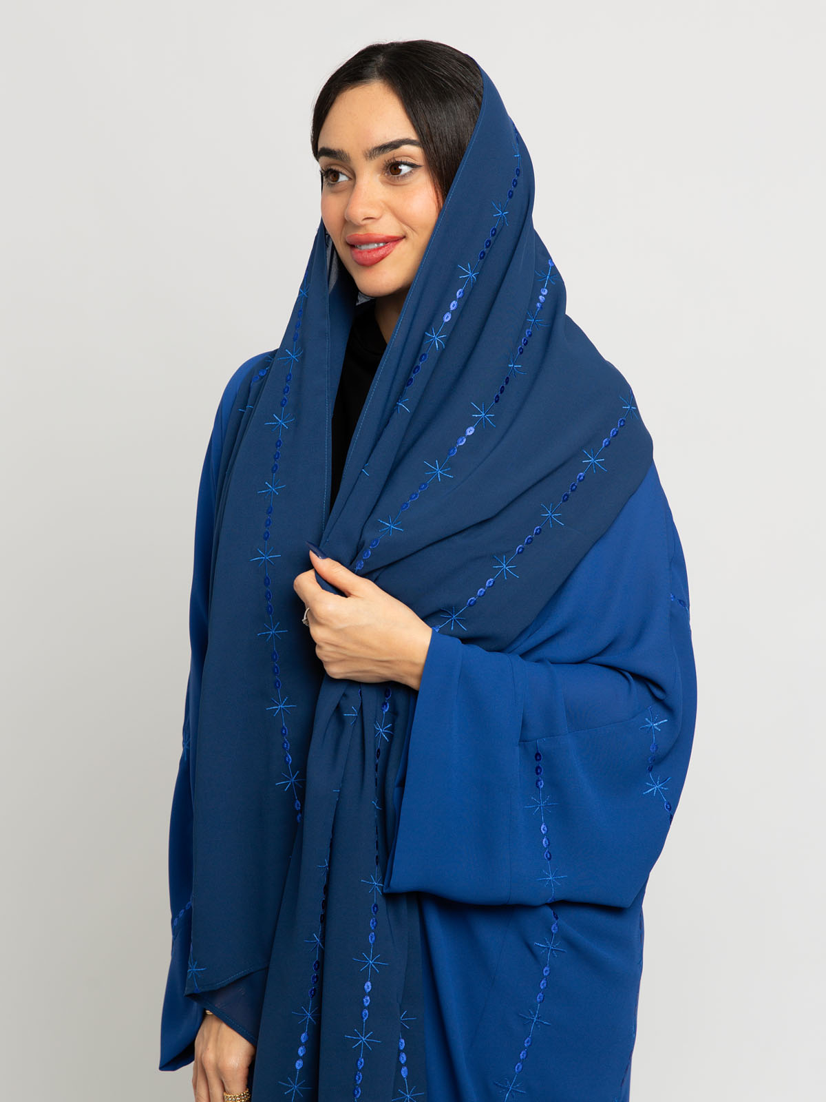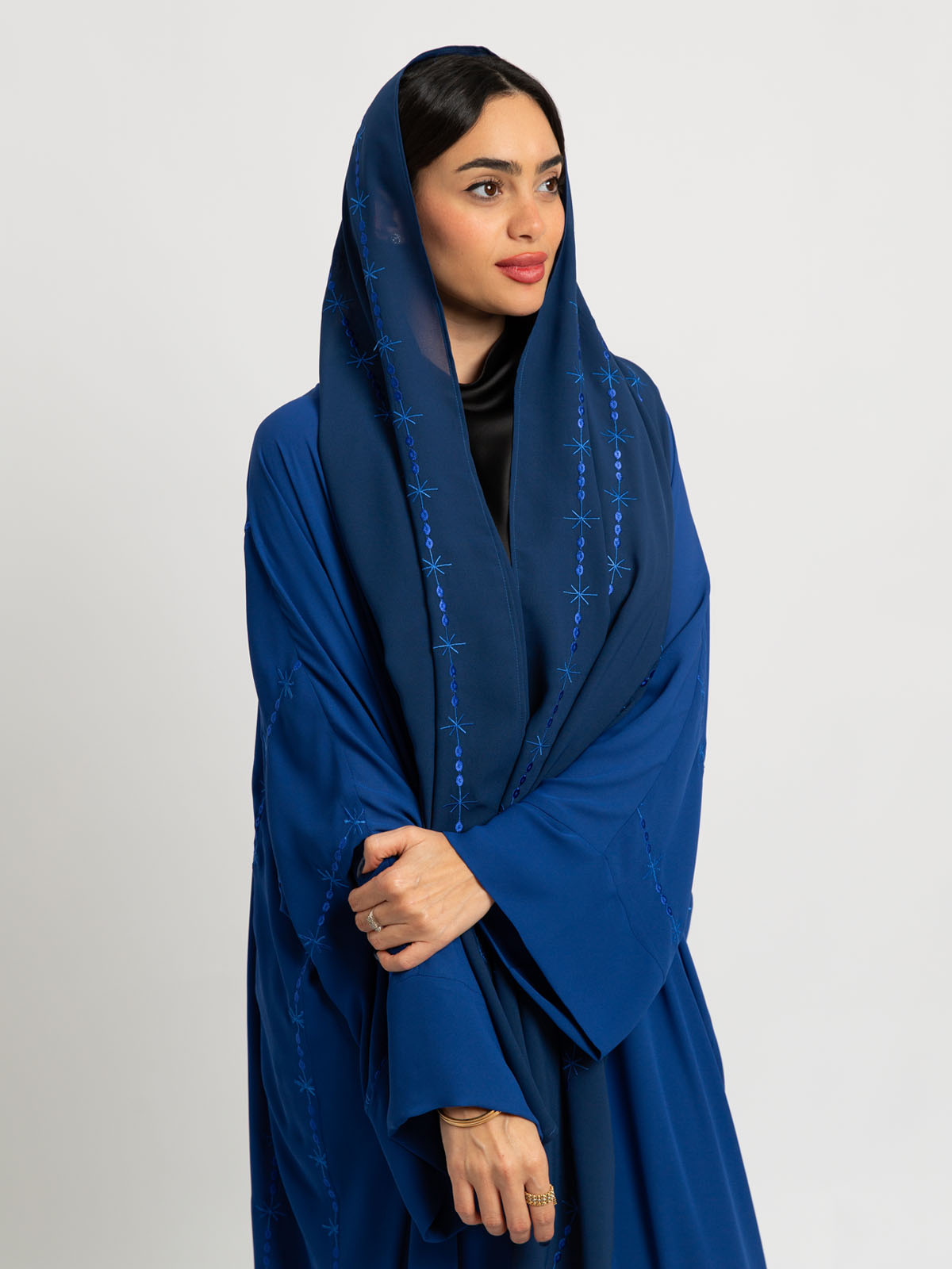 Indigo Blue Galaxy Threads A-Cut Abaya