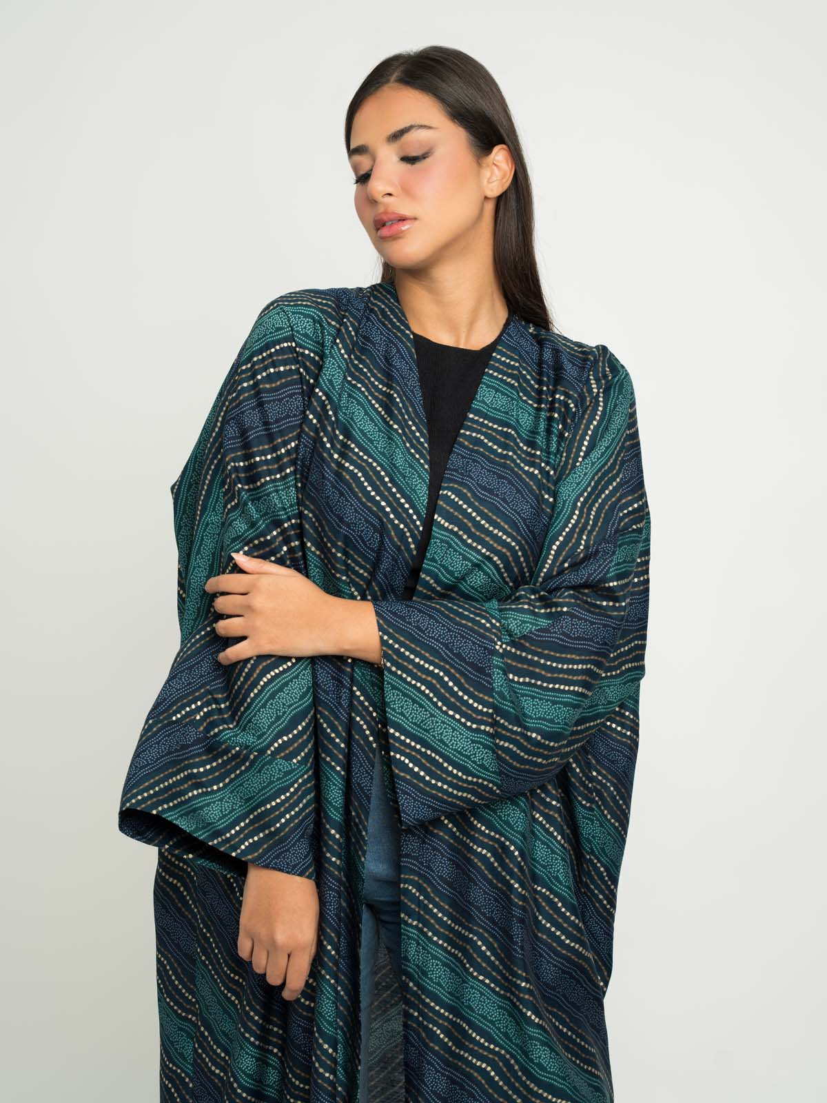 - Wide cut abaya, easy to style.