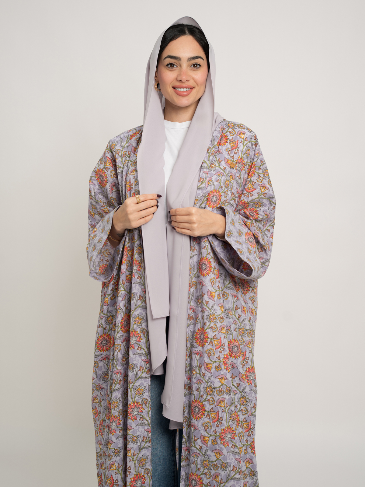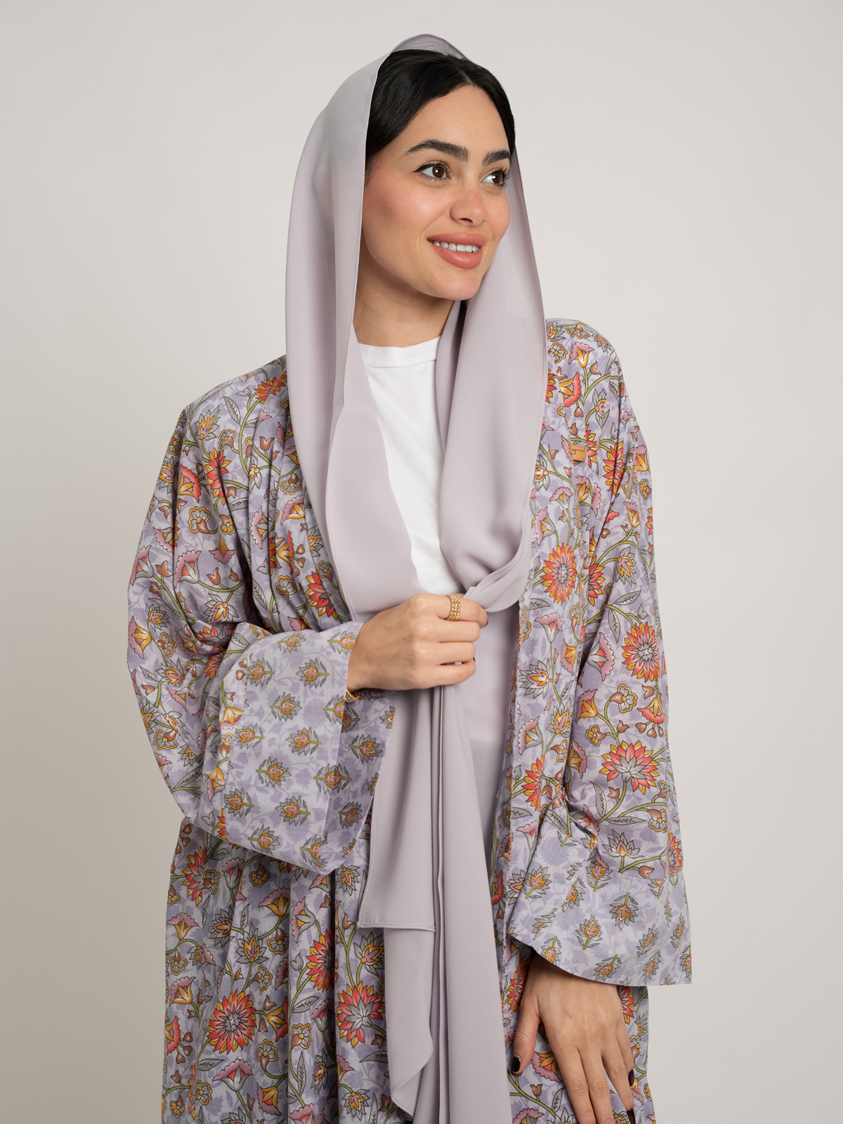 - Wide-cut abaya, easy to style.