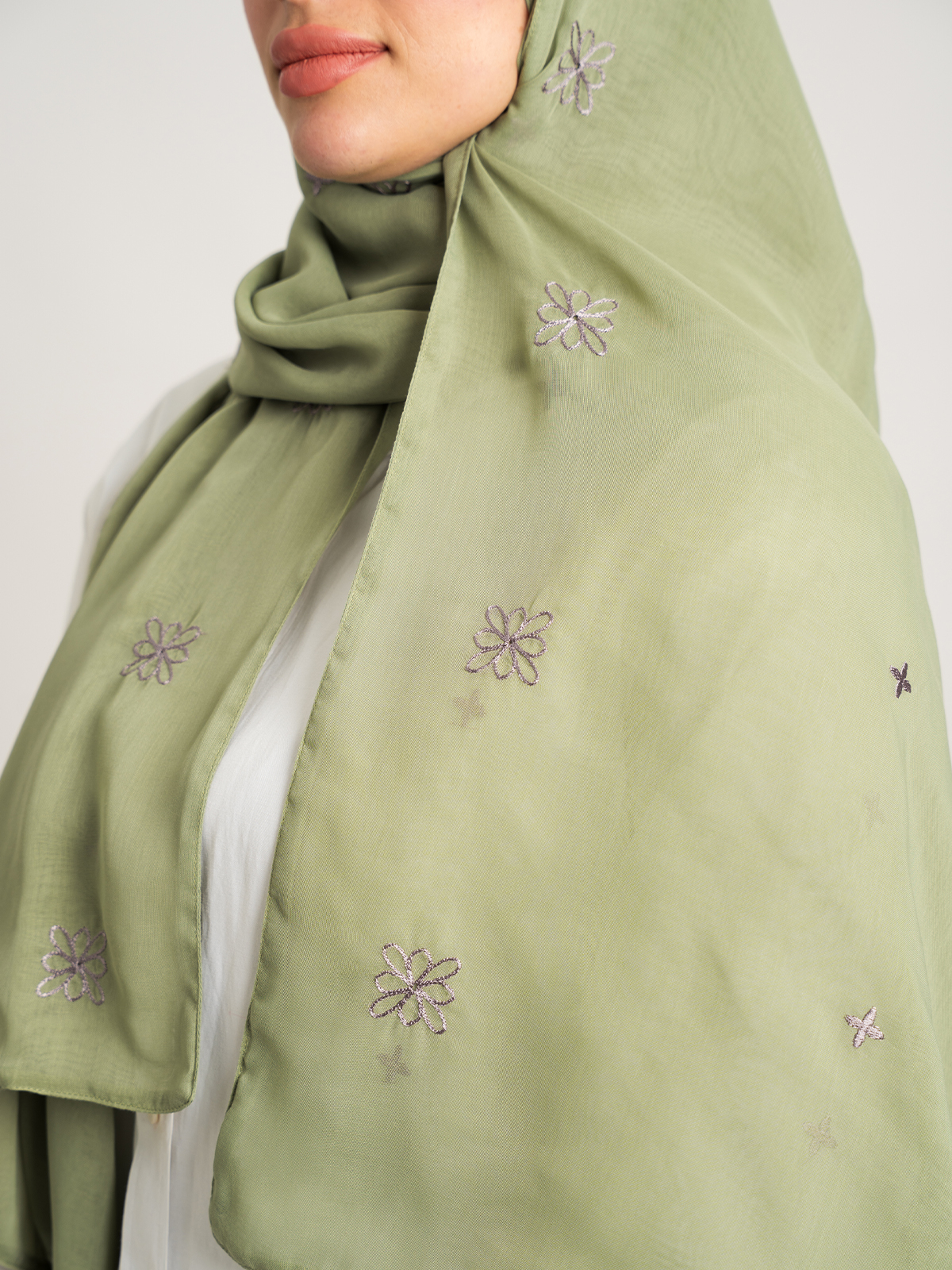 Hijab color: Light Pistachio with Bow Flower Embroidery.