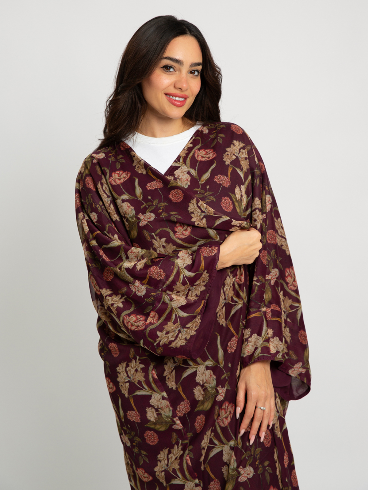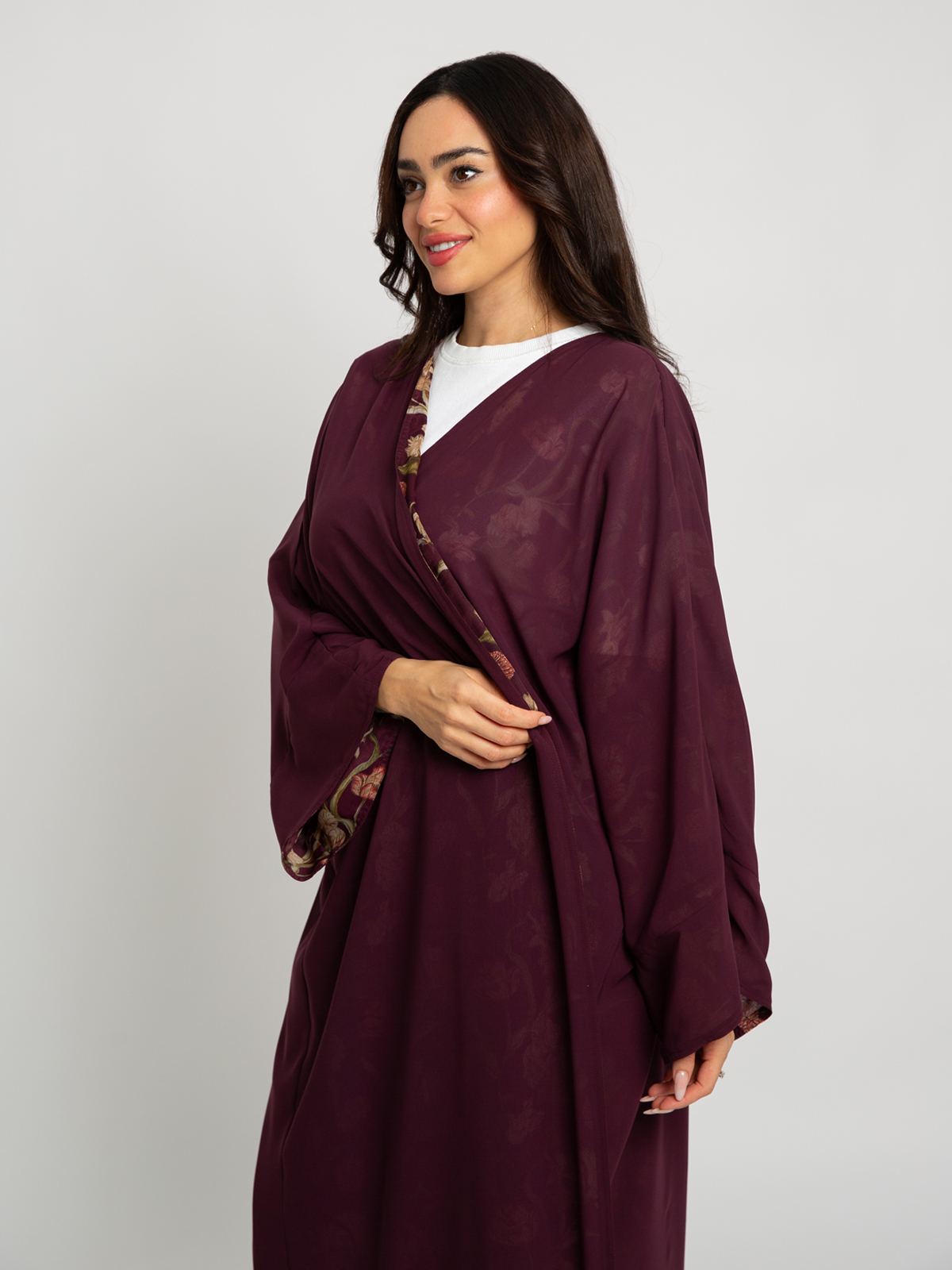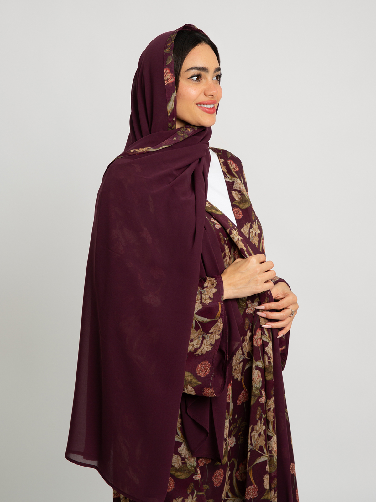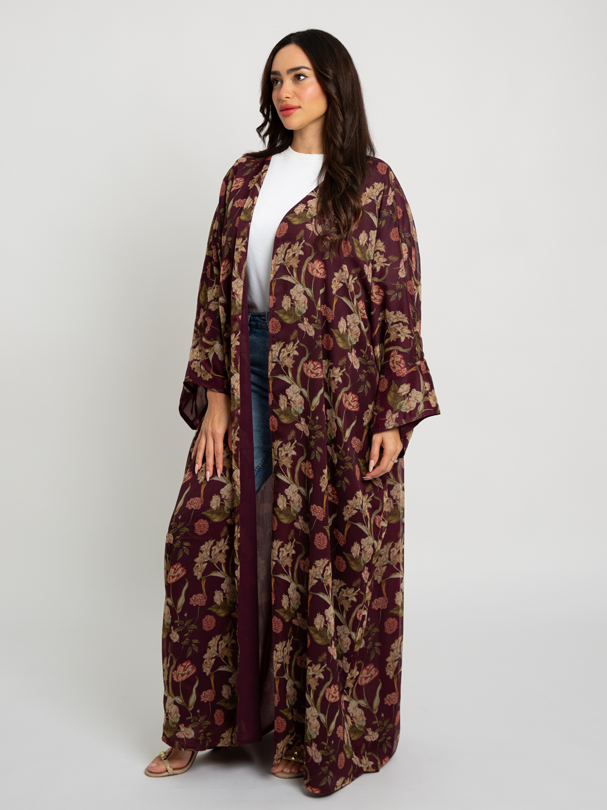 Double Face Wide-fit Long Open Abaya in Printed Chiffon Fabric