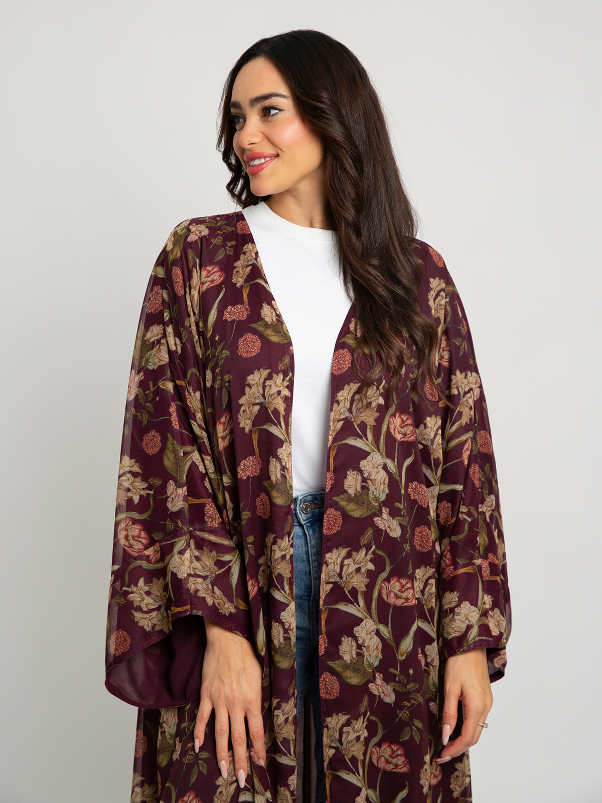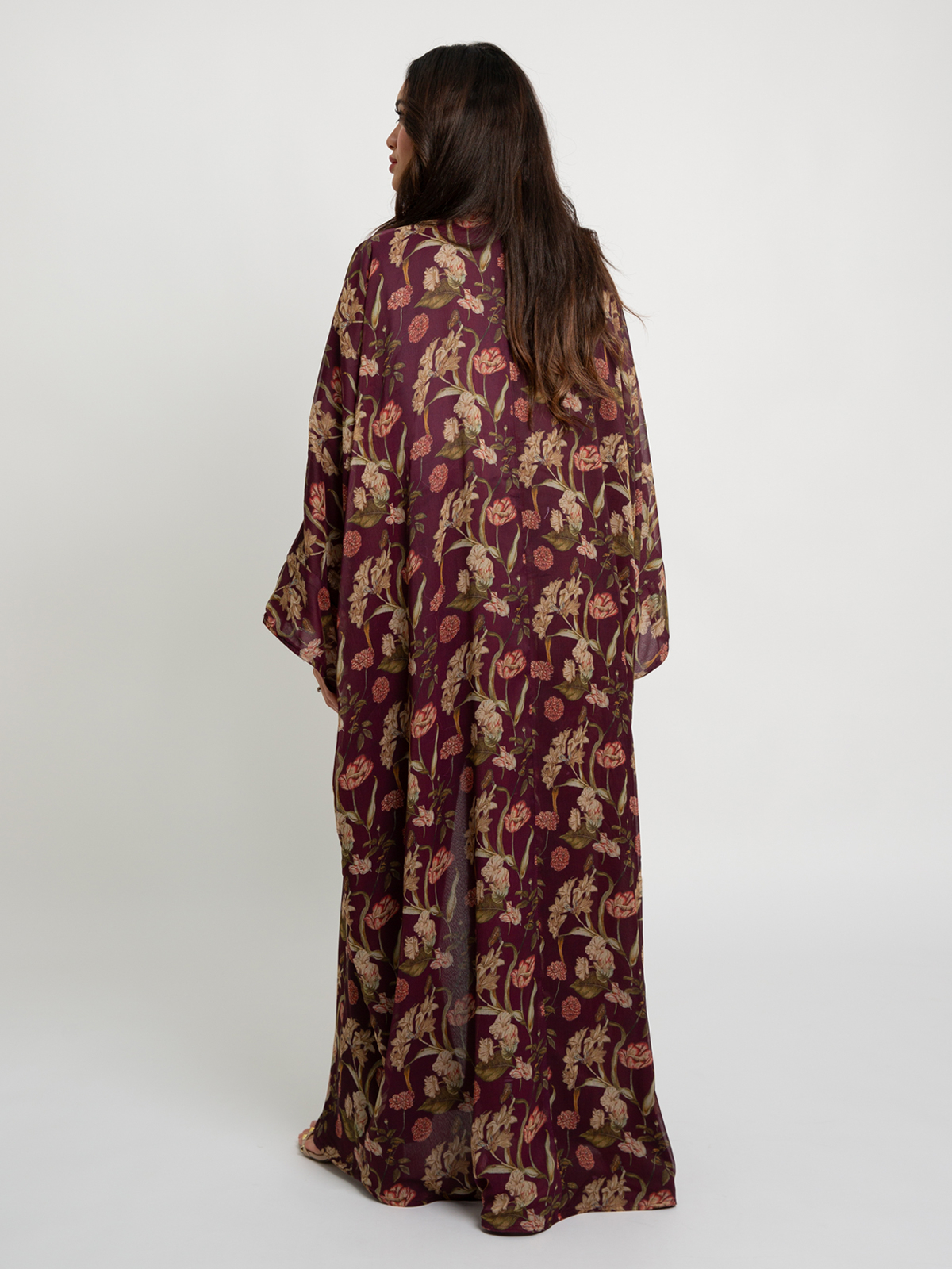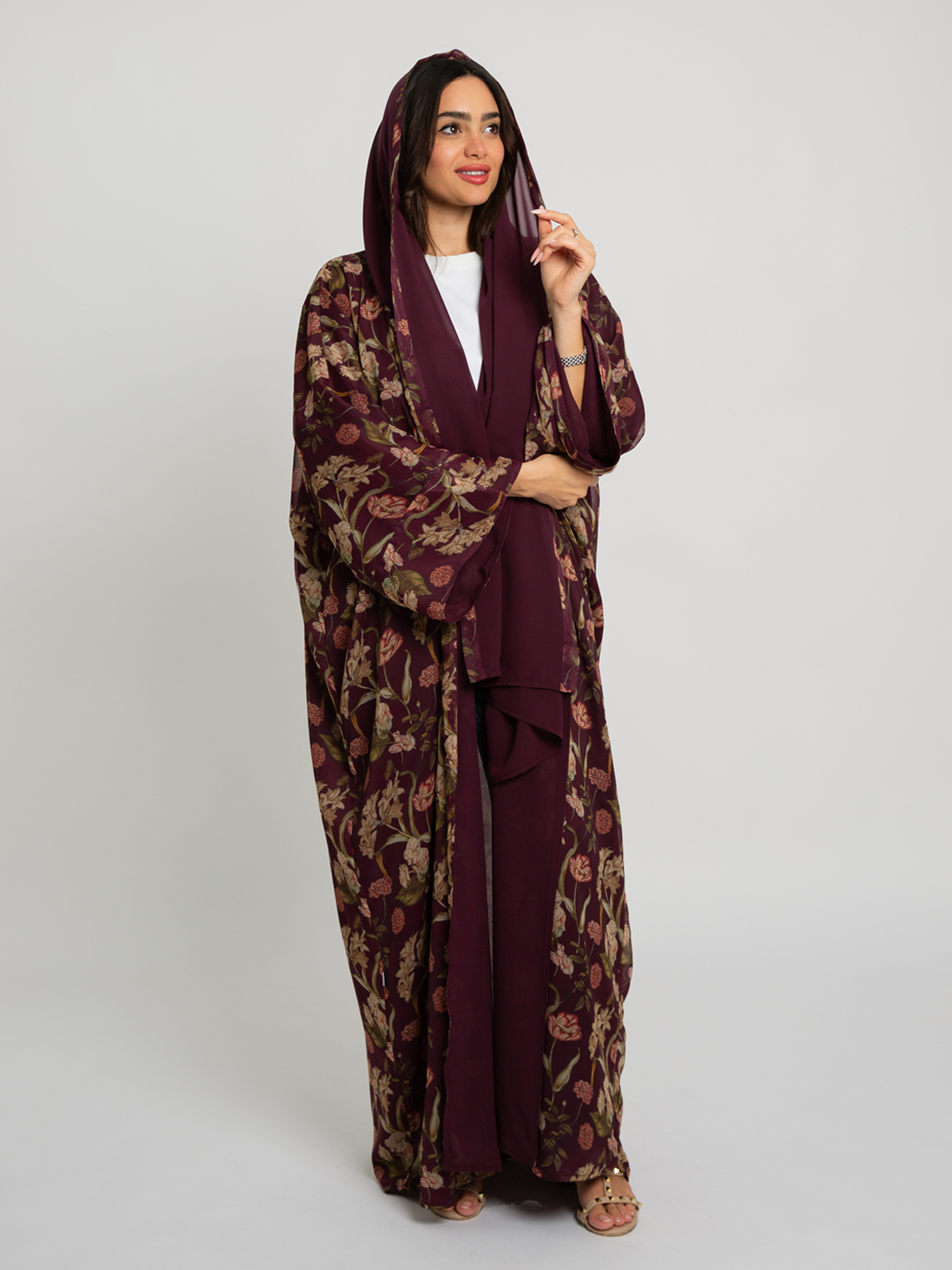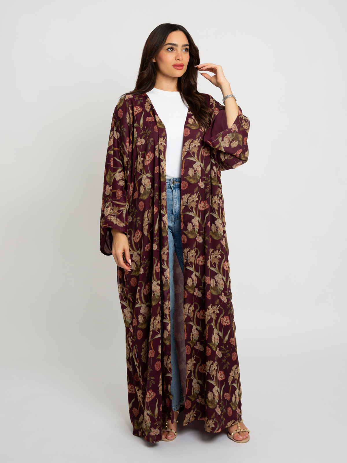 Double Face Wide-fit Long Open Abaya in Printed Chiffon Fabric