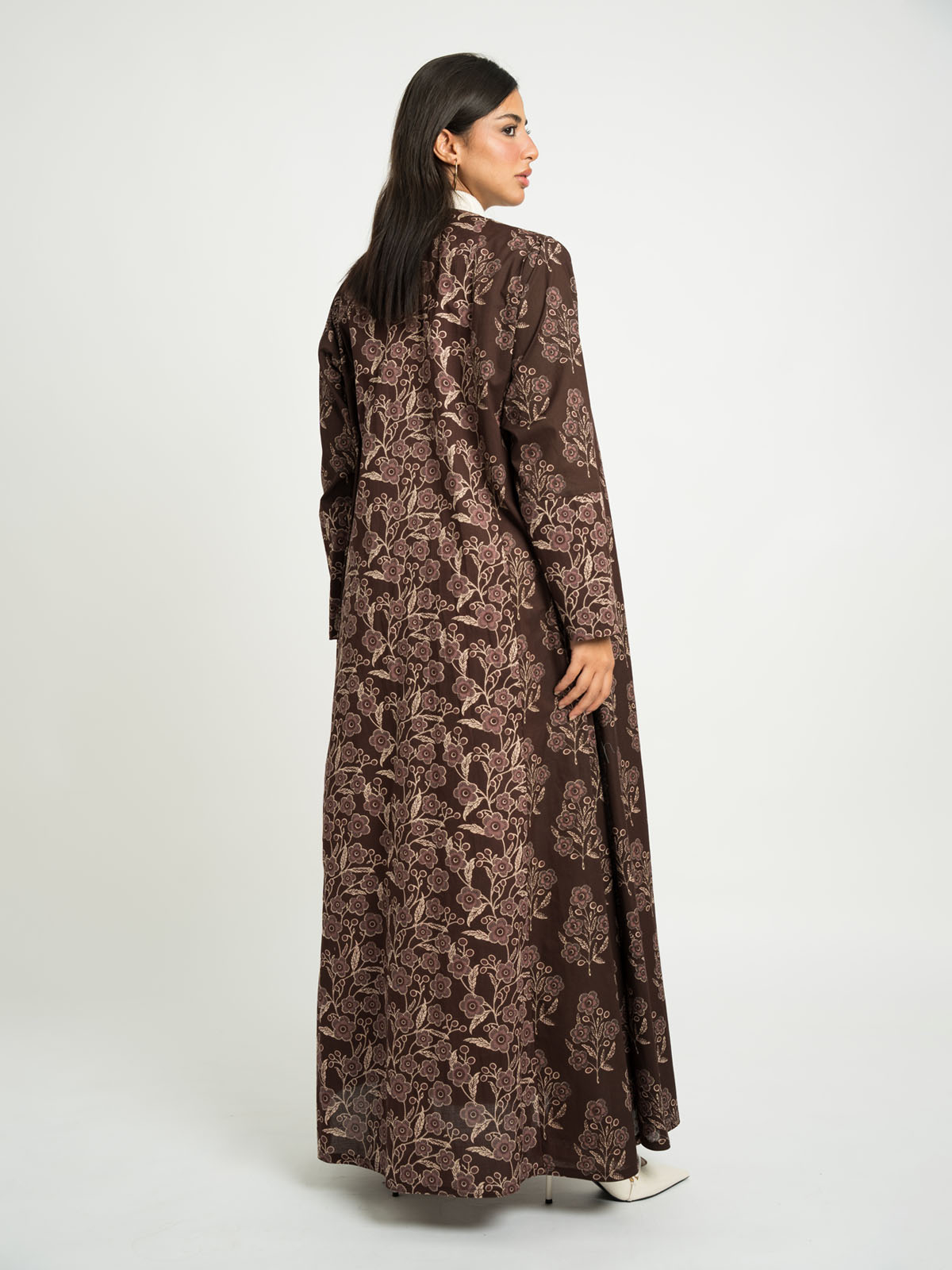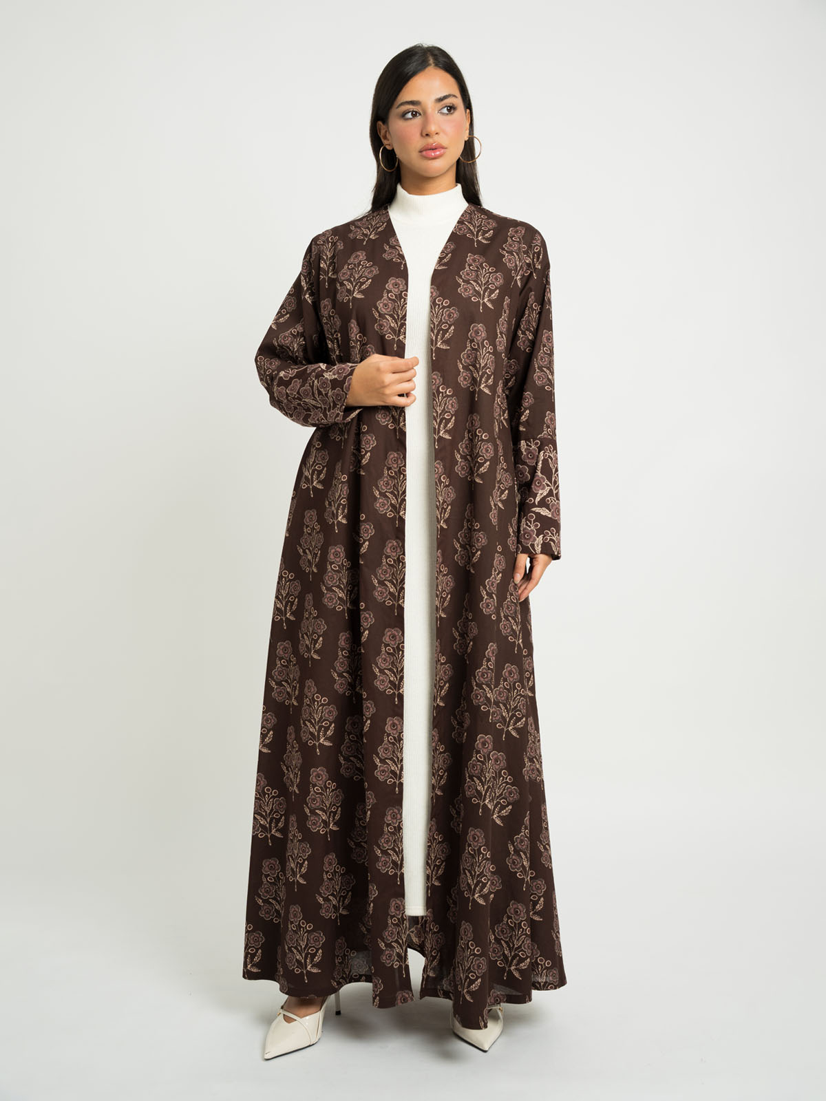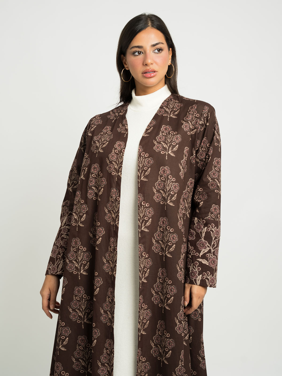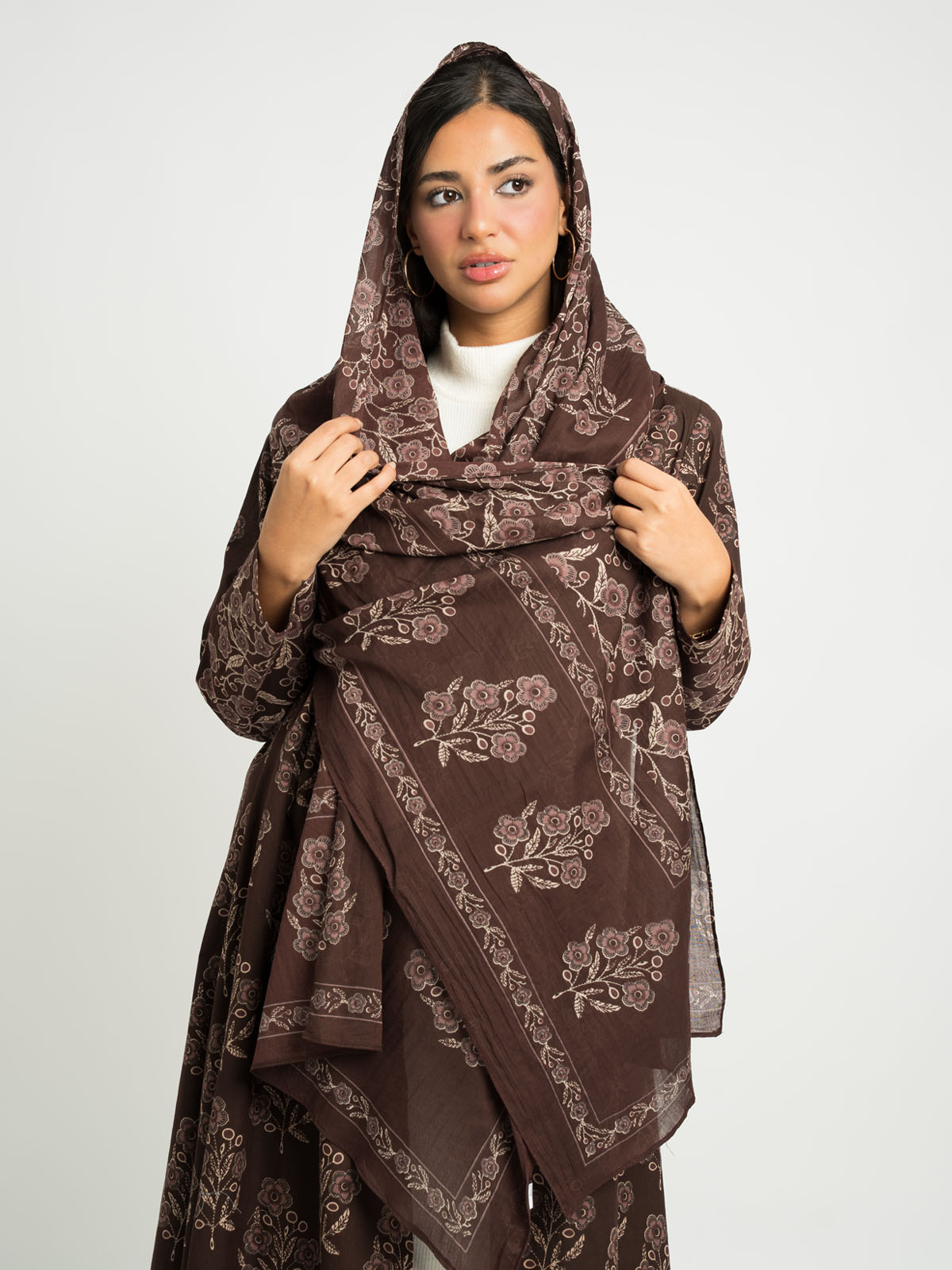 A breezy, relaxed-fit A-cut half cloche abaya made of 100% natural cotton, designed with comfort and attention to detail in mind.