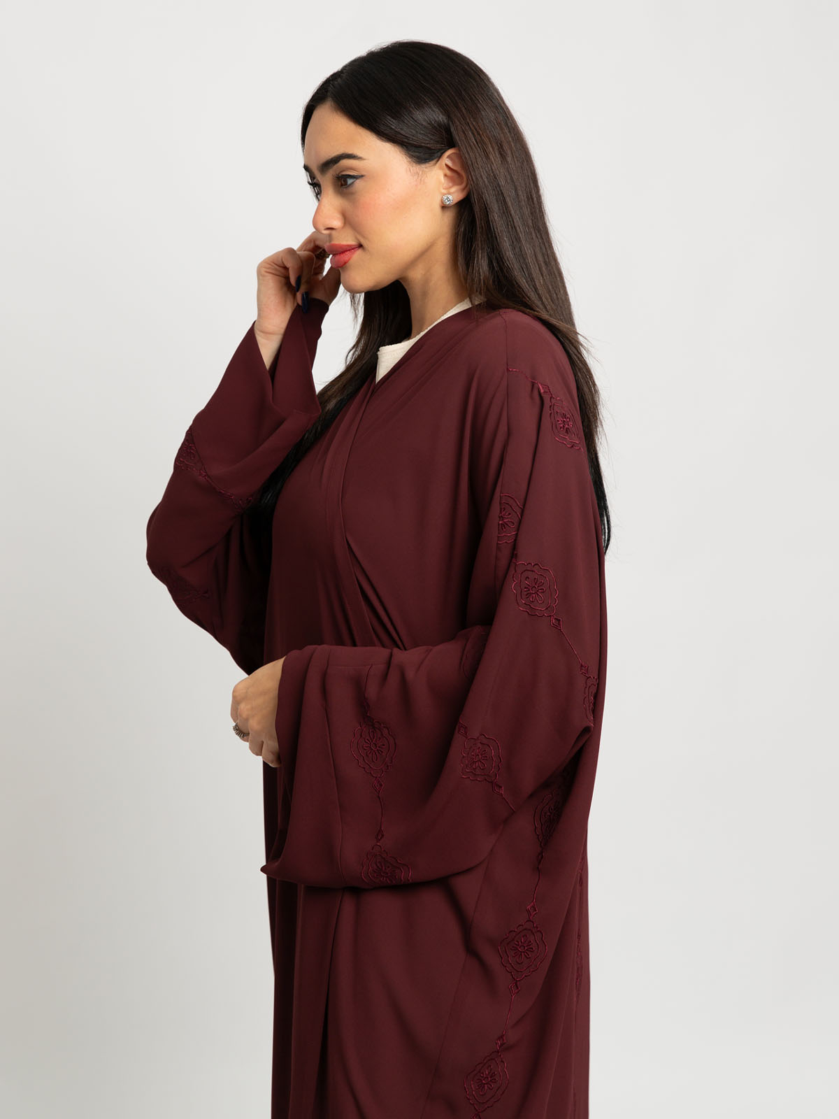 Maroon Daisy Chains Wide-fit Abaya