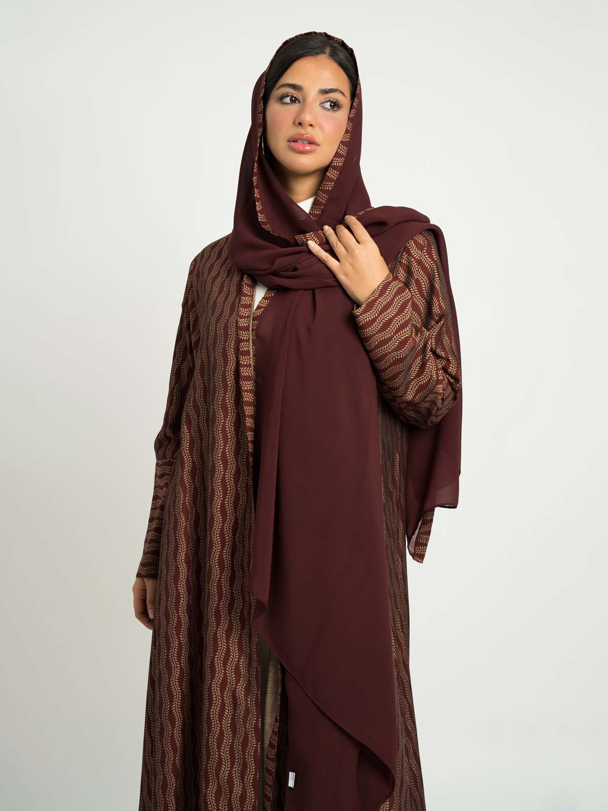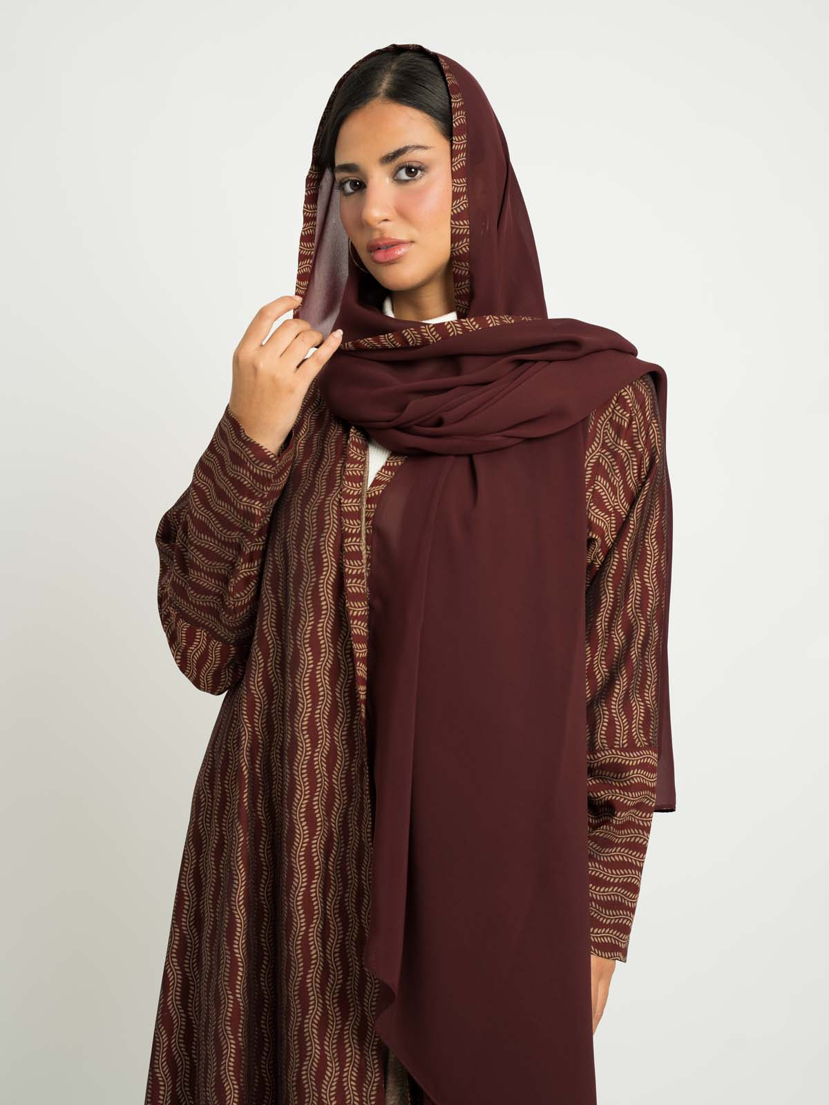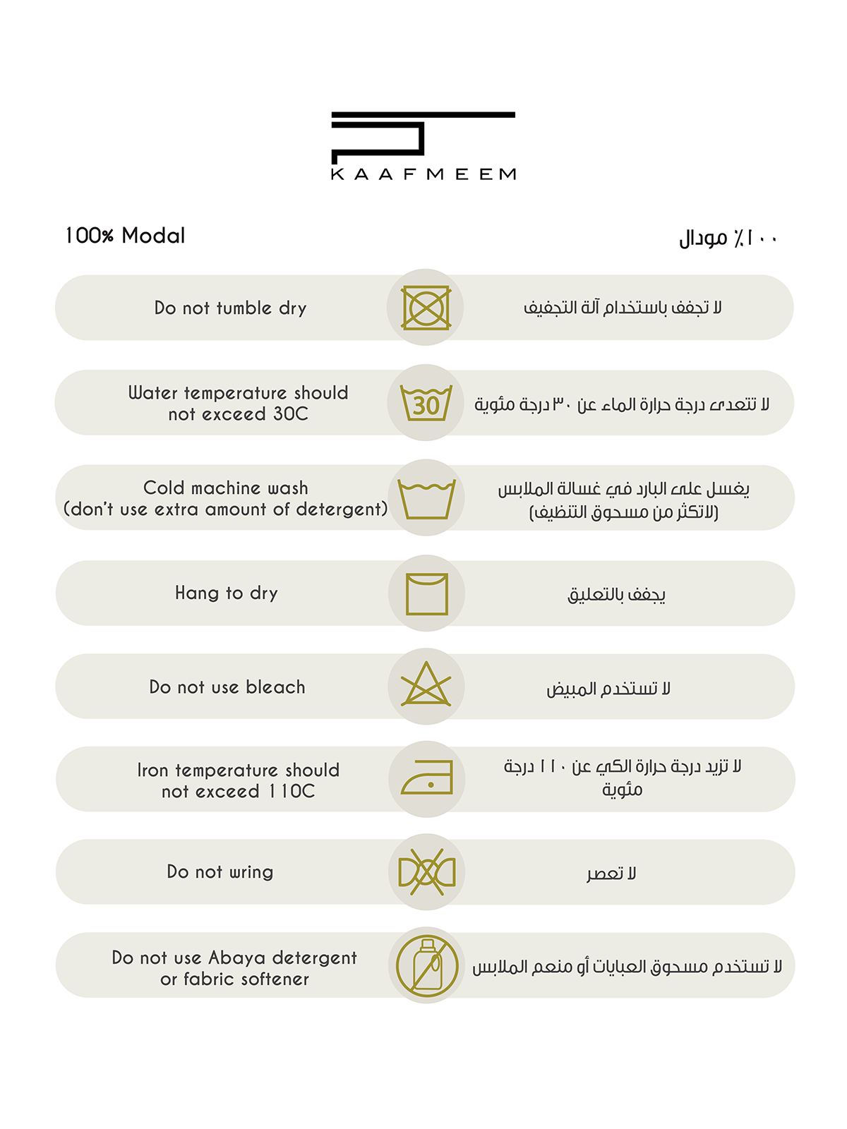 A breezy, relaxed-fit A-cut half cloche abaya made of 100% modal, designed with comfort and attention to detail in mind.